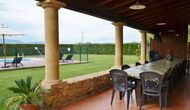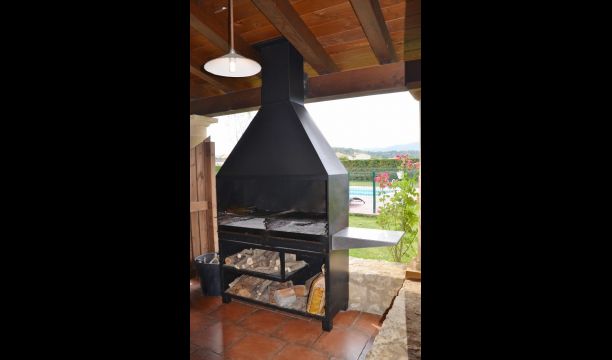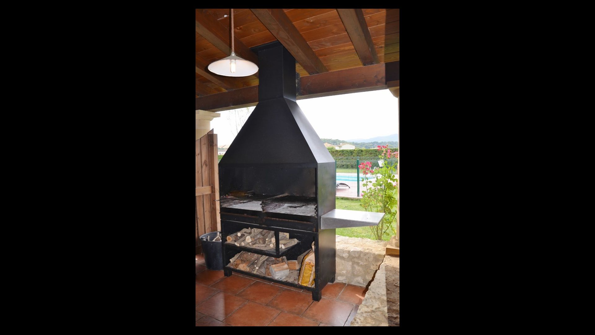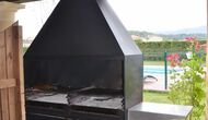 Den meget store overdækkede terrasse med barbecue vender på den ene side mod swimmingpoolen og har på den anden side direkte adgang til køkkenet, hvilket gør det muligt både at lave mad, svømme og slappe af og samtidig være sammen. Børnene vil elske swimmingpoolen, som er på 11x 8 meter og fra 120 – 165 cm. dyb og sikret med et hegn. Billederne af poolen er fra inden den blev udvidet - poolen er nu mere end dobbelt så stor.