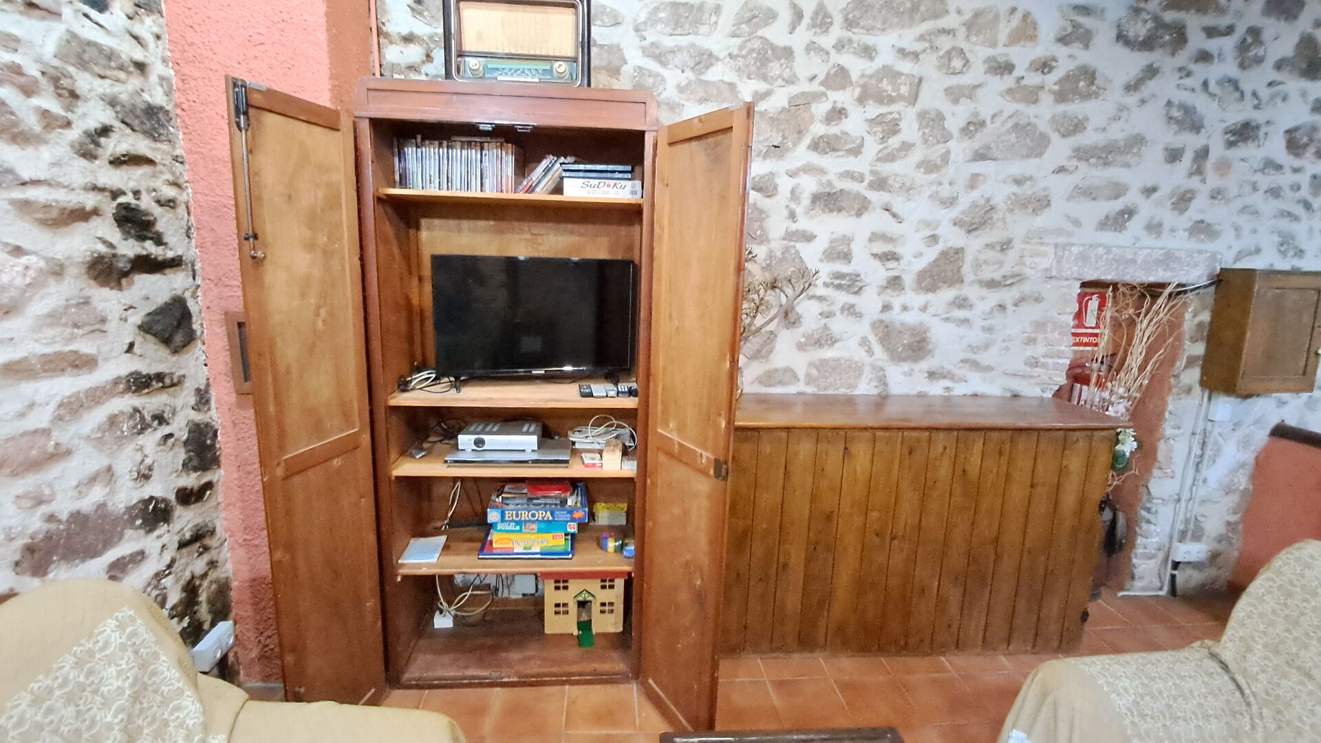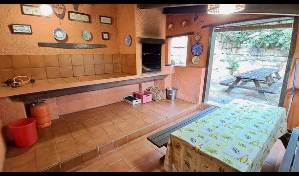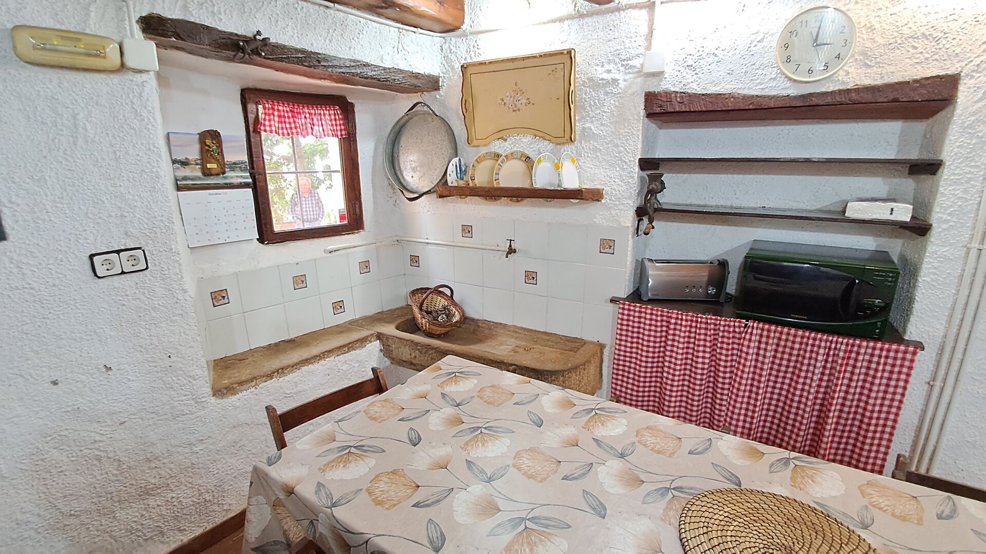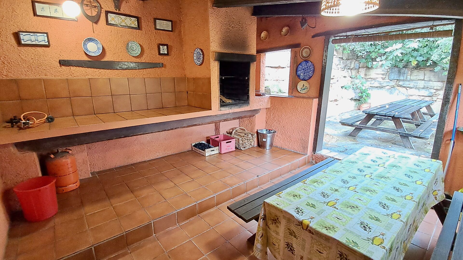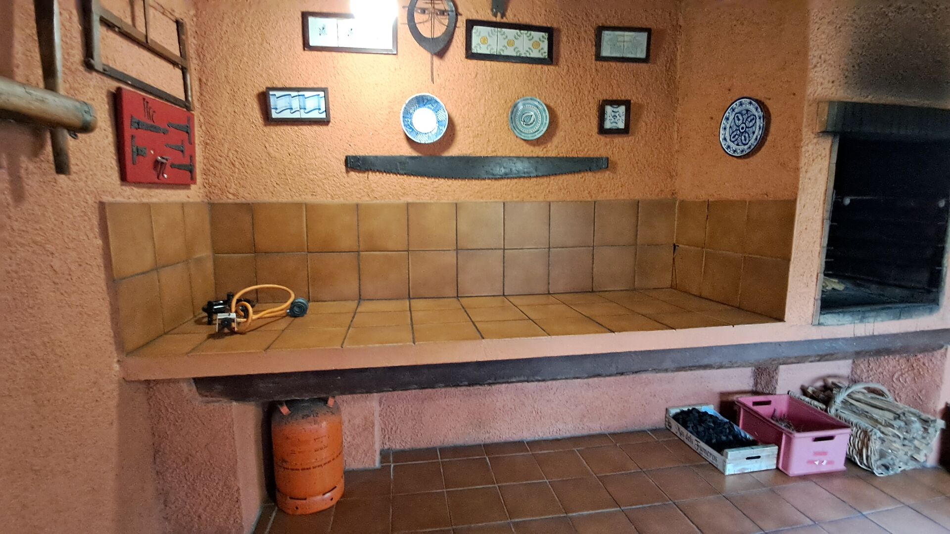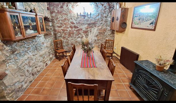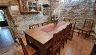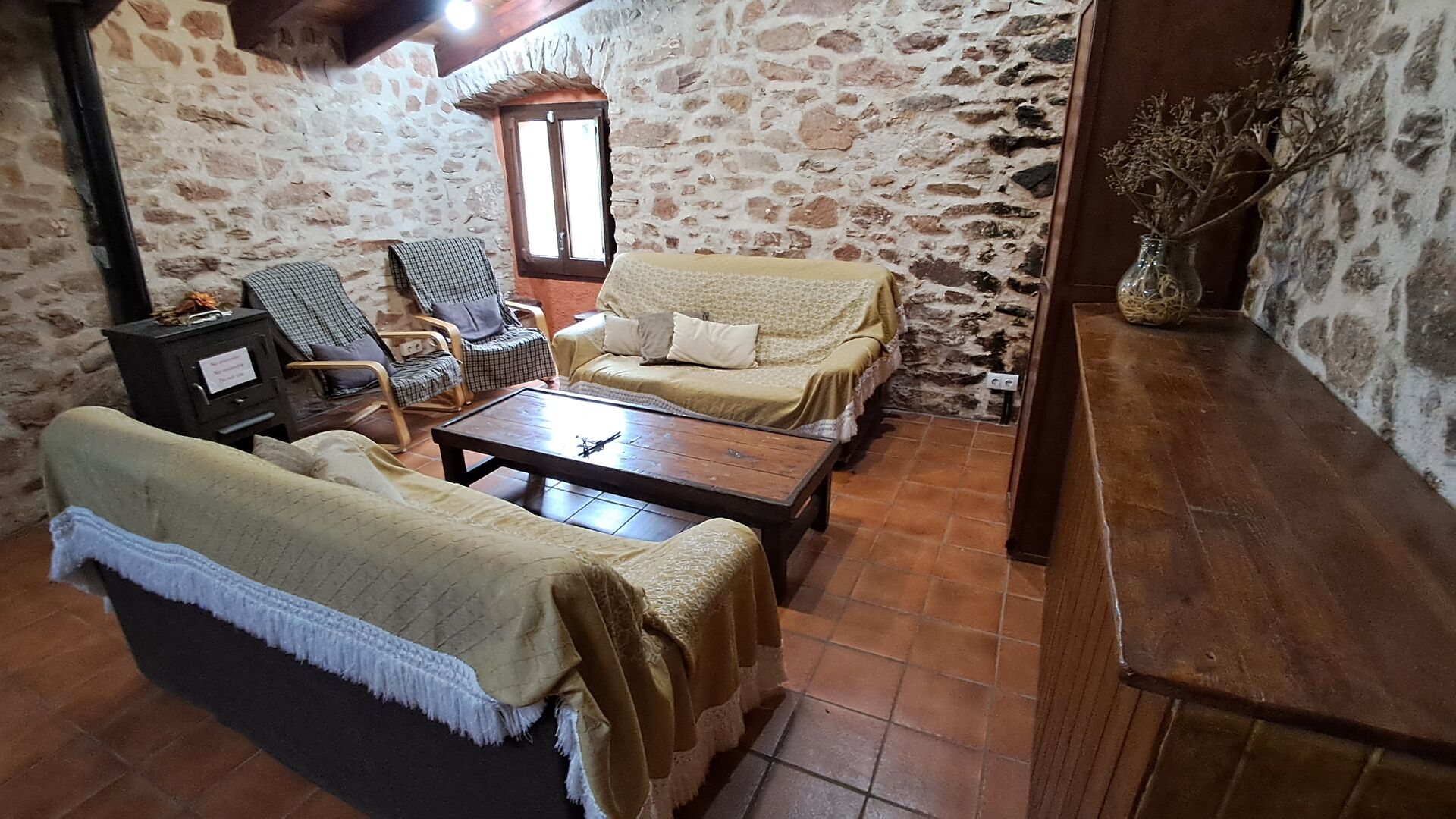 Nå man kommer ind i huset bliver man slået af den friskhed, der er så typisk for catalanske kalkstenshuse, der er konstrueret med henblik på at holde solen ude og holde en behagelig indendørs temperatur. Huset er bygget i flere plan, hvilket gør det yderligere charmerende. Nederst er der et opholdsområde med sofaer, TV og en pejs. Et par trin op fører til spiseområdet med spisebord og et fuldt udstyret køkken med opvaskemaskine, komfur, mikrobølgeovn, køleskab, fryser etc. Der er tillige en vaskemaskine. På dette niveau er der tillige et lille bibliotek og et badeværelse med bruser.