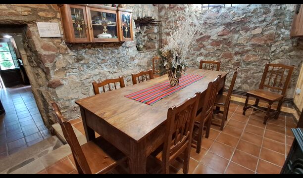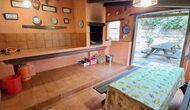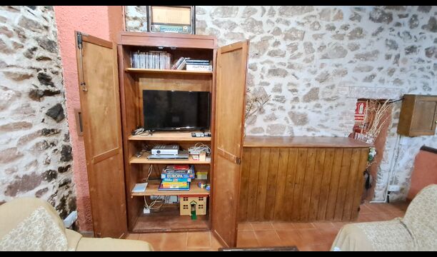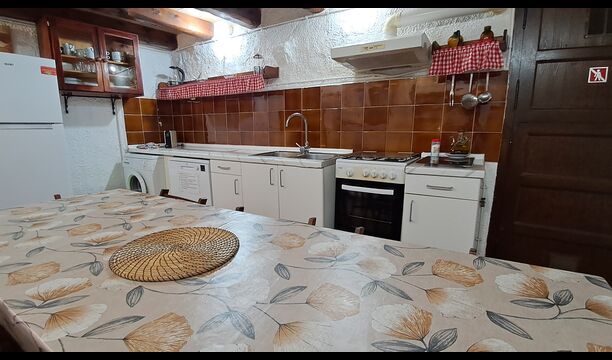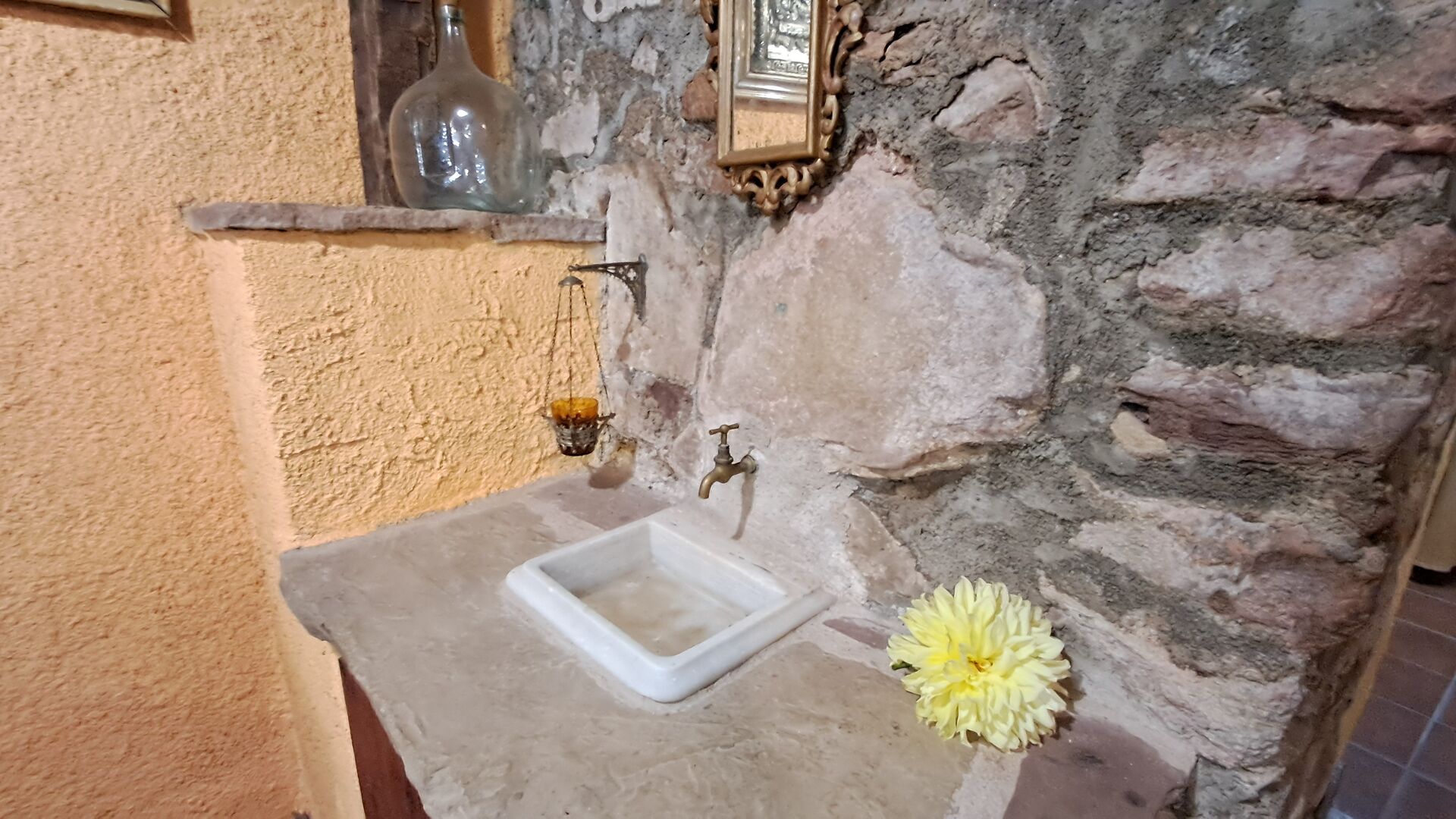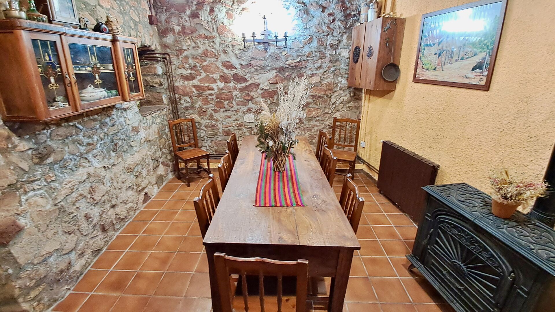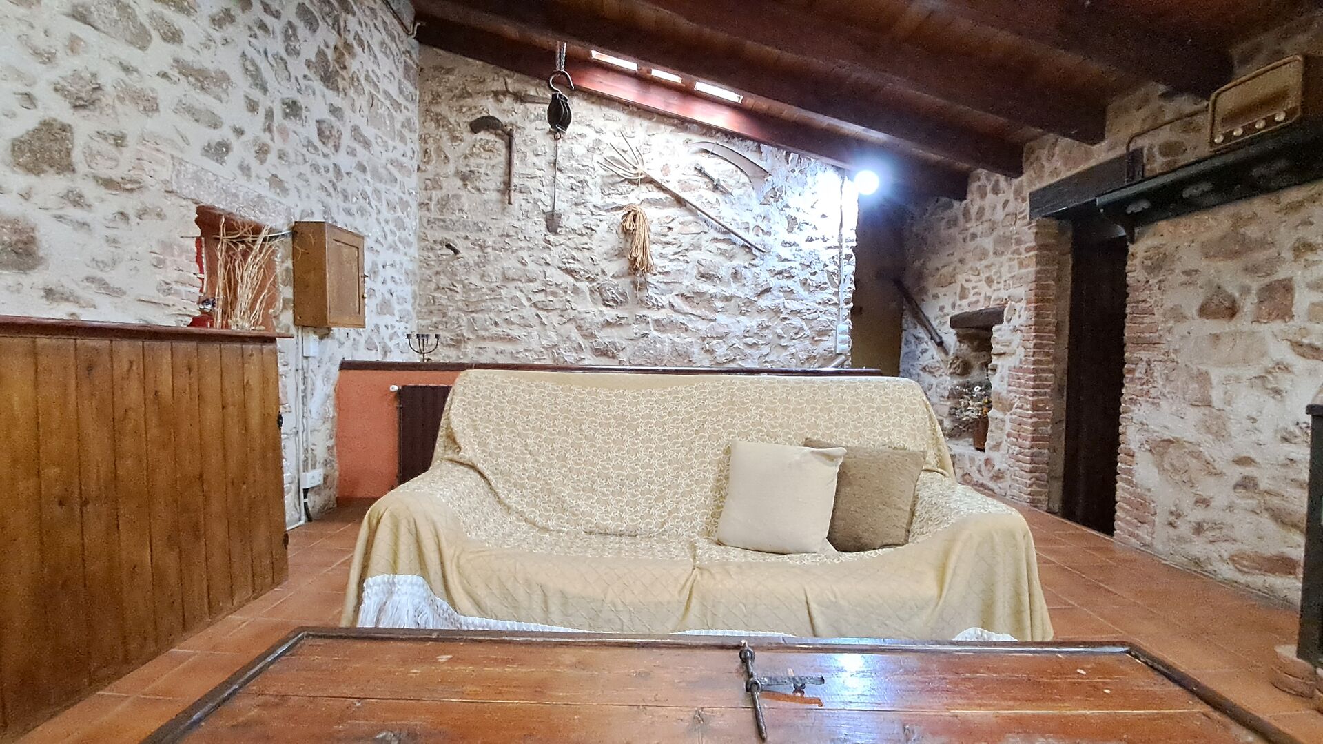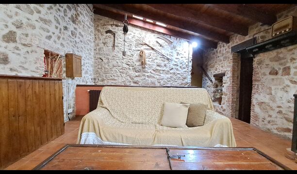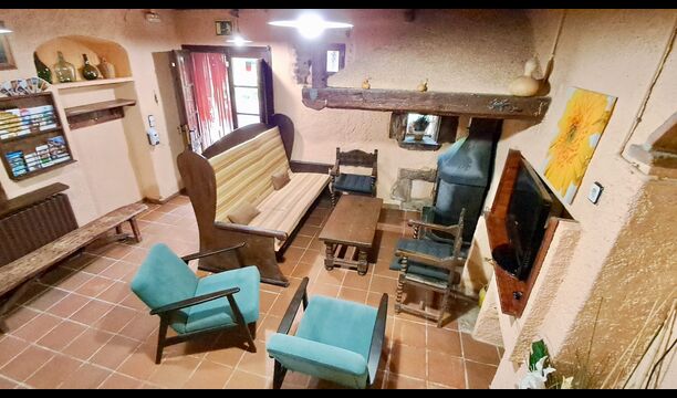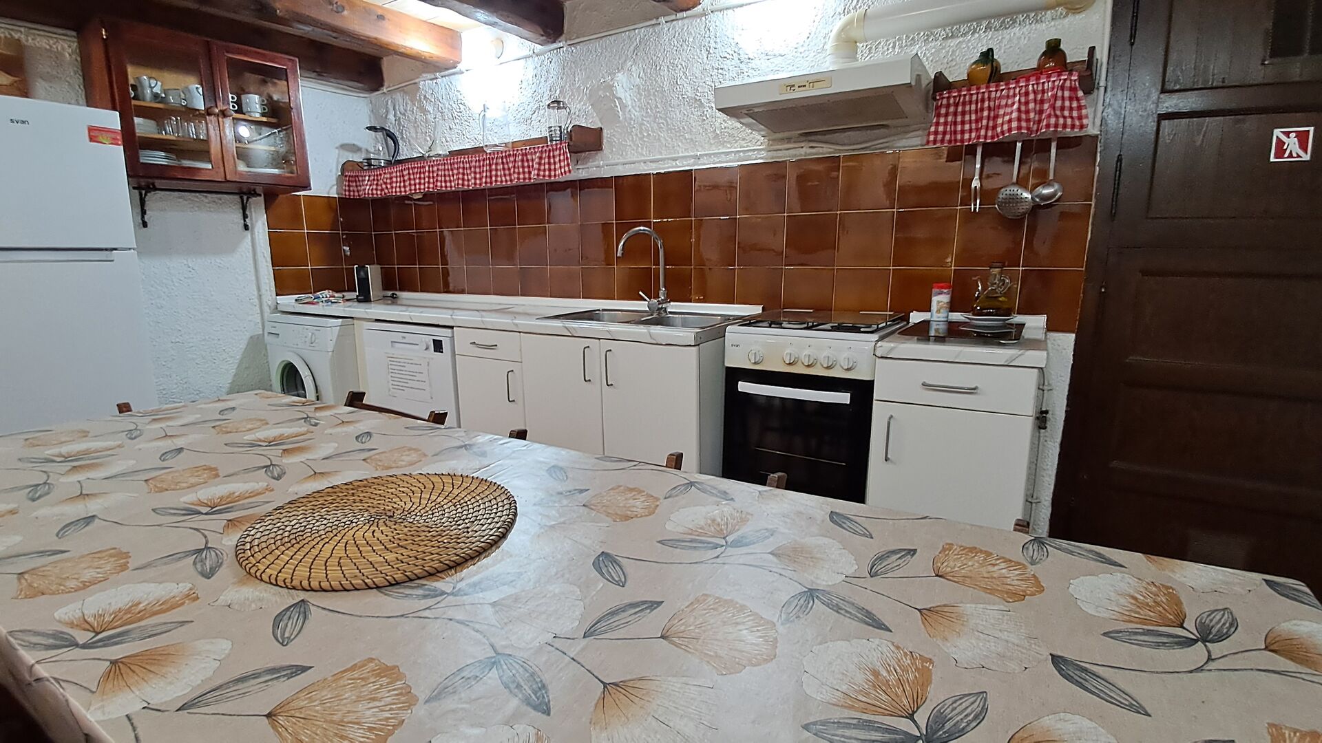 Nå man kommer ind i huset bliver man slået af den friskhed, der er så typisk for catalanske kalkstenshuse, der er konstrueret med henblik på at holde solen ude og holde en behagelig indendørs temperatur. Huset er bygget i flere plan, hvilket gør det yderligere charmerende. Nederst er der et opholdsområde med sofaer, TV og en pejs. Et par trin op fører til spiseområdet med spisebord og et fuldt udstyret køkken med opvaskemaskine, komfur, mikrobølgeovn, køleskab, fryser etc. Der er tillige en vaskemaskine. På dette niveau er der tillige et lille bibliotek og et badeværelse med bruser.
