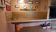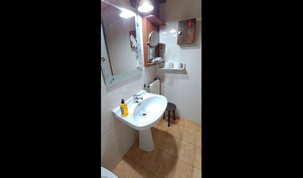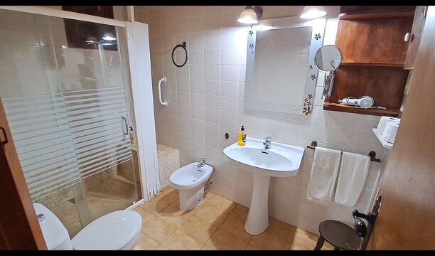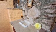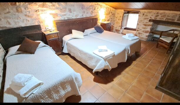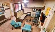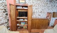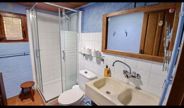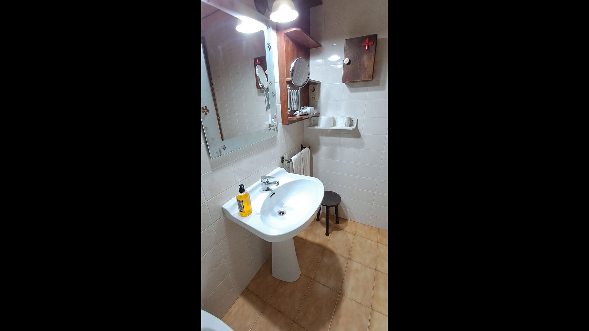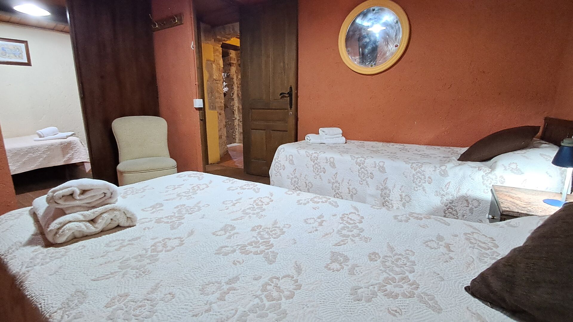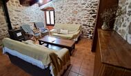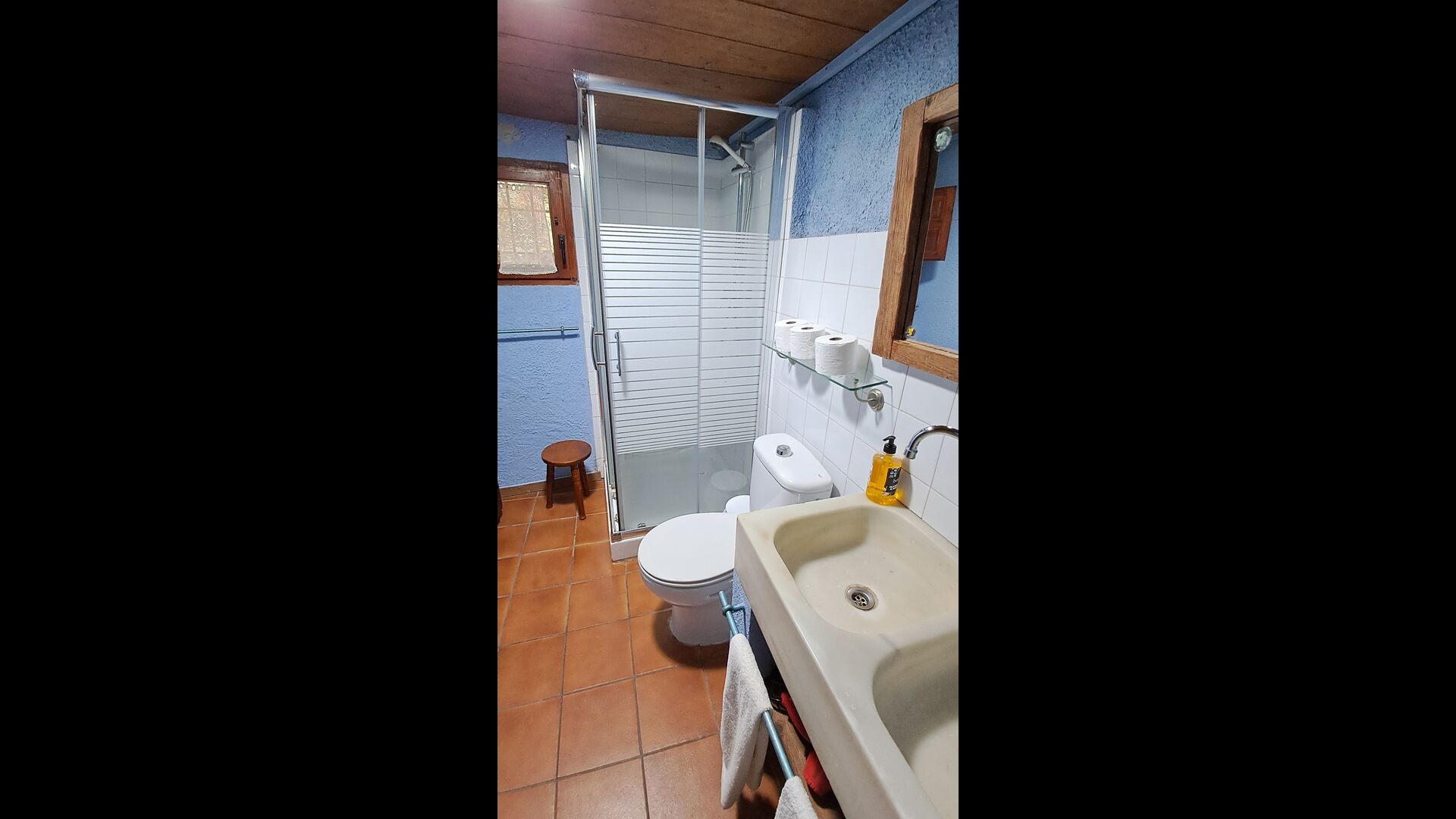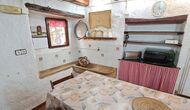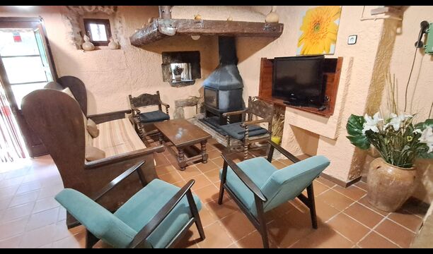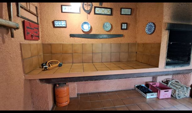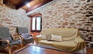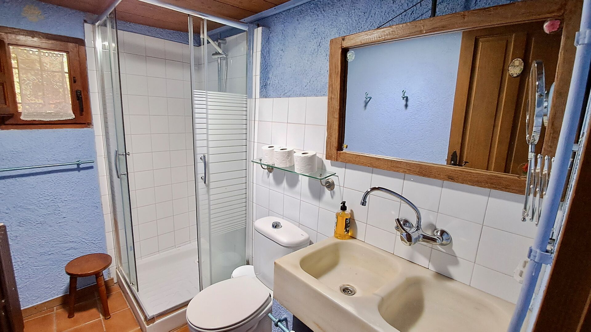 Nå man kommer ind i huset bliver man slået af den friskhed, der er så typisk for catalanske kalkstenshuse, der er konstrueret med henblik på at holde solen ude og holde en behagelig indendørs temperatur. Huset er bygget i flere plan, hvilket gør det yderligere charmerende. Nederst er der et opholdsområde med sofaer, TV og en pejs. Et par trin op fører til spiseområdet med spisebord og et fuldt udstyret køkken med opvaskemaskine, komfur, mikrobølgeovn, køleskab, fryser etc. Der er tillige en vaskemaskine. På dette niveau er der tillige et lille bibliotek og et badeværelse med bruser.