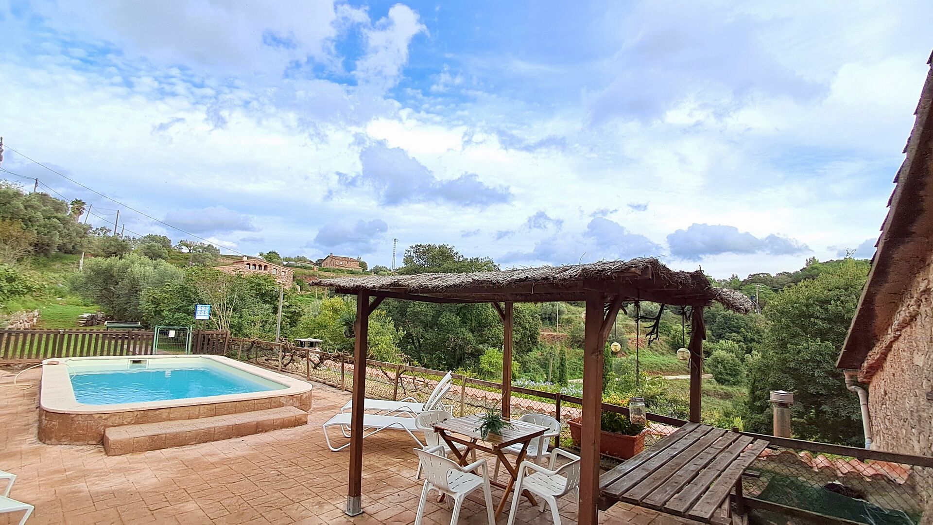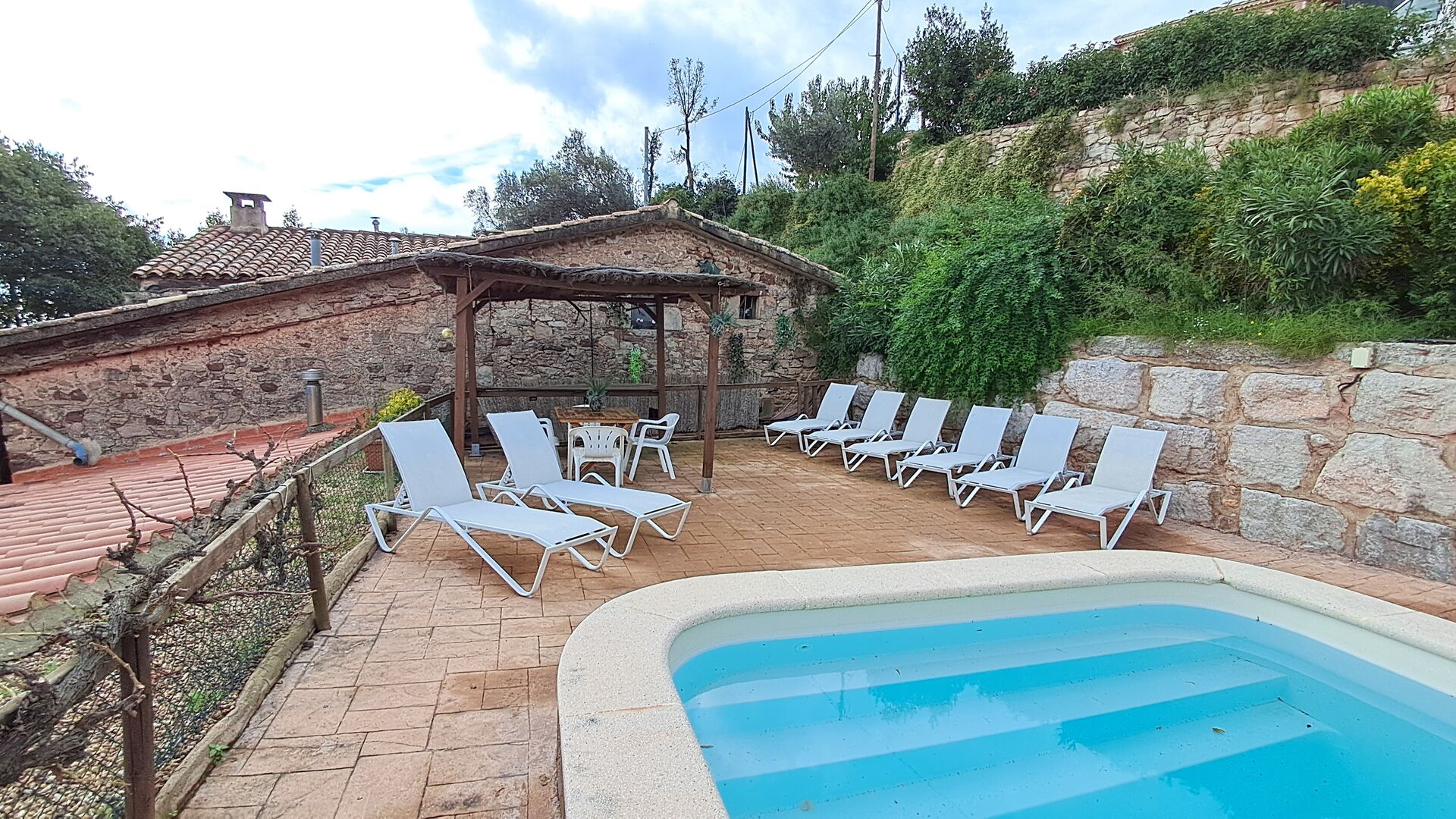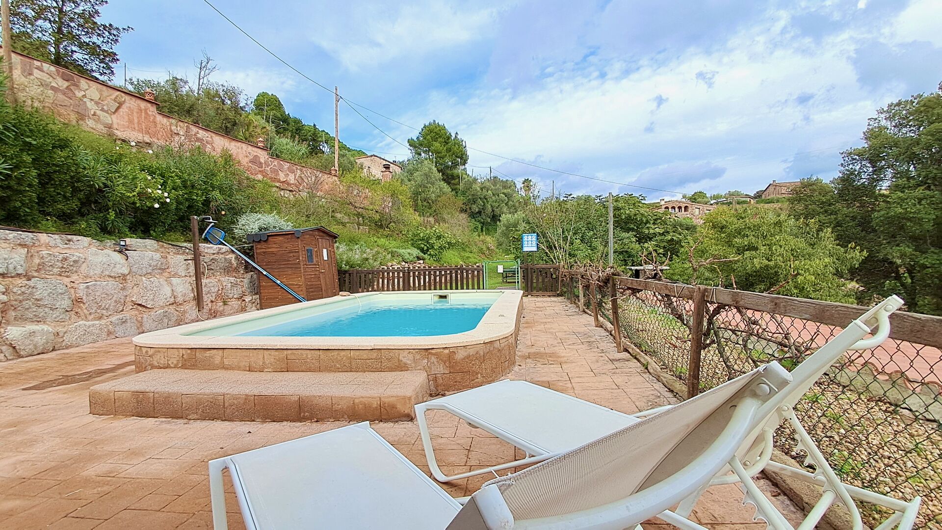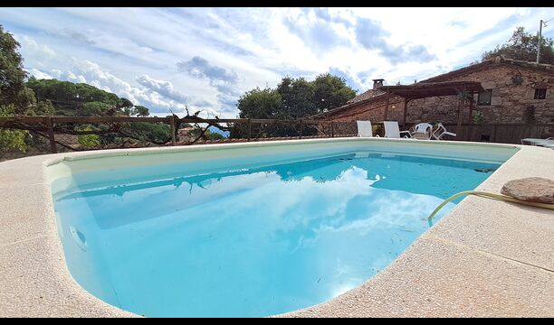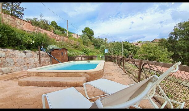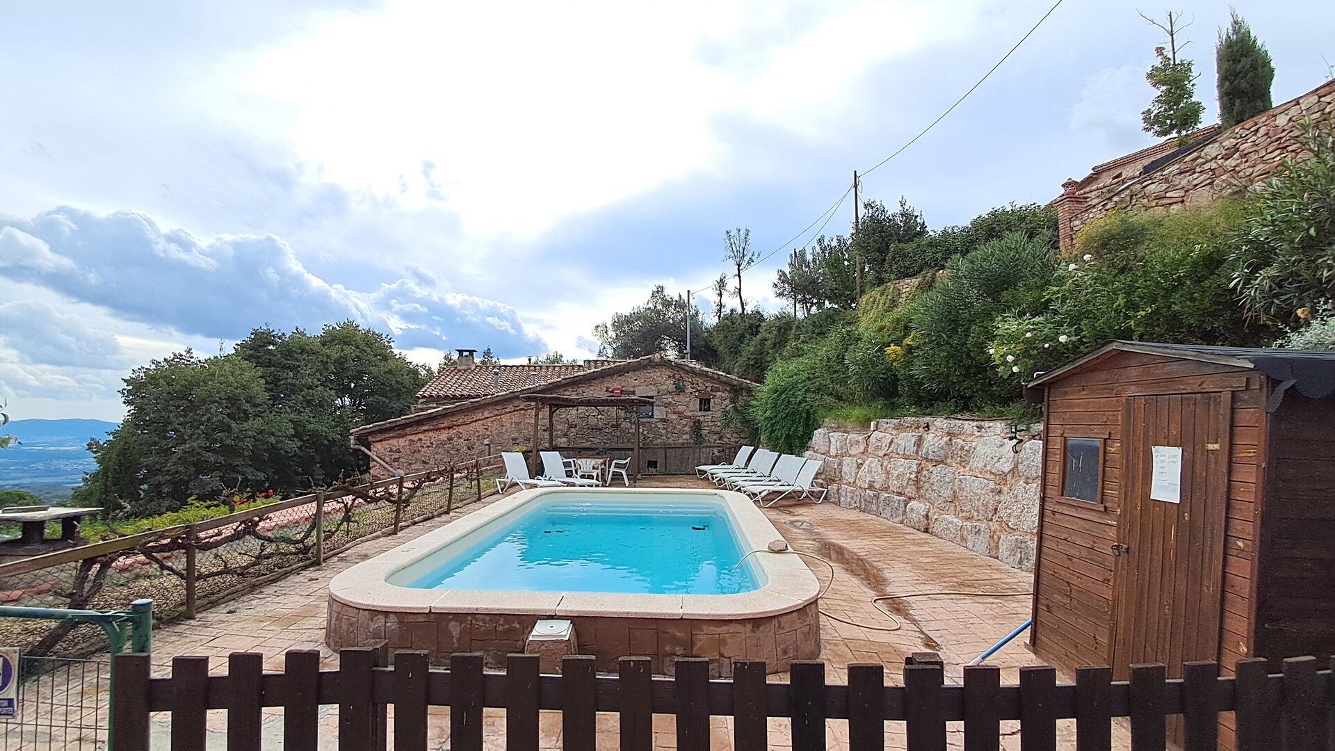 Et niveau højere er der en swimmingpool på 8 x 4 m. med trappetrin og som er beskyttet med en låge. Den ligger ideelt så man kan nyde udsigten over landskabet eller bare slappe af i liggestolene. Poolområdet er omgivet af typisk catalansk vegetation, repræsenteret af oliven- og figentræer, vinranker og man kan også finde jordbær, hvis der er sæson.