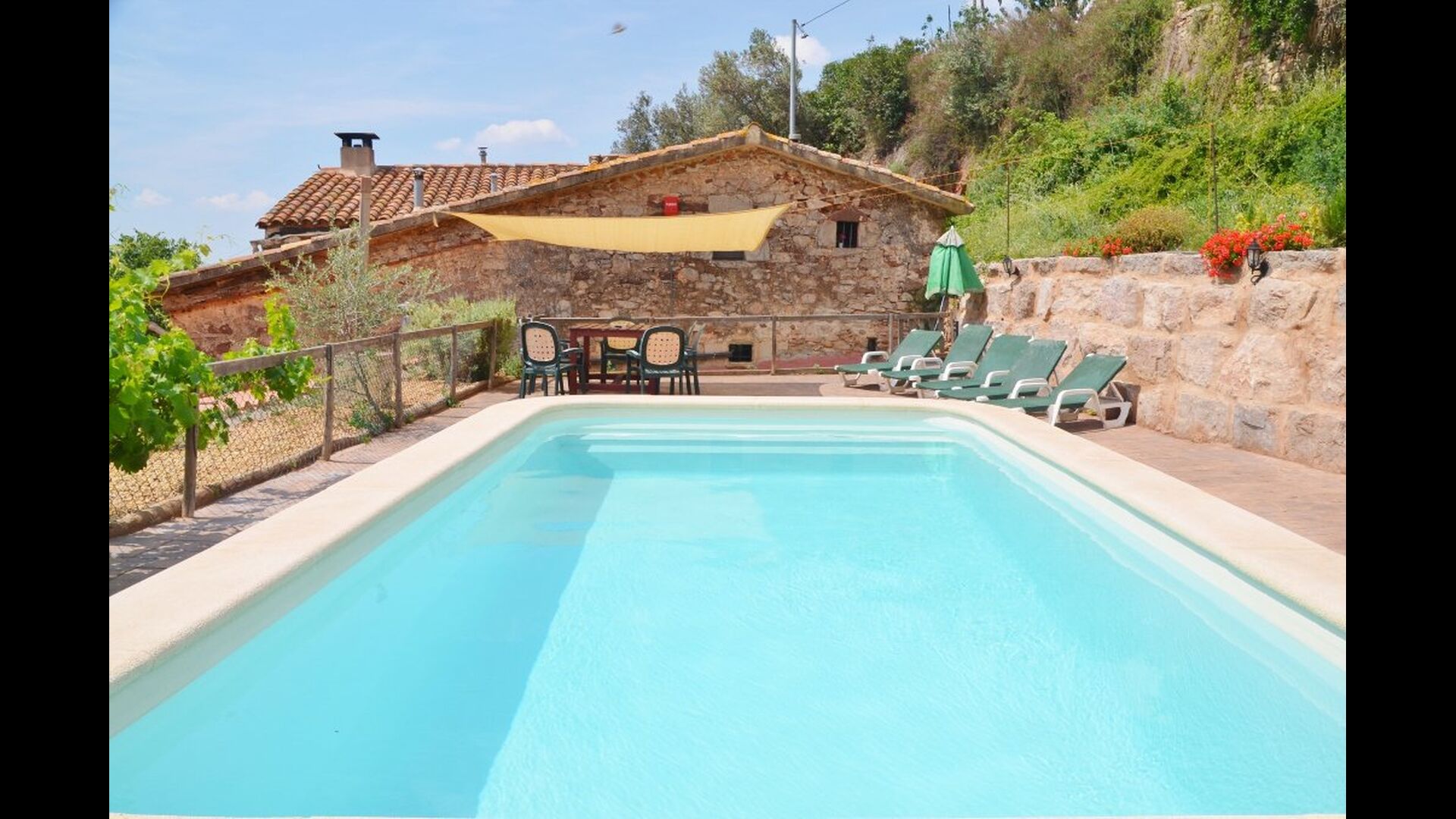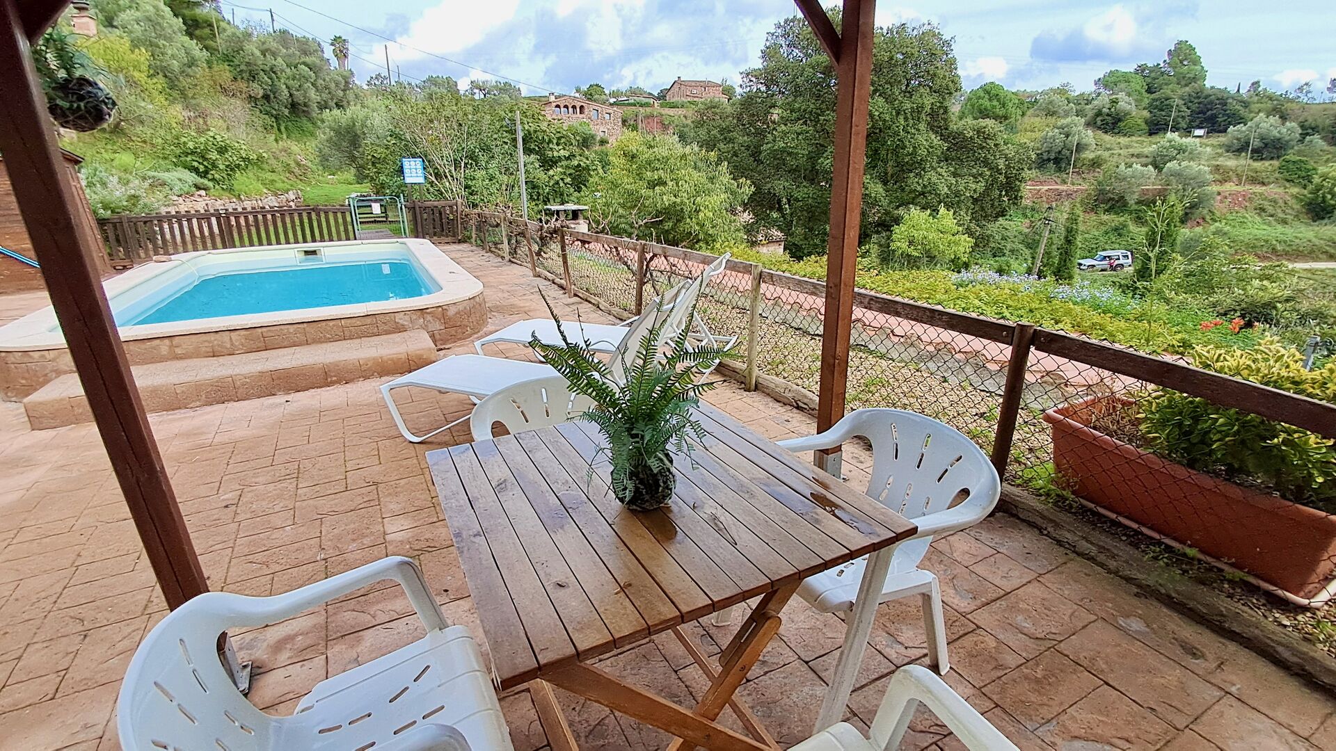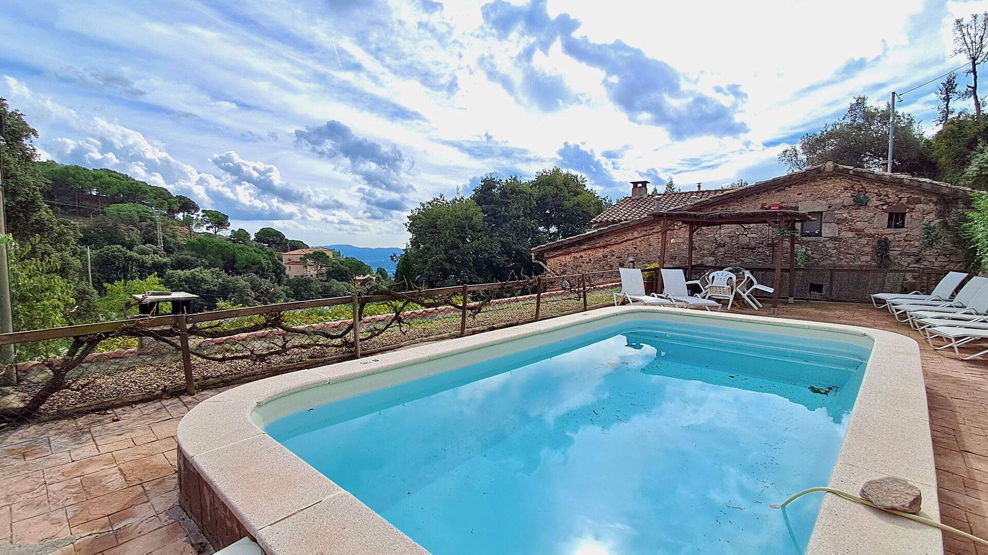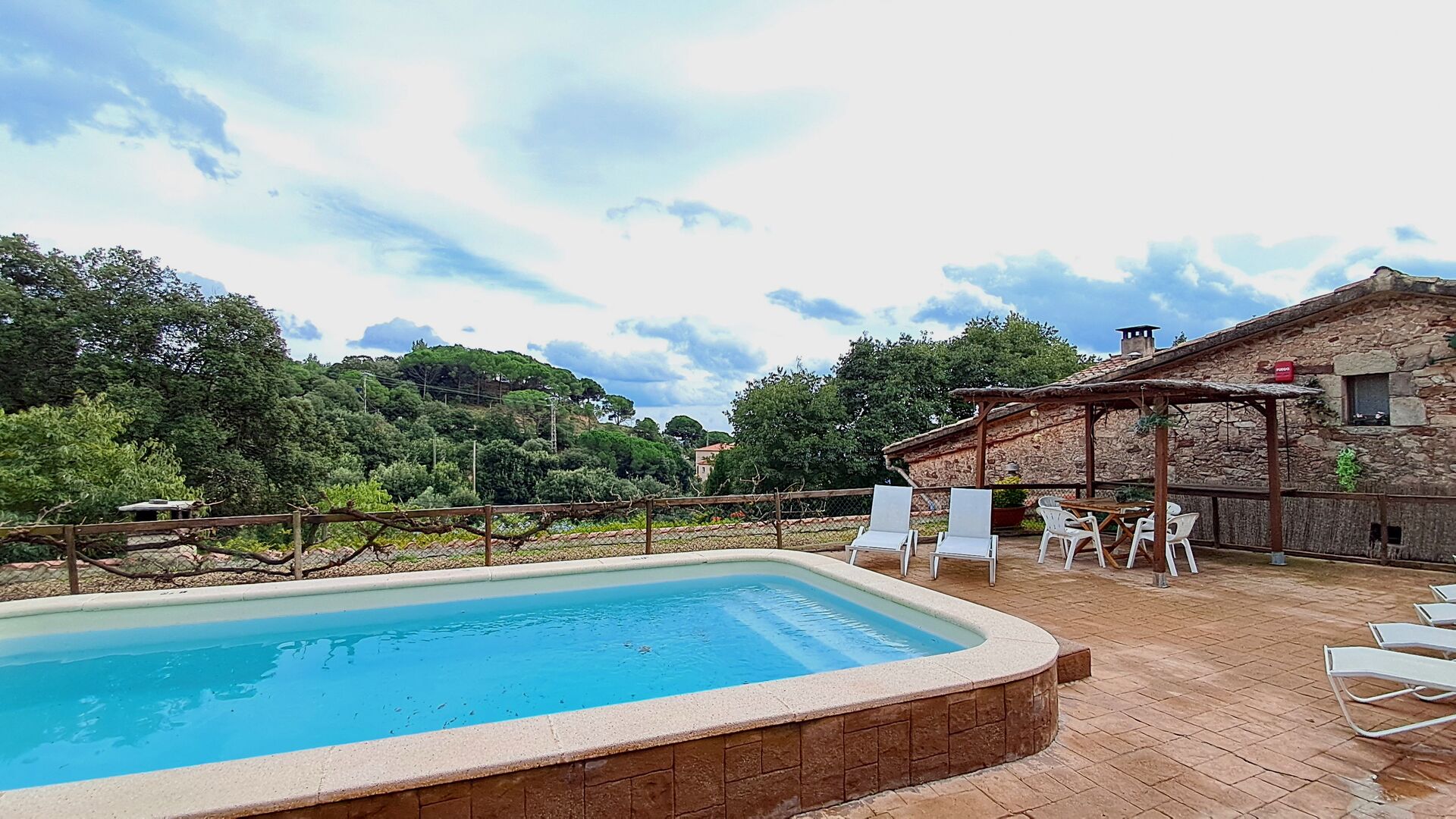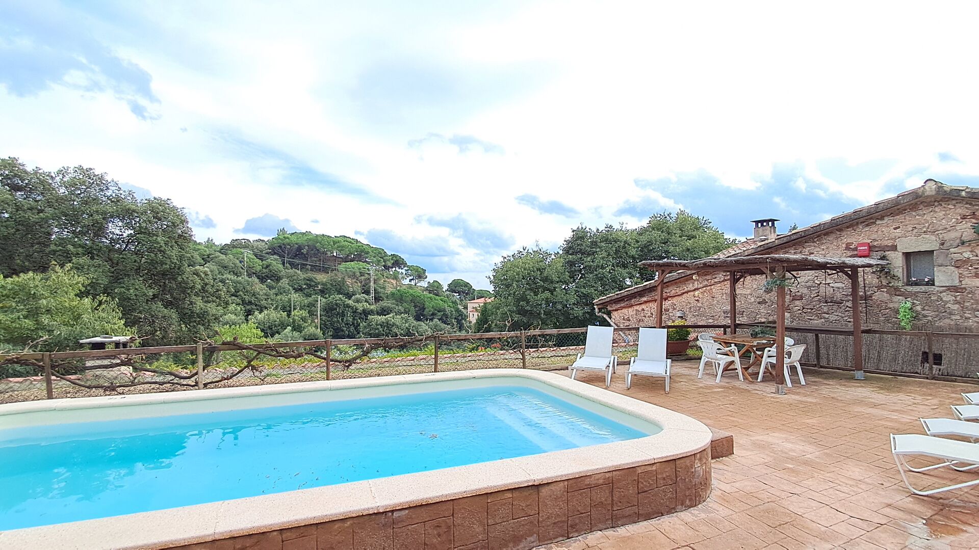 Et niveau højere er der en swimmingpool på 8 x 4 m. med trappetrin og som er beskyttet med en låge. Den ligger ideelt så man kan nyde udsigten over landskabet eller bare slappe af i liggestolene. Poolområdet er omgivet af typisk catalansk vegetation, repræsenteret af oliven- og figentræer, vinranker og man kan også finde jordbær, hvis der er sæson.