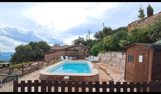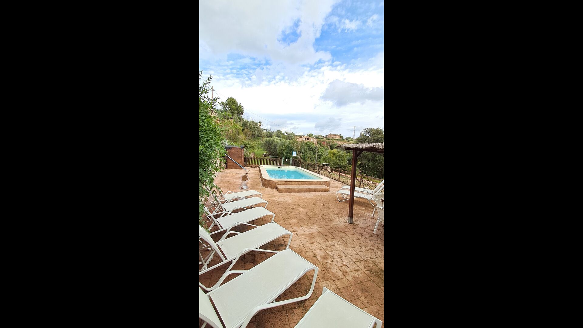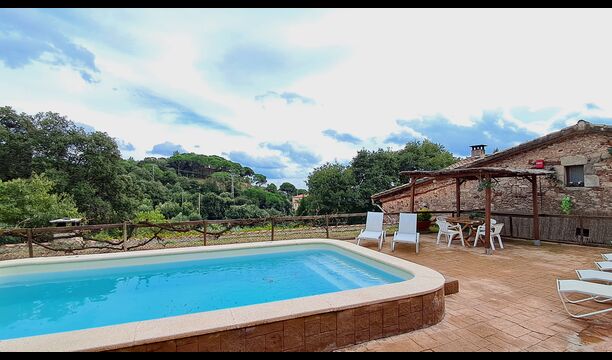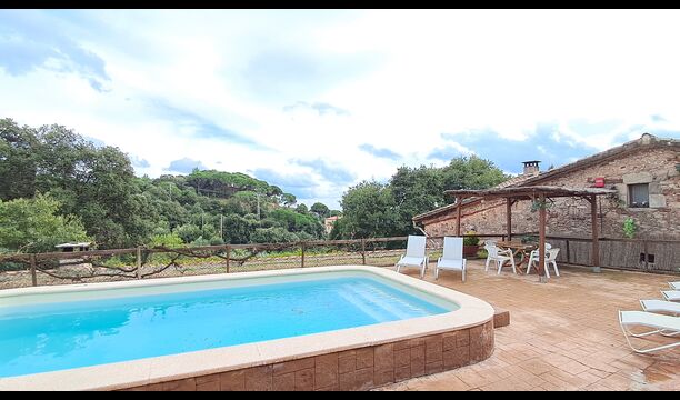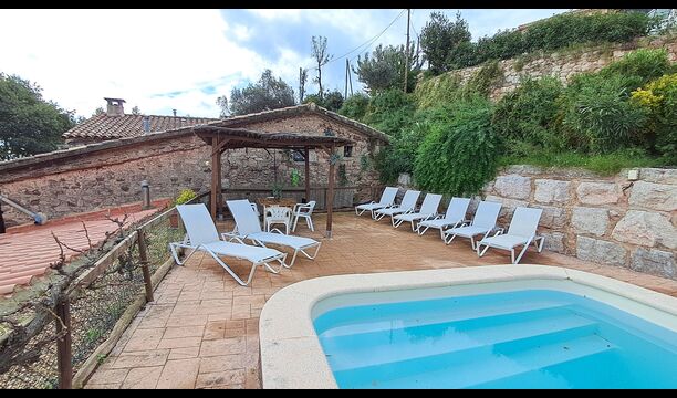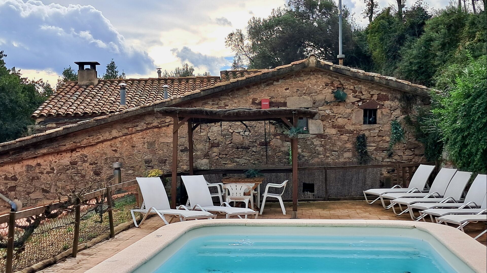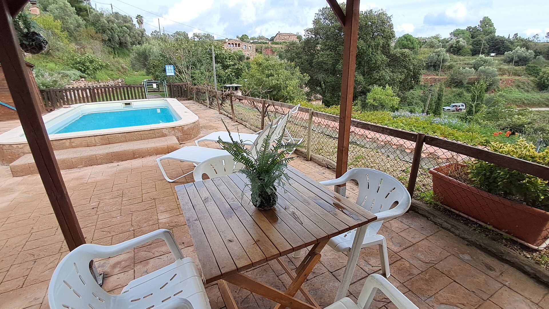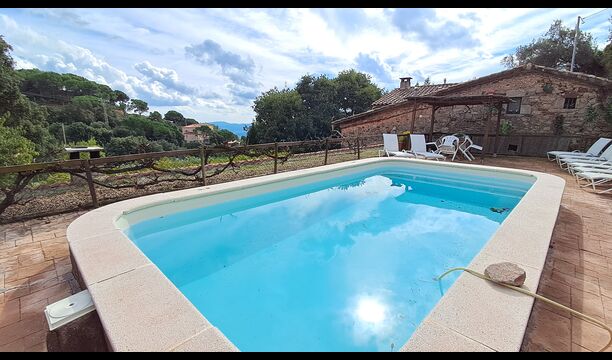 Et niveau højere er der en swimmingpool på 8 x 4 m. med trappetrin og som er beskyttet med en låge. Den ligger ideelt så man kan nyde udsigten over landskabet eller bare slappe af i liggestolene. Poolområdet er omgivet af typisk catalansk vegetation, repræsenteret af oliven- og figentræer, vinranker og man kan også finde jordbær, hvis der er sæson.