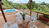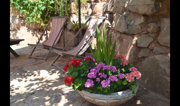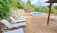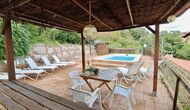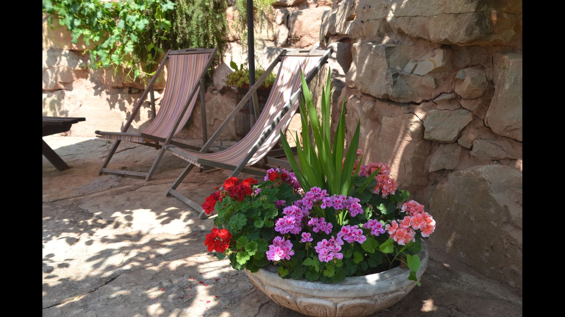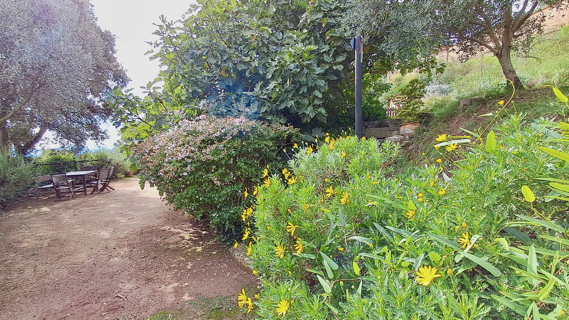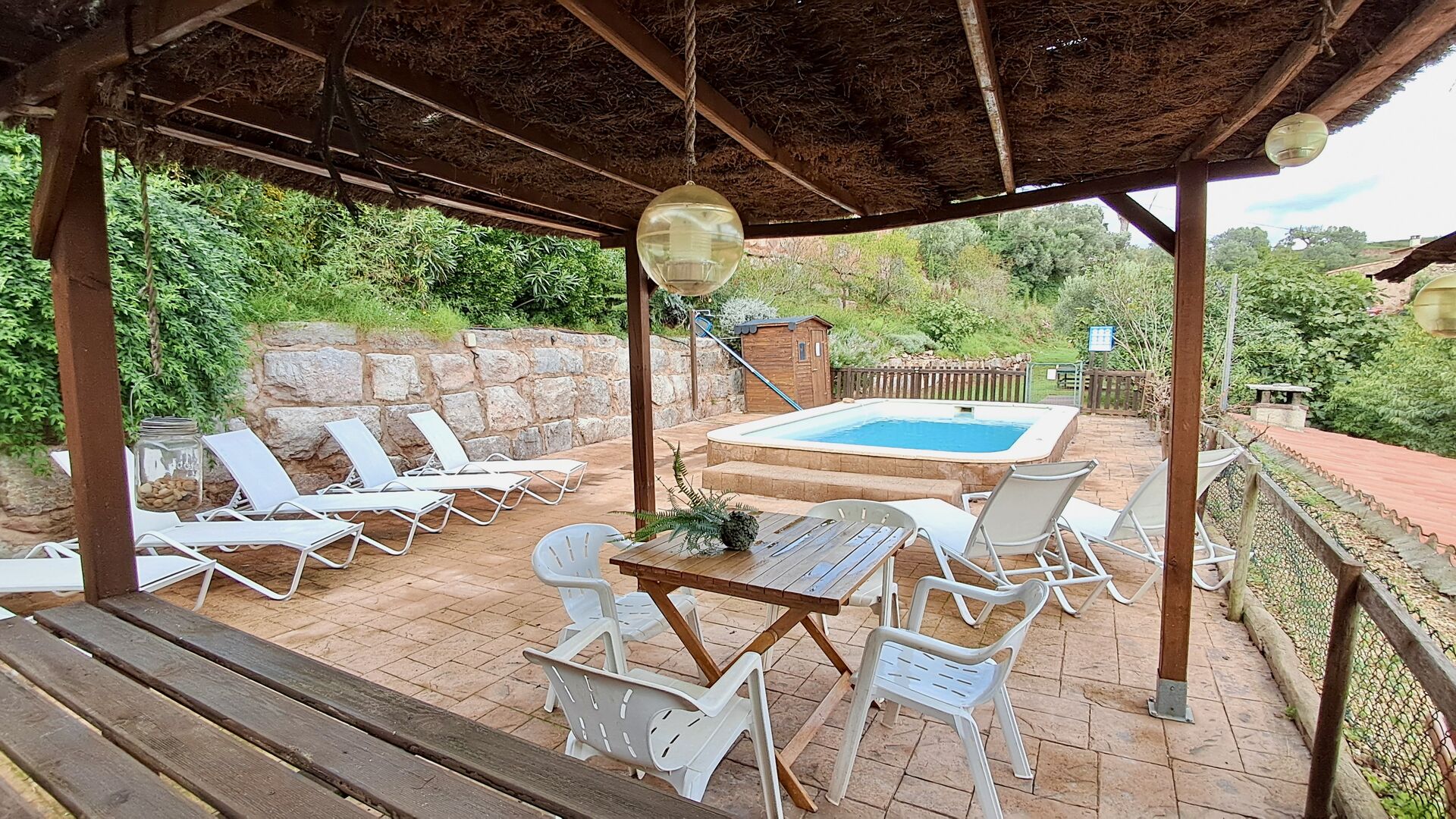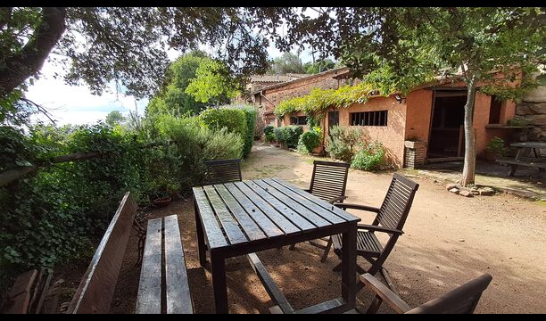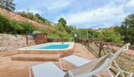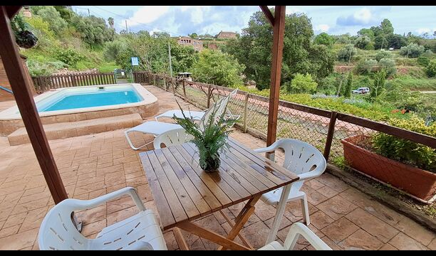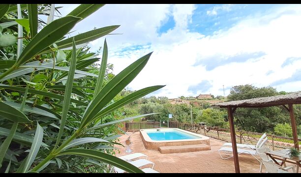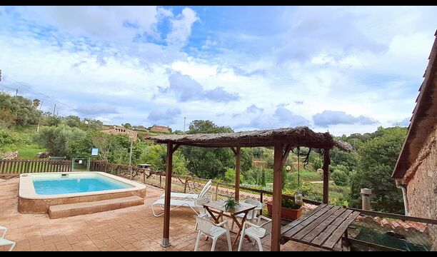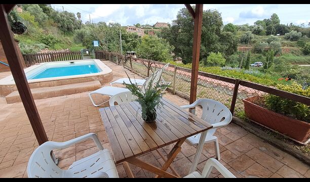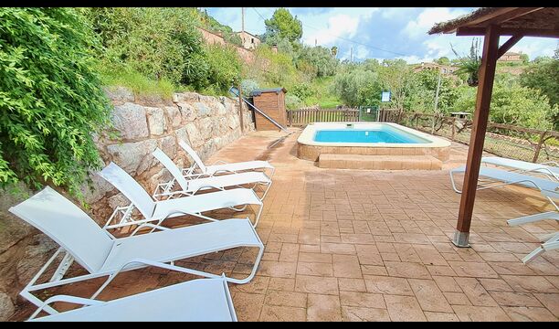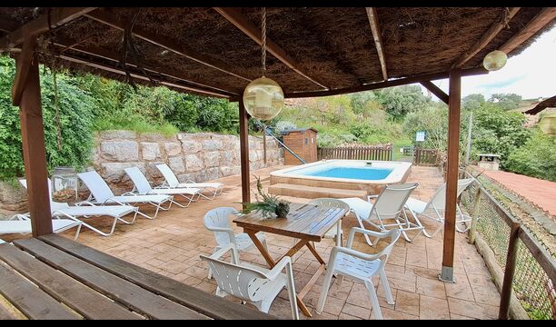 Et niveau højere er der en swimmingpool på 8 x 4 m. med trappetrin og som er beskyttet med en låge. Den ligger ideelt så man kan nyde udsigten over landskabet eller bare slappe af i liggestolene. Poolområdet er omgivet af typisk catalansk vegetation, repræsenteret af oliven- og figentræer, vinranker og man kan også finde jordbær, hvis der er sæson.