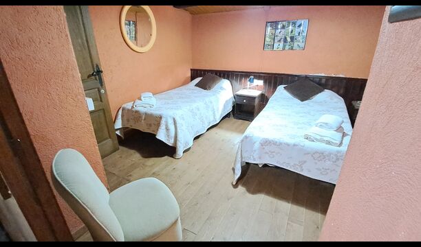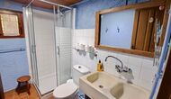 Der er yderligere et badeværelse ud over det nedenunder. Til evt. mindre børn er der to barnesenge og en høj stol til rådighed.