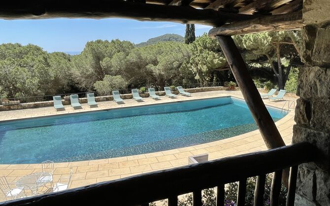 Poolområdet og den omkringliggende have er samlingspunktet, hvor vi forestiller os, at du kommer til at bruge meget af din tid. Swimmingpoolen har liggestole opstillet ved siden af poolen, så du kan slappe af i det solrige catalanske vejr. Lige ved poolområdet er der et skyggefuldt spisested med store borde. Udsigten er simpelthen fantastisk, hvilket gør det til det perfekte sted at nyde udendørs måltider med hele feriegruppen.