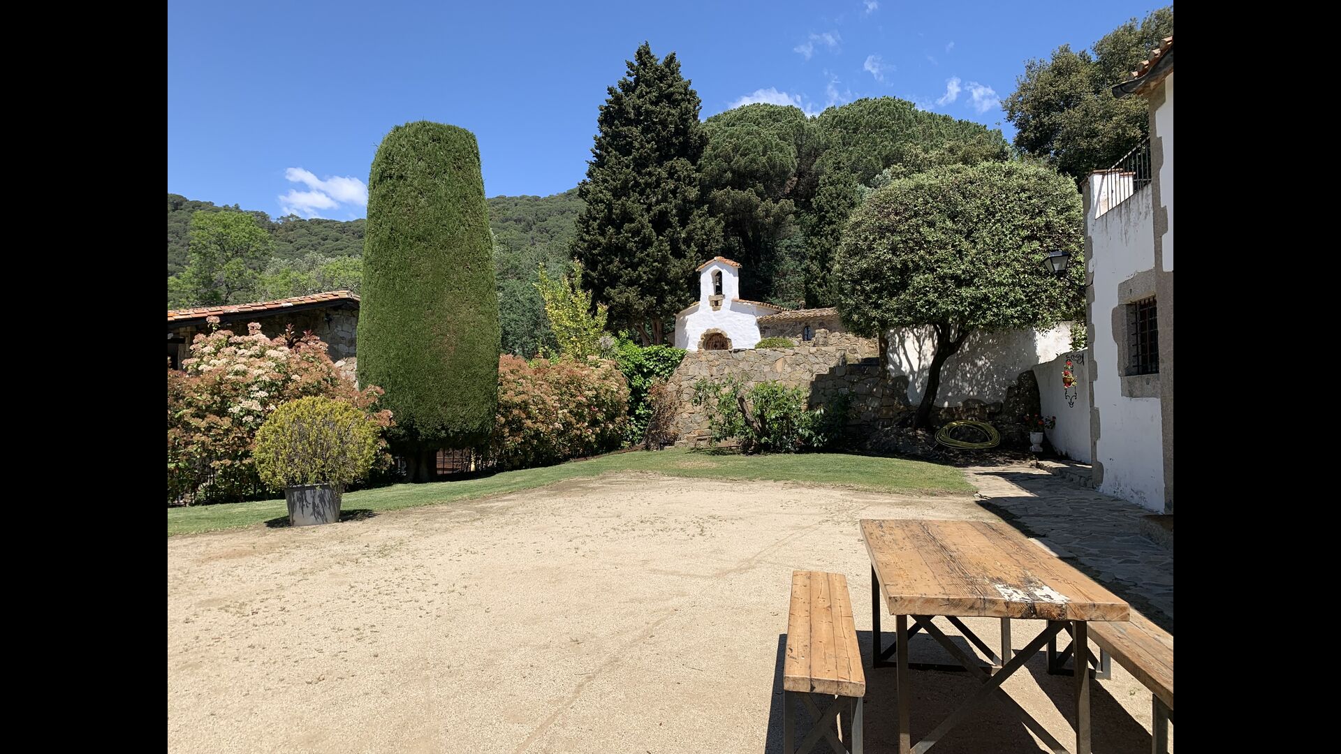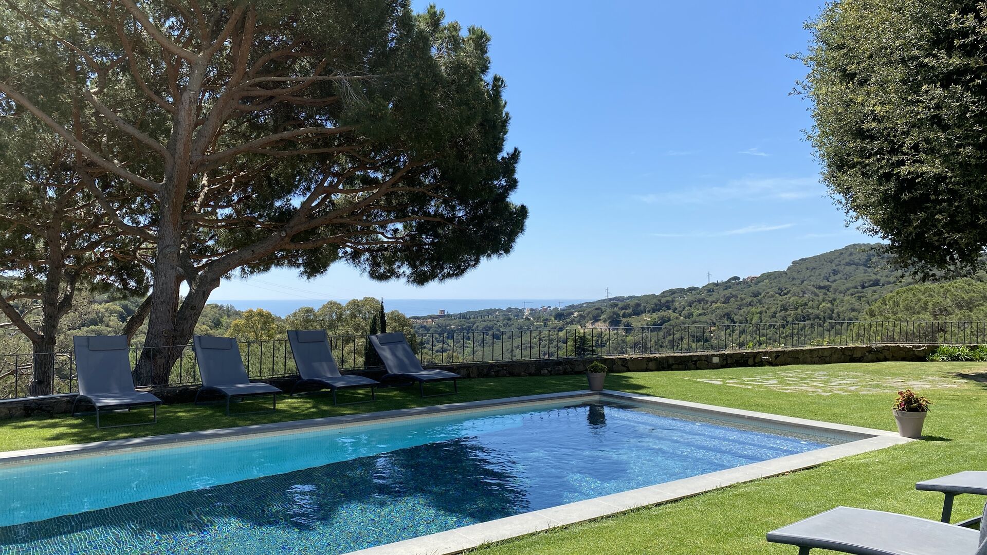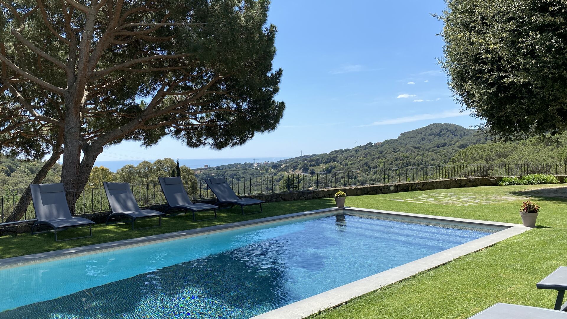 Det er næsten ubegribeligt, at man kan bo så naturskønt, roligt og med en fantastisk udsigt til bjergene og med kig til havet, og alligevel kun være i lang gåafstand af en by med byer og restauranter og mindre end 5 km. til stranden, hvor der også er tog til Barcelona.