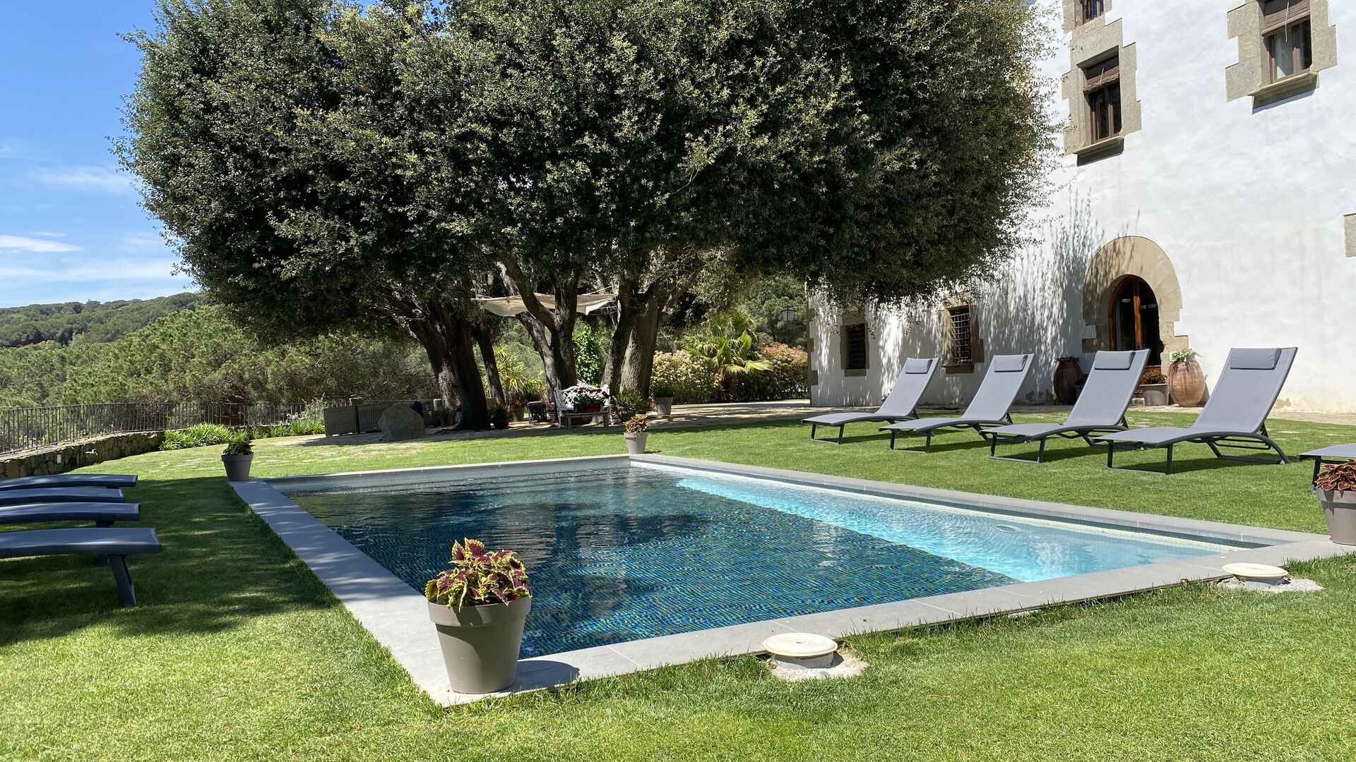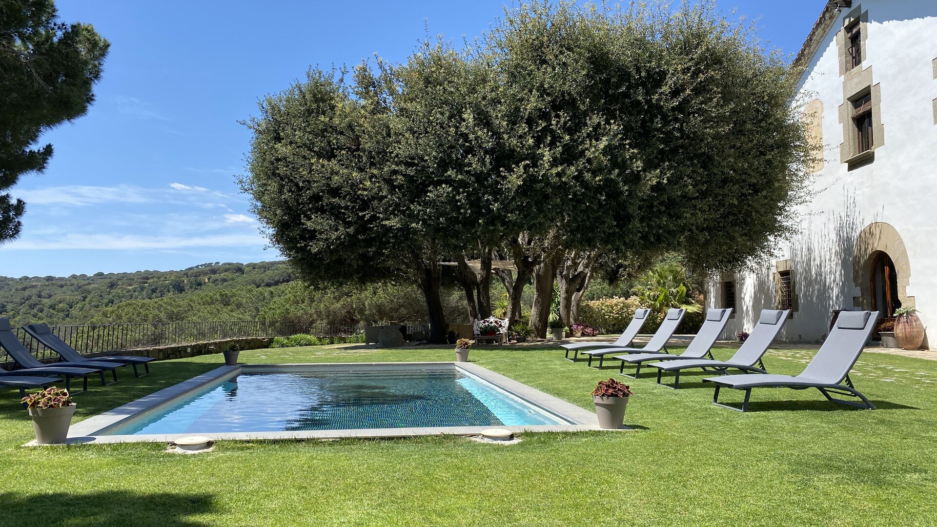 Poolområdet og den omkringliggende have er hjemmets hjerte, hvor vi forestiller os, at du vil tilbringe det meste af din tid. Swimmingpoolen har en fantastisk udsigt til Middelhavet, der kigger frem i baggrunden. Hvis du nyder at tilbringe tid ved poolen med at svømme, læse og nyde naturen, så er Mas Sant Molinda helt sikkert som det perfekte feriehus for dig!