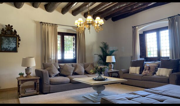 Når man kører op ad bakken mod Mas Sant Molinda, bemærker man med det samme den frodige og smukke natur, der omgiver dig. Når man passerer gennem den smukke buede indkørsel, når man det fantastiske hus, som har en udsigt, der er svær at slå! Mas Sant Molinda er et meget unikt feriehus med plads til op til 16(+6) gæster.