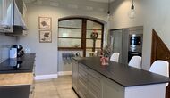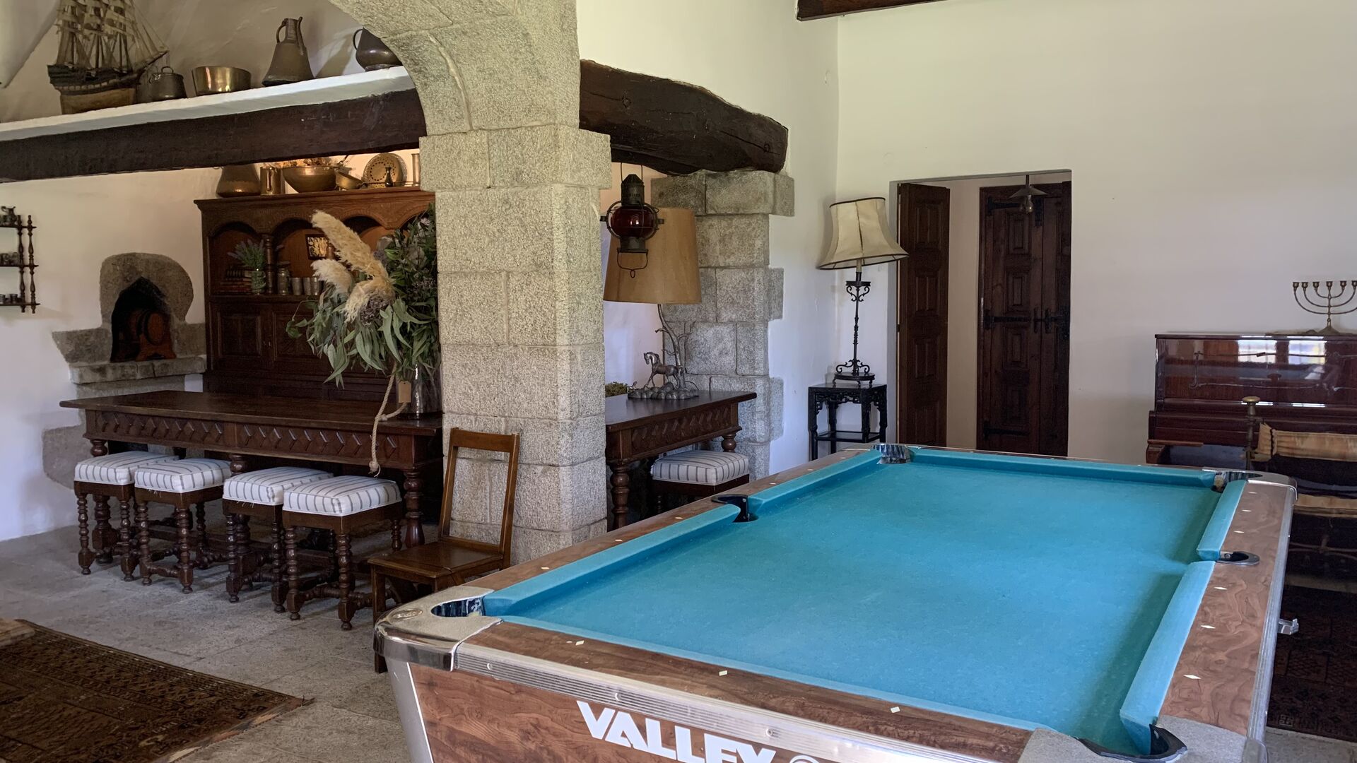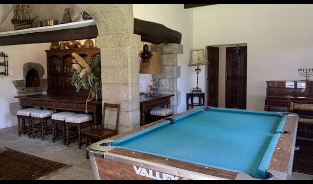 Når man træder ind i huset fra hovedindgangen, vil man befinde dig i en stor hall. I stueetagen finder man alle de fælles rum, herunder en hyggelig opholdsstue, et stort spillerum med billard, en utrolig spisestue og et stort, fuldt udstyret køkken, der også har direkte adgang til den udendørs grillplads. Der er også et fælles badeværelse i stueetagen tæt ved swimmingpoolen.