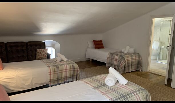I princippet kan man bo op til op til 22 gæster i huset, men vær opmærksom på, at huset har en øverste etage med 1 dobbeltseng, 2 enkeltsenge og 1 badeværelse med ret lavt til loftet på grund af husets autenticitet; derfor anbefales denne etage kun til personer, der ikke er særlig høje (eller børn).