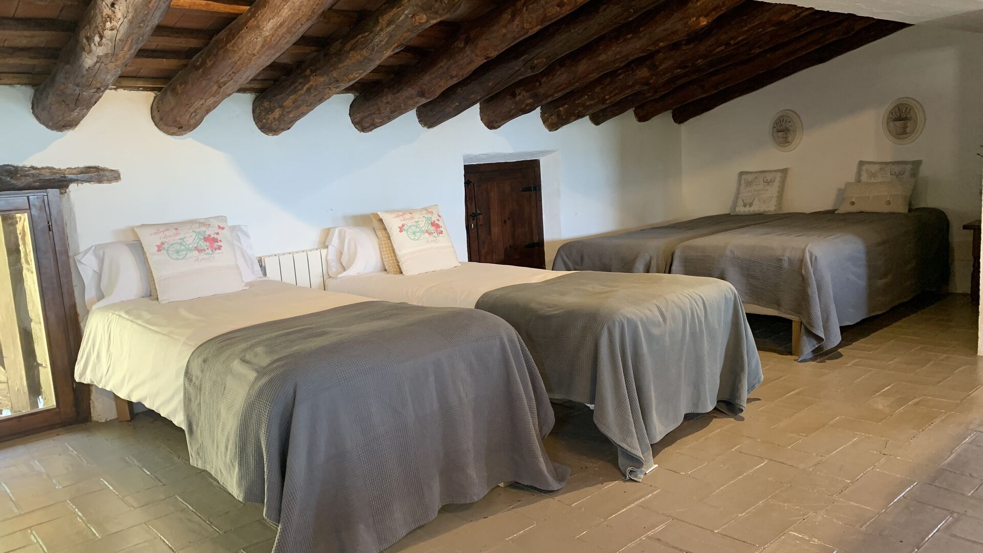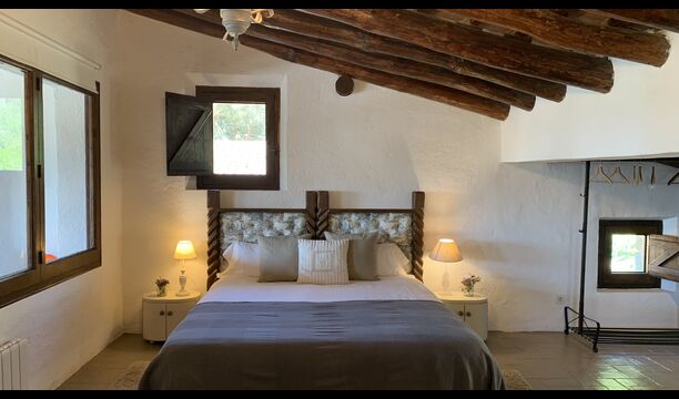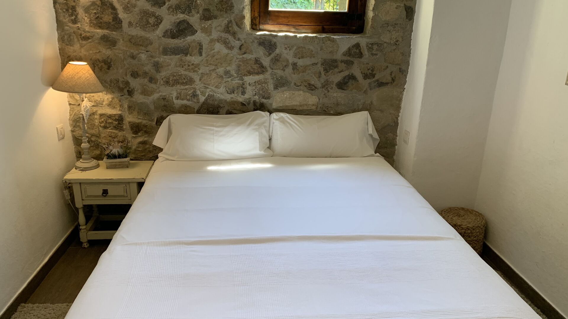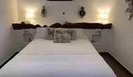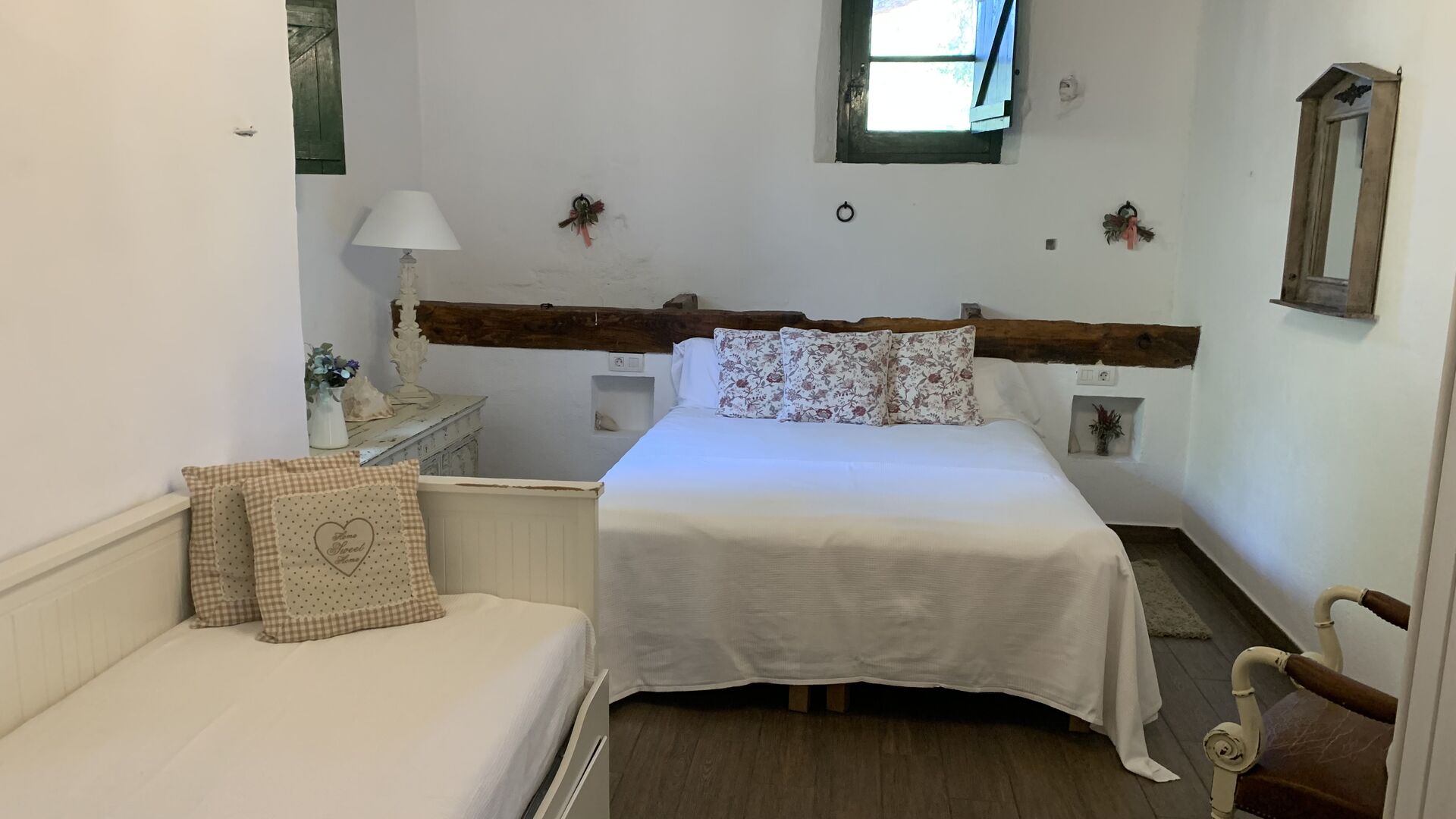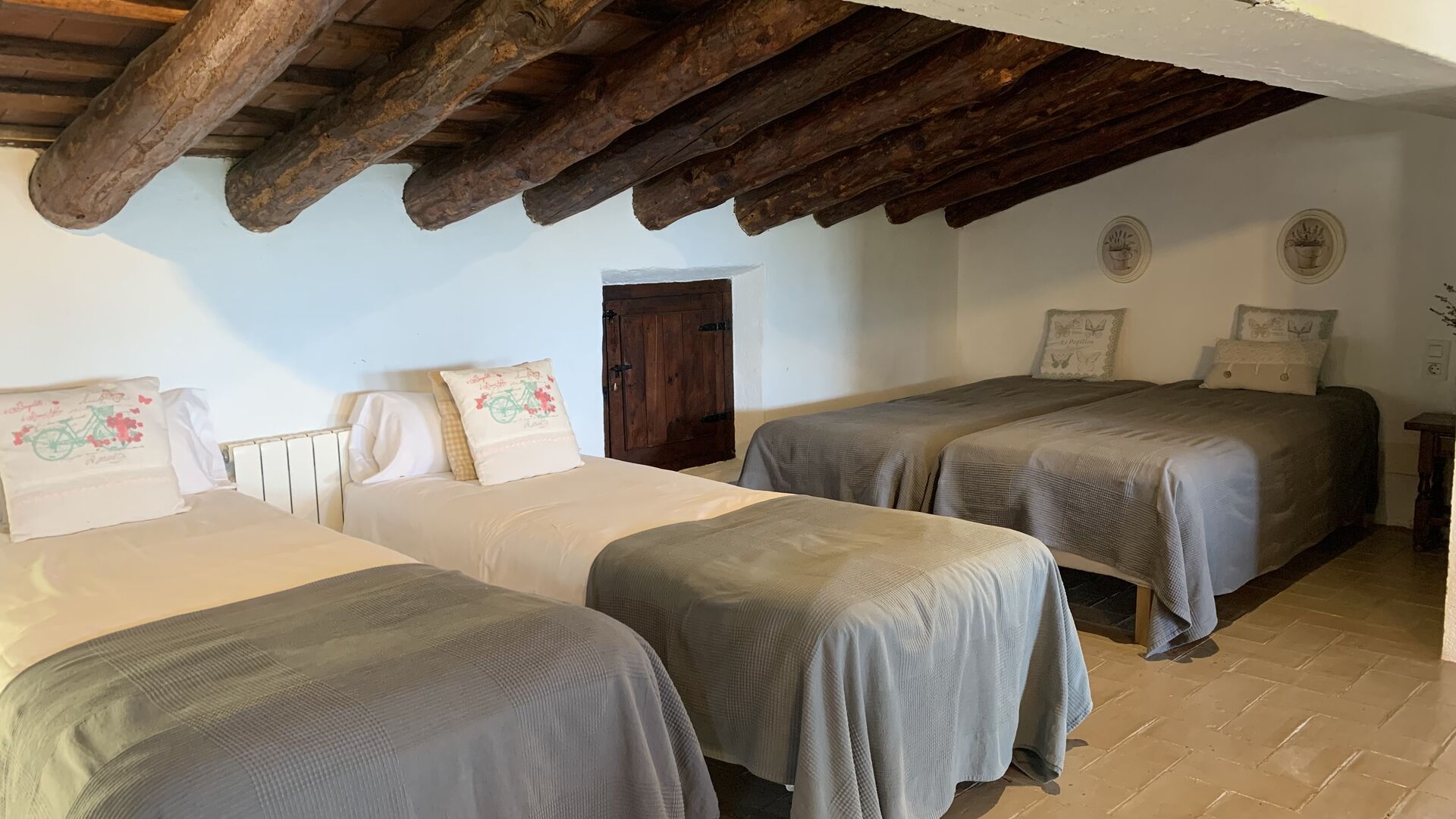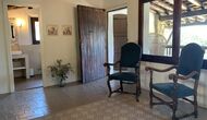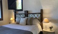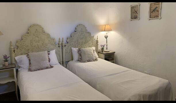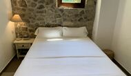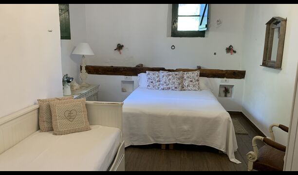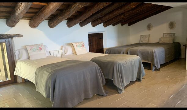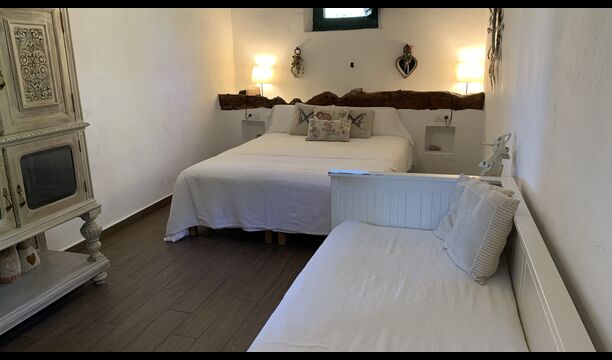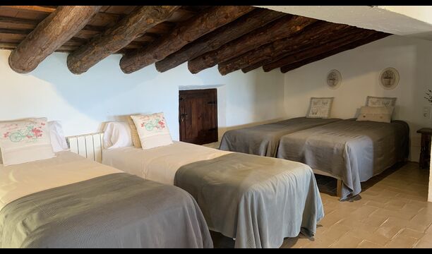 Ved siden af BBQ området ligger indgangen til husets stue etage. Stueetagen er nydeligt istandsat, men selvfølgelig med respekt for husets originale arkitektur og mange fine detaljer, så som de smukke buer og træbjælker i loftet, er bevaret. Her finder du fire store og flotte soveværelser. To af værelserne er tripple værelser med en dobbelt seng og en single seng, og de to andre værelser er doble værelser - det ene med to single senge, og det andet med en dobbelt seng. Soveværelserne deler et stort badeværelse i stue etagen.