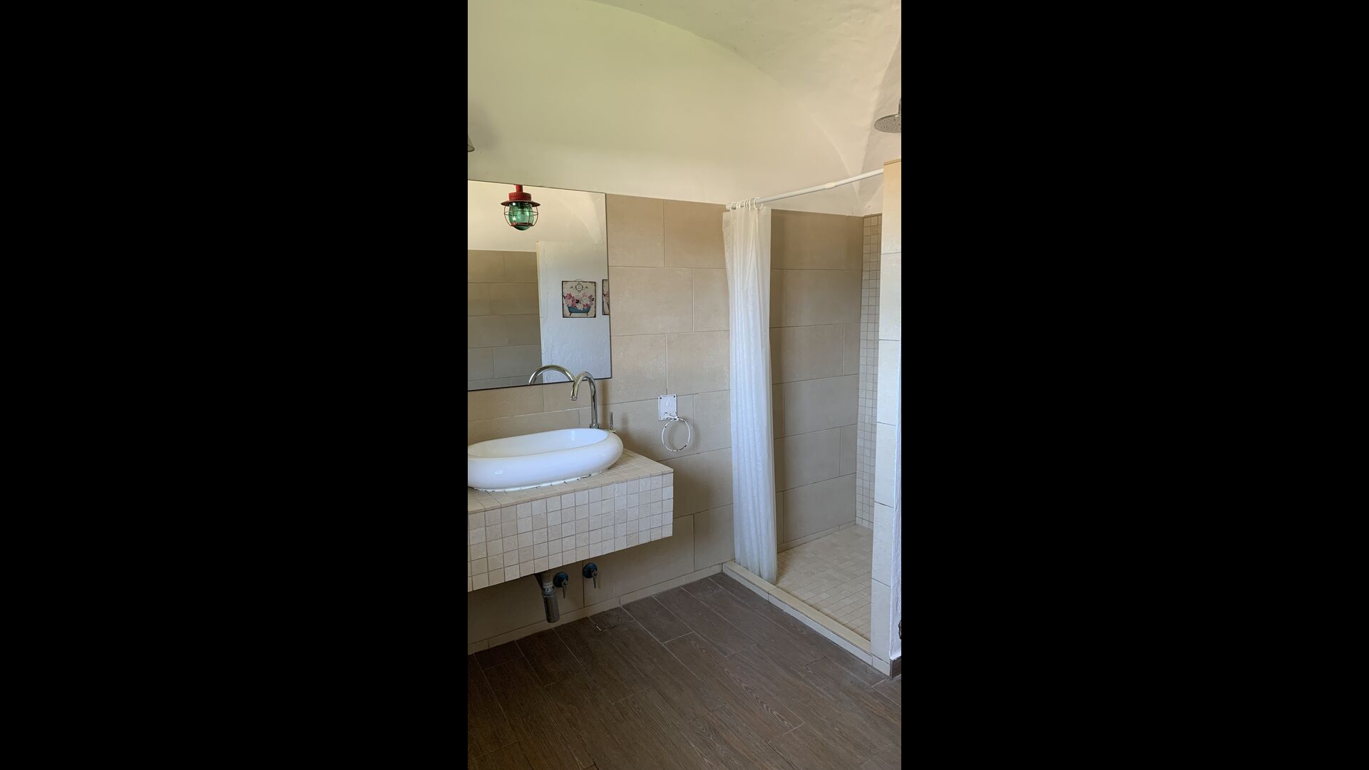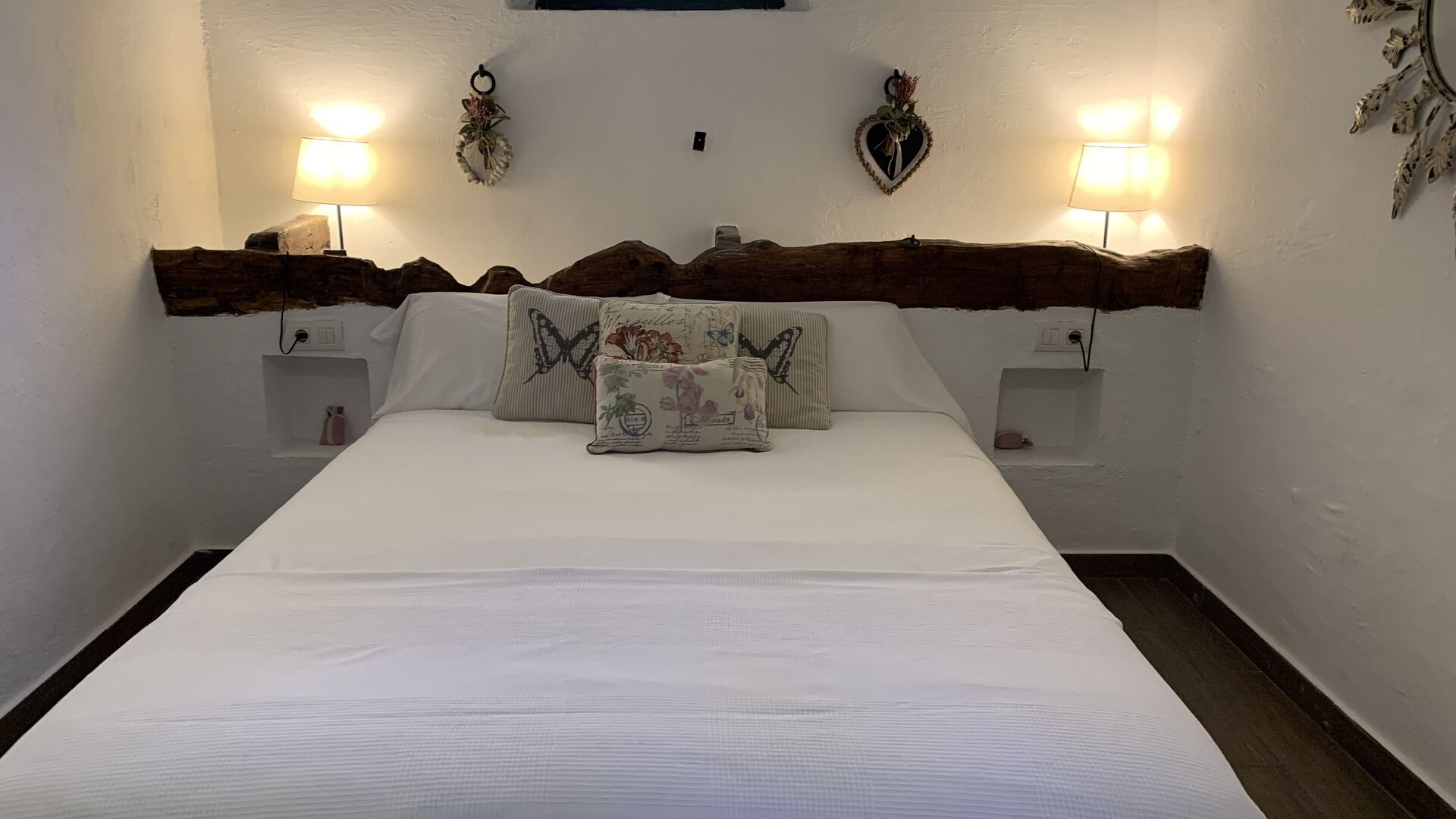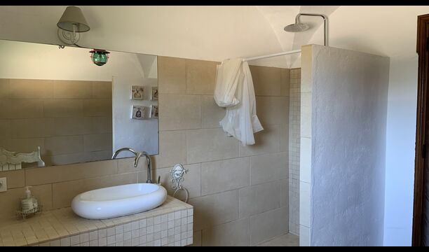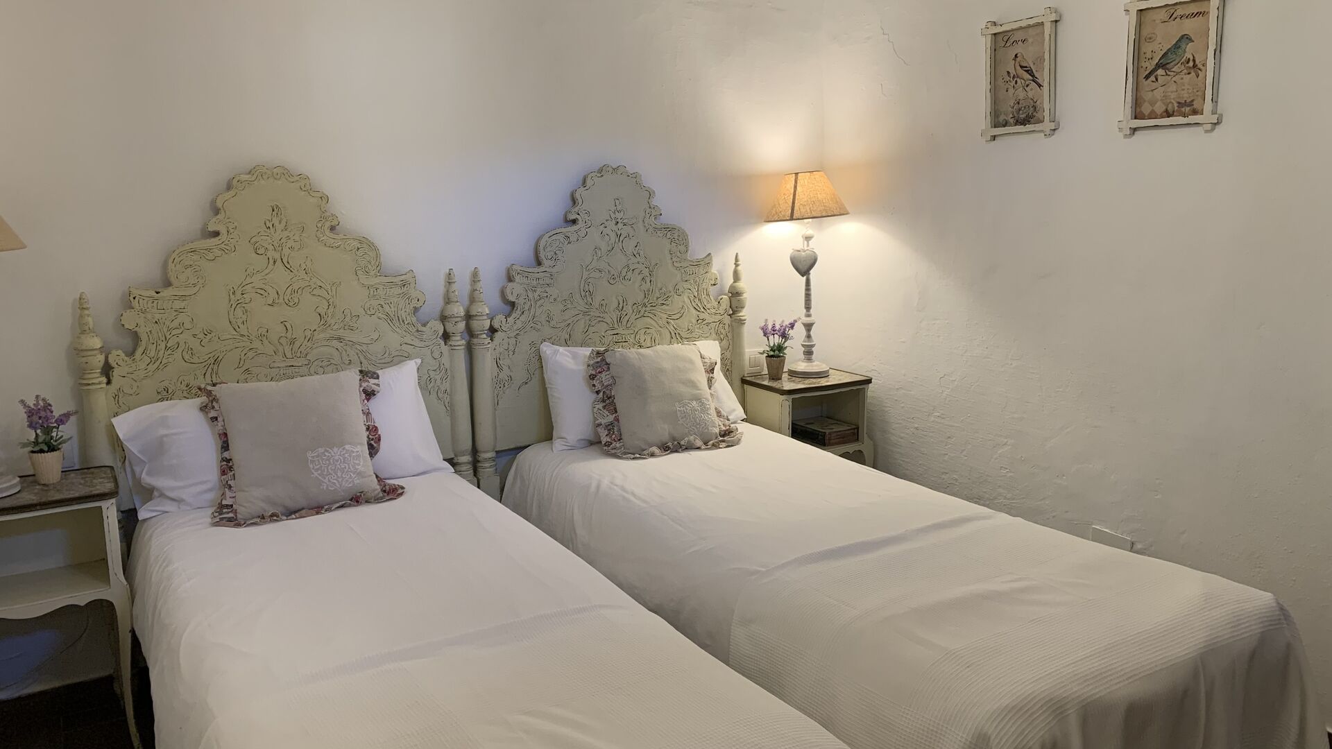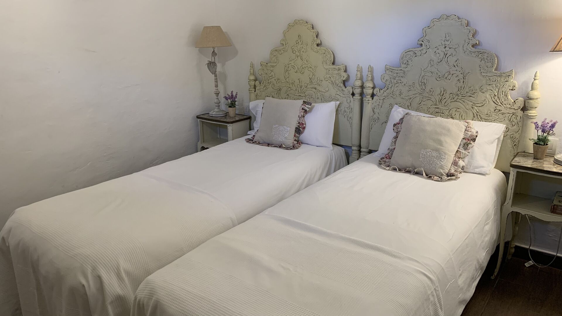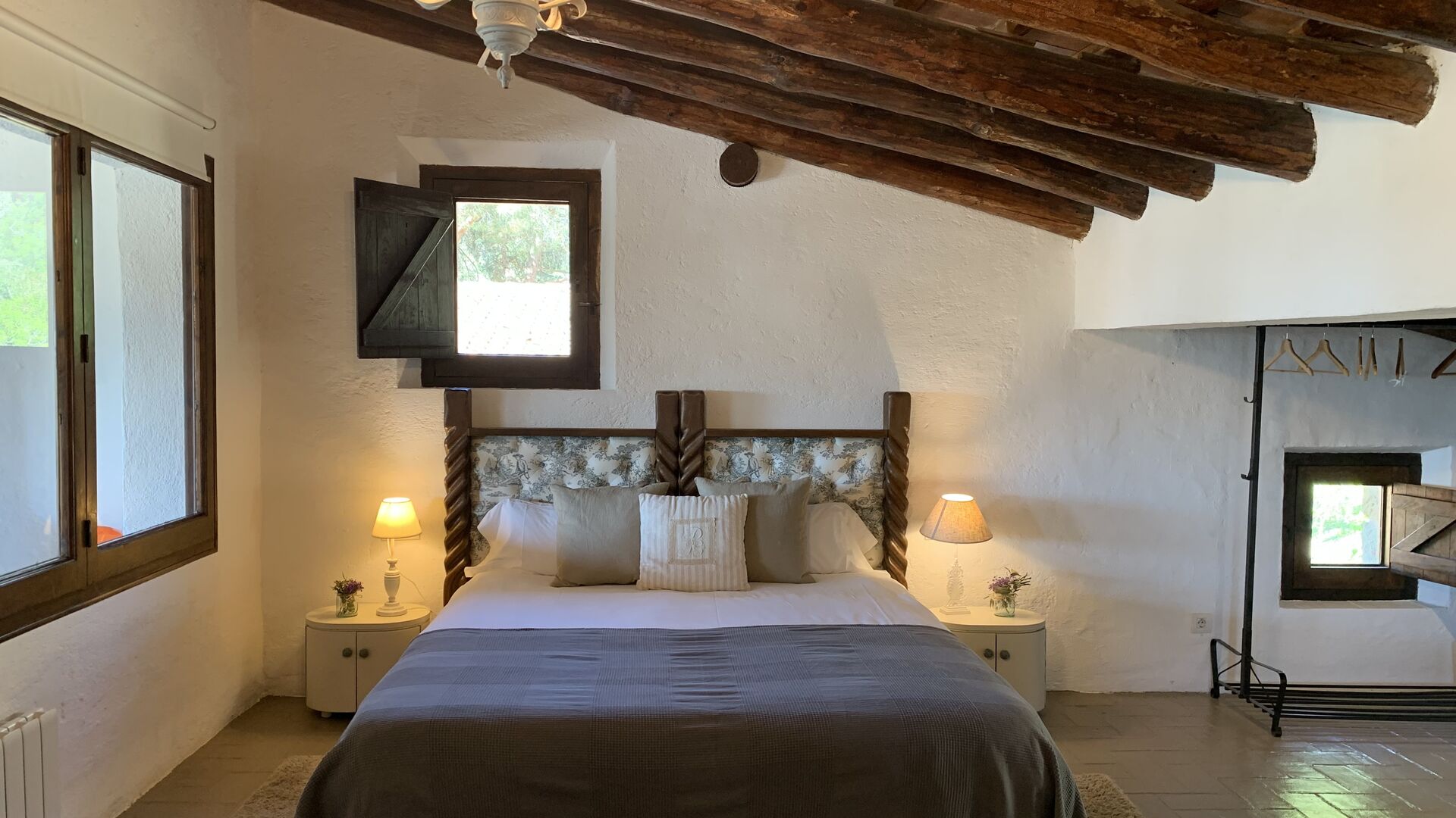 Ved siden af BBQ området ligger indgangen til husets stue etage. Stueetagen er nydeligt istandsat, men selvfølgelig med respekt for husets originale arkitektur og mange fine detaljer, så som de smukke buer og træbjælker i loftet, er bevaret. Her finder du fire store og flotte soveværelser. To af værelserne er tripple værelser med en dobbelt seng og en single seng, og de to andre værelser er doble værelser - det ene med to single senge, og det andet med en dobbelt seng. Soveværelserne deler et stort badeværelse i stue etagen.