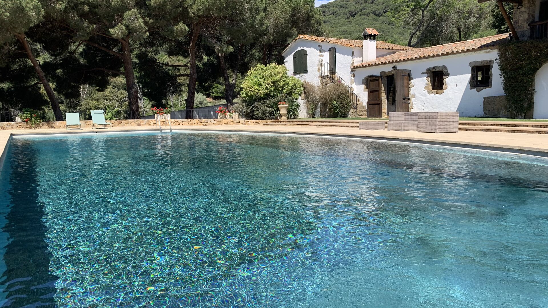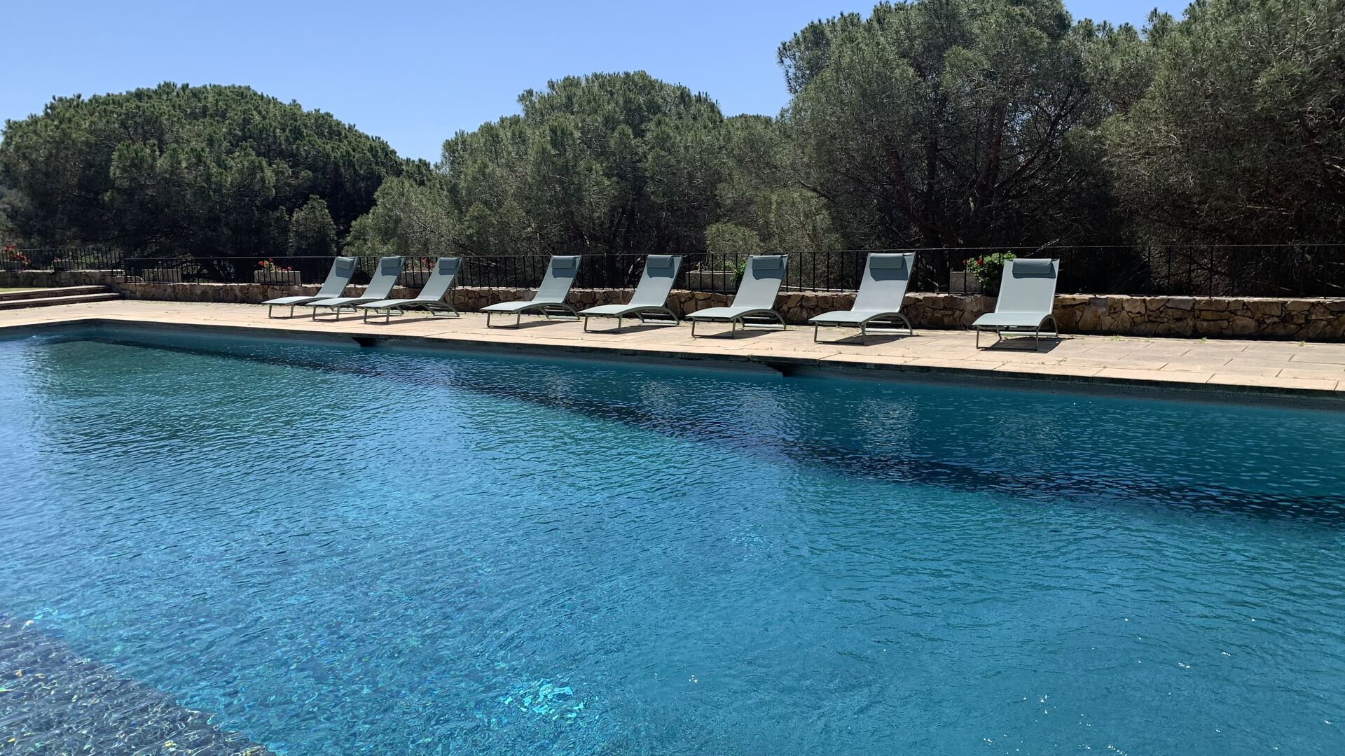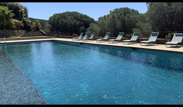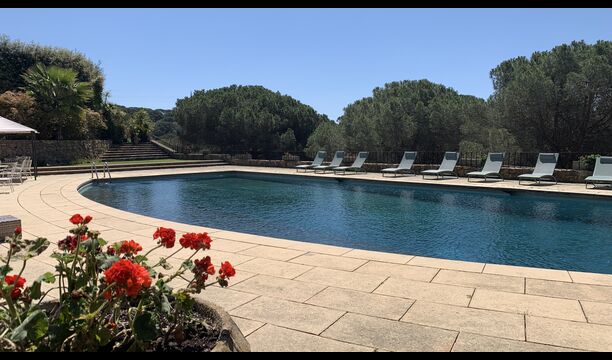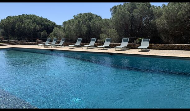 Husets samlingspunkt er den gigantiske swimming pool. Her er plads til hele feriegruppen og mere til! Så hvis du er glad for at svømme, er der rig mulighed for det. Men man kan selvfølgelig også nøjes med de mange, lækre liggestole som er linet op langs swimmingpoolen.