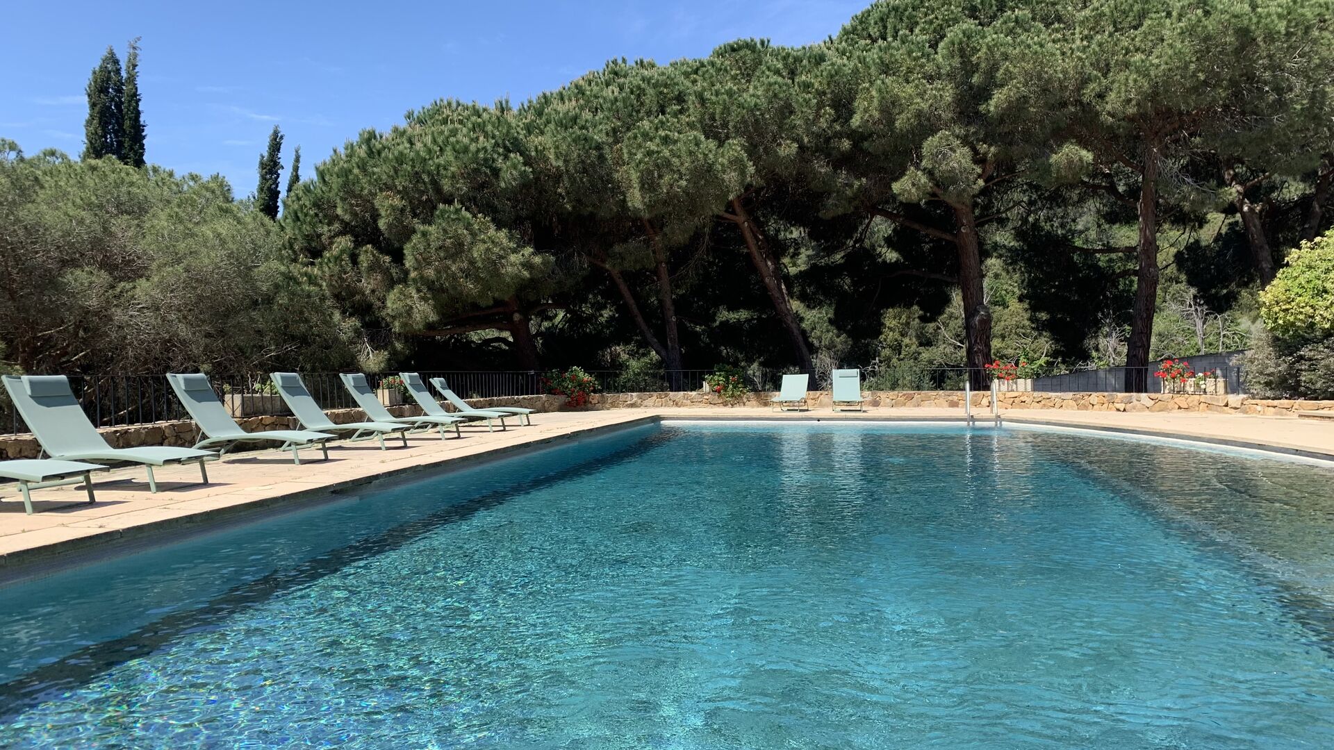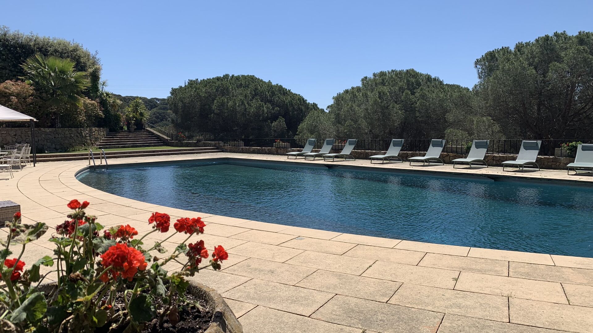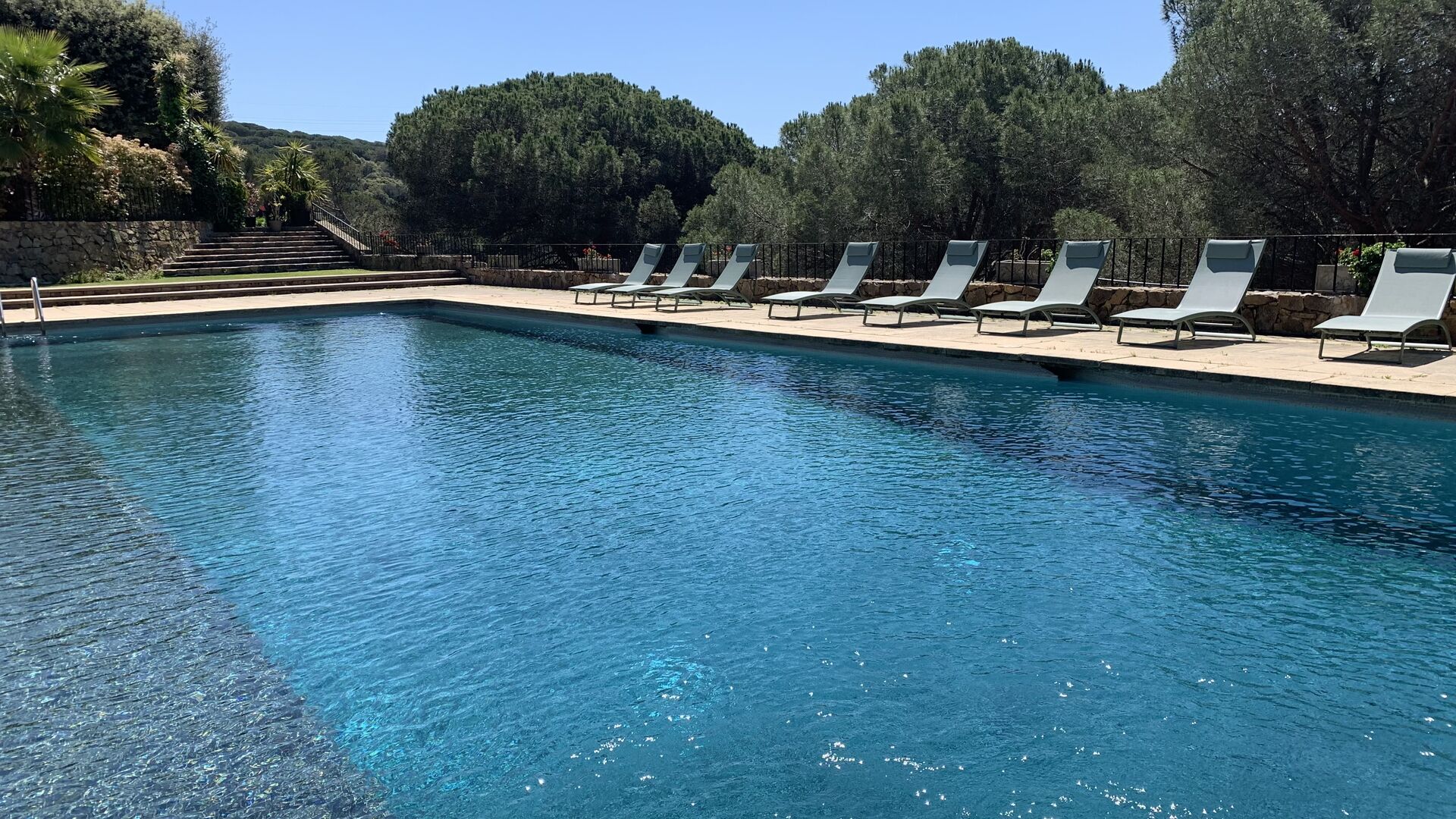 Husets samlingspunkt er den gigantiske swimming pool. Her er plads til hele feriegruppen og mere til! Så hvis du er glad for at svømme, er der rig mulighed for det. Men man kan selvfølgelig også nøjes med de mange, lækre liggestole som er linet op langs swimmingpoolen.