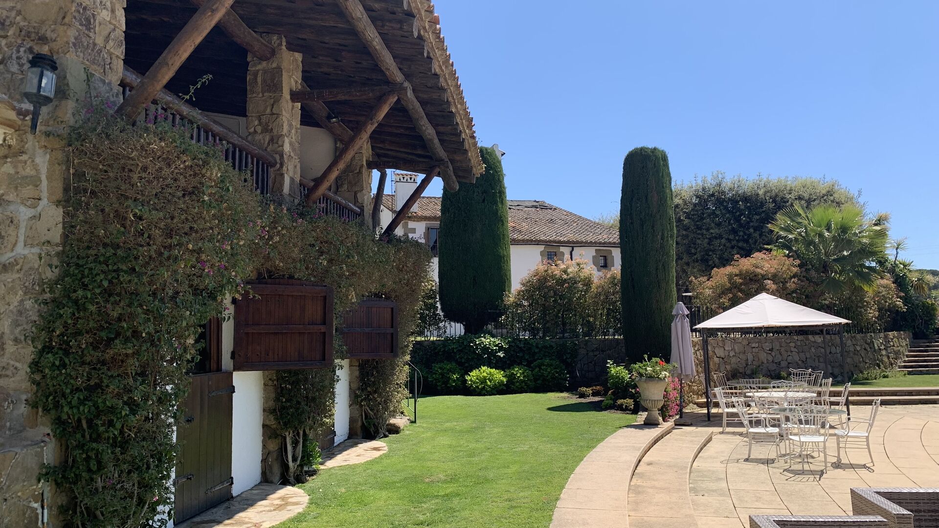 Grusvejen snor sig op af bakken, igennem det frodige landskab. Som du nærmer dig Vila Valdes, vil du kører igennem en smuk buede port. Når du kommer frem til Vila Valdes ligger du straks mærke til, at Vila Valdes er noget helt særligt! Et autentisk, smukt catalansk landhus omgivet af en skøn, frodig have med masser af flotte blomster og træer.