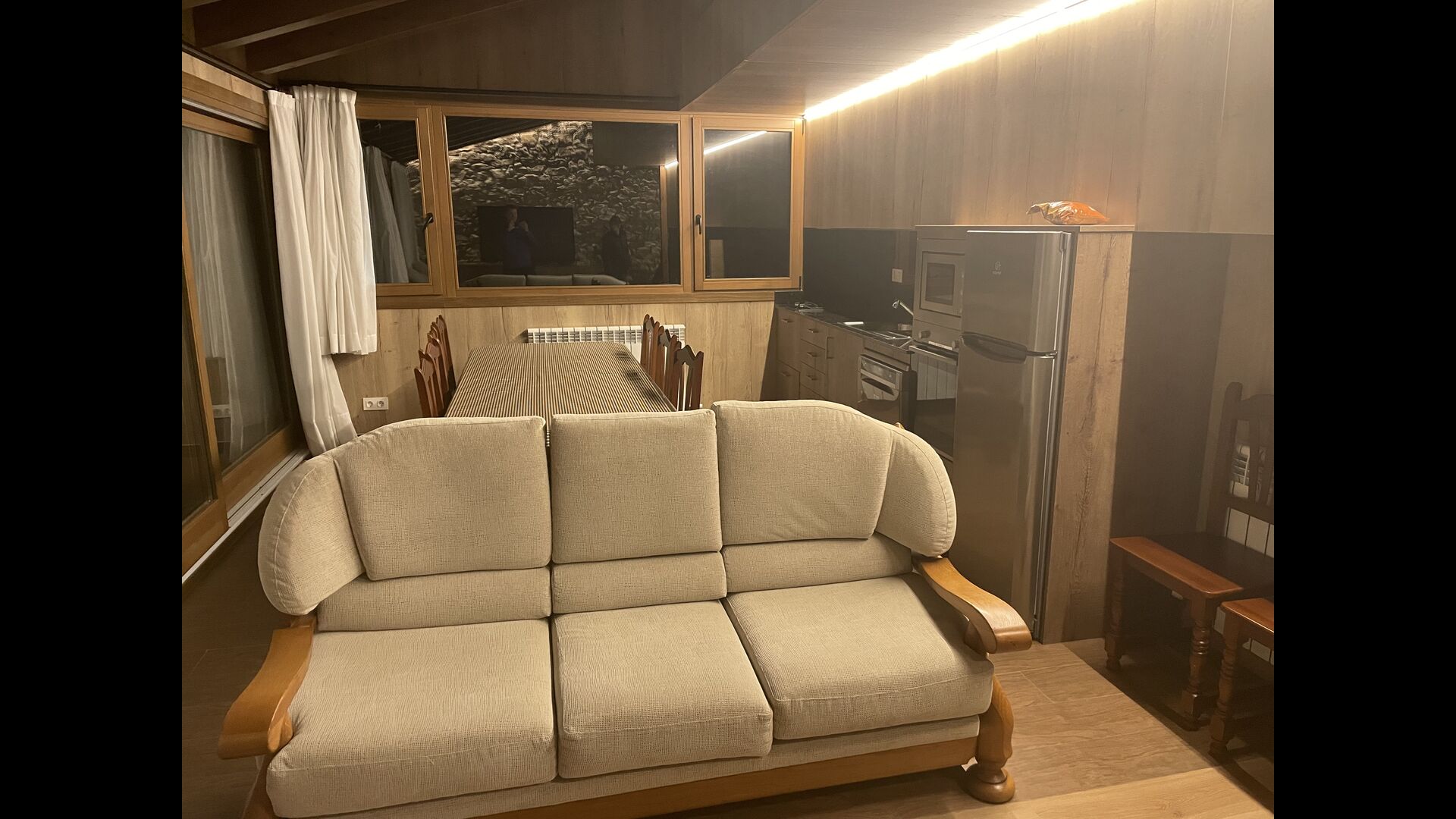 I El Porxo er der eget køkken og spisestue samt et dobbeltværelse og et badeværelse. Desuden er der i forbindelse med spisestue/køkken et hemssoveværelse med 5 små enkeltsenge, hvor børn kan sove.
