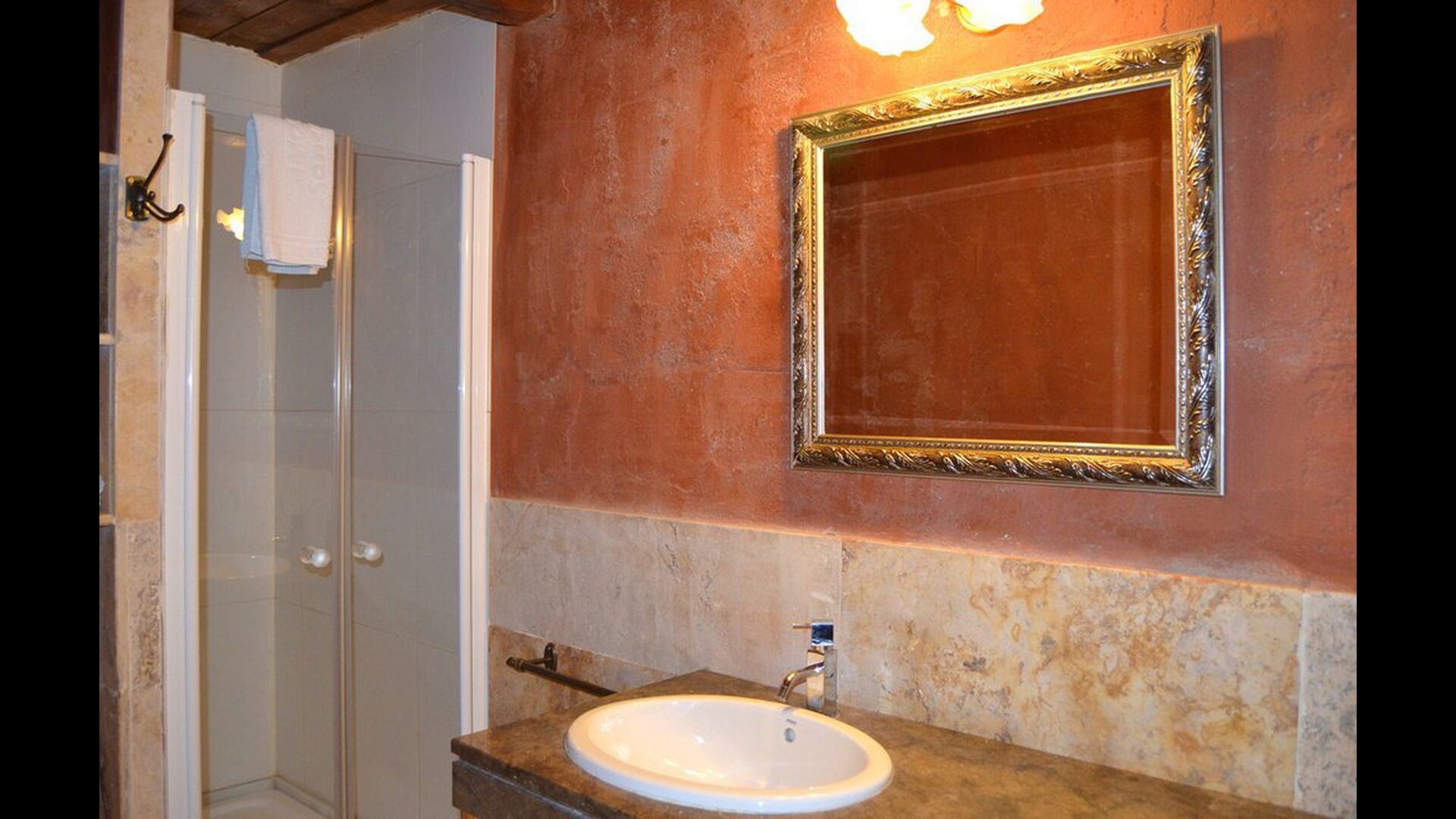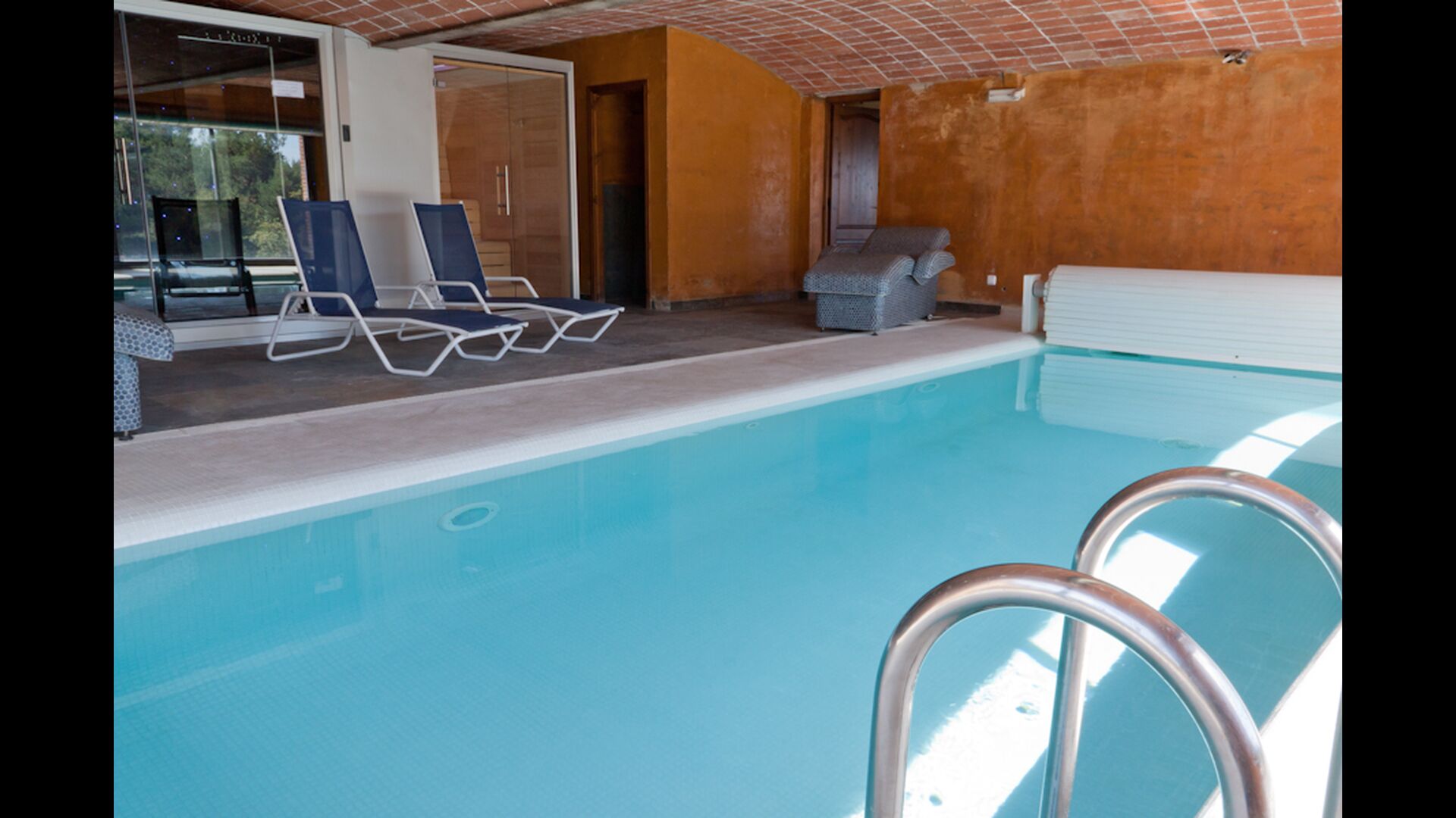Der er to delte faciliteter, som specielt træder tydeligt frem. For det første er der den vidunderlige pool på hele 40 m2, hvorfra der er en fantastisk udsigt udover bjergene og skoven. For det andet er der et helt specielt spa/wellness-område, der indeholder følgende: