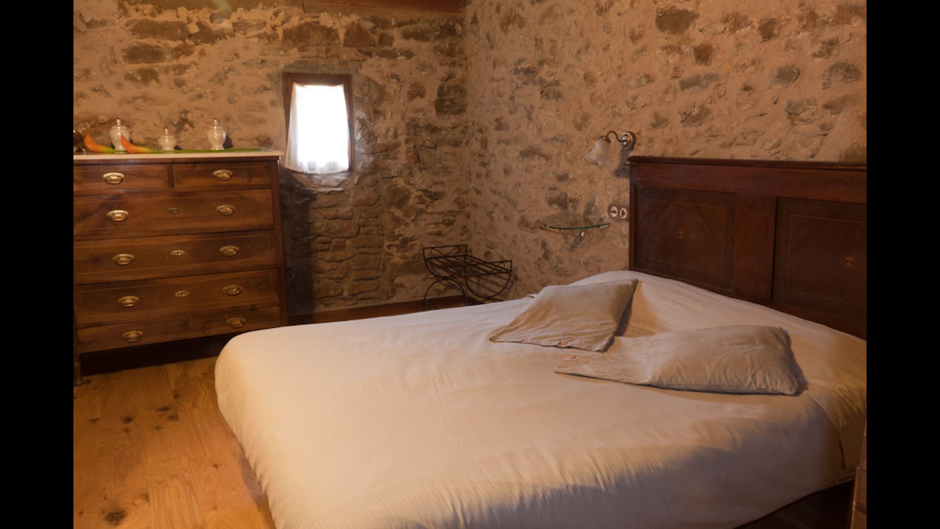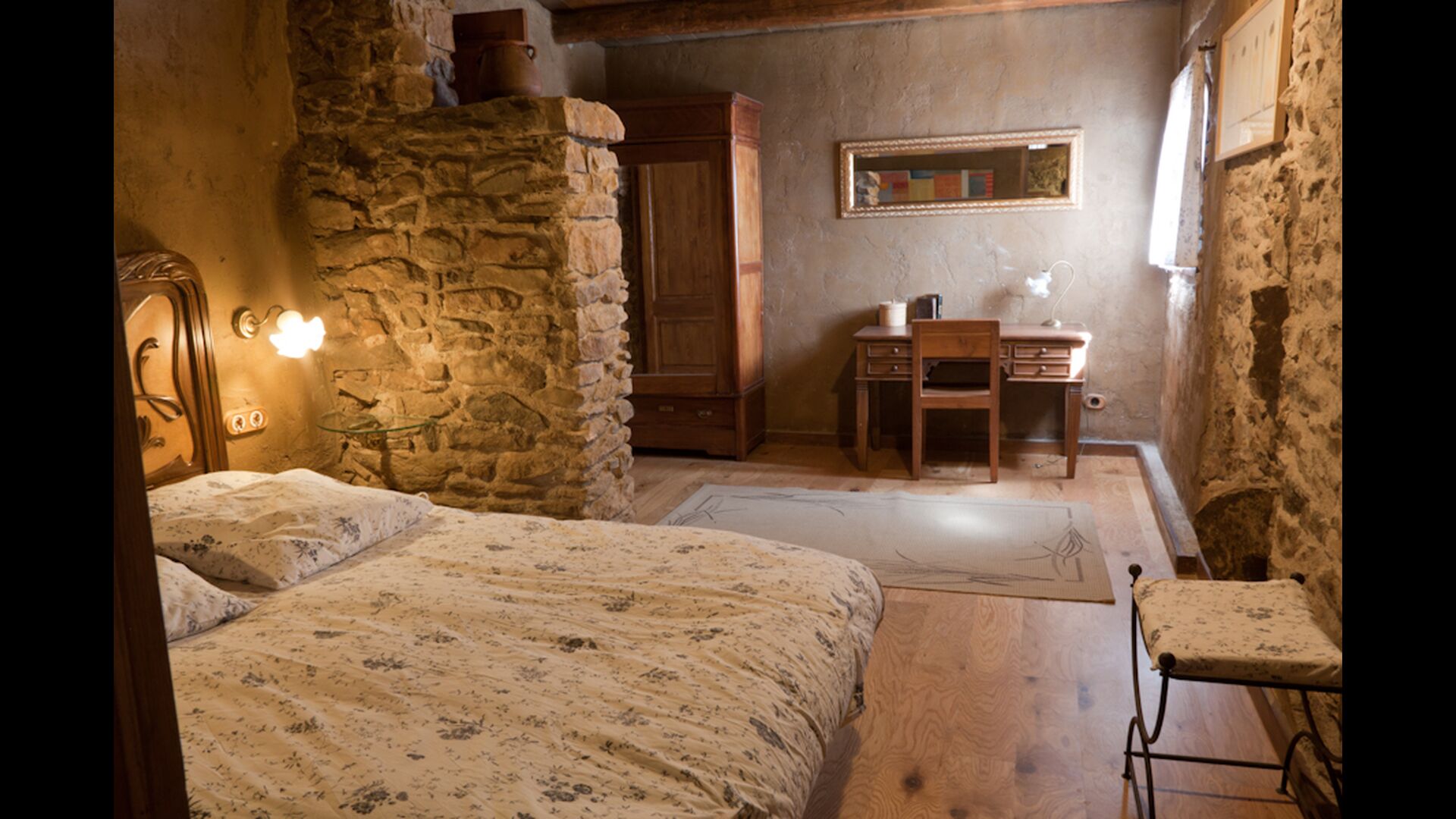 I denne lejlighed, Piso Balcona, til 8 personer, er der 4 rummelige og flot udsmykkede dobbeltværelser, hvoraf tre af værelserne er med dobbeltsenge og et er med to enkeltsenge. Alle værelserne har deres eget en suite badeværelse. Endvidere er denne lejlighed delt op i to planer. Generelt er den meget autentisk indrettet, og det ses tydeligt, at der har været respekt for de gamle detaljer og originale materialer under indretningen. Gennemgående for værelserne er, at der er højt til loftet, hvilket giver, sammen med den uberørte natur, en stor følelse af frihed og dermed rum til at slappe af i. Der er en stor stue med lækre sofaer og en stor spisestue med flot catalansk spisebord. Ydermere er der et køkken, hvor man kan finde de nødvendige køkkenredskaber. Det mest fantastiske ved denne lejlighed er dog næsten den betagende udsigt, man kan opleve fra 1. sals private terrasse. Her kan der, specielt i aftentimerne, opleves en fantastisk ro, som er helt unik for bjergene.
