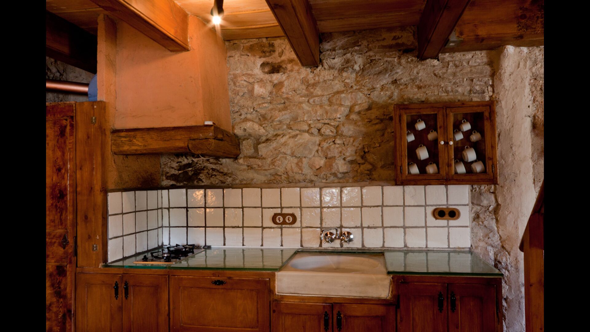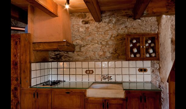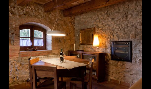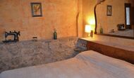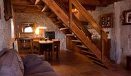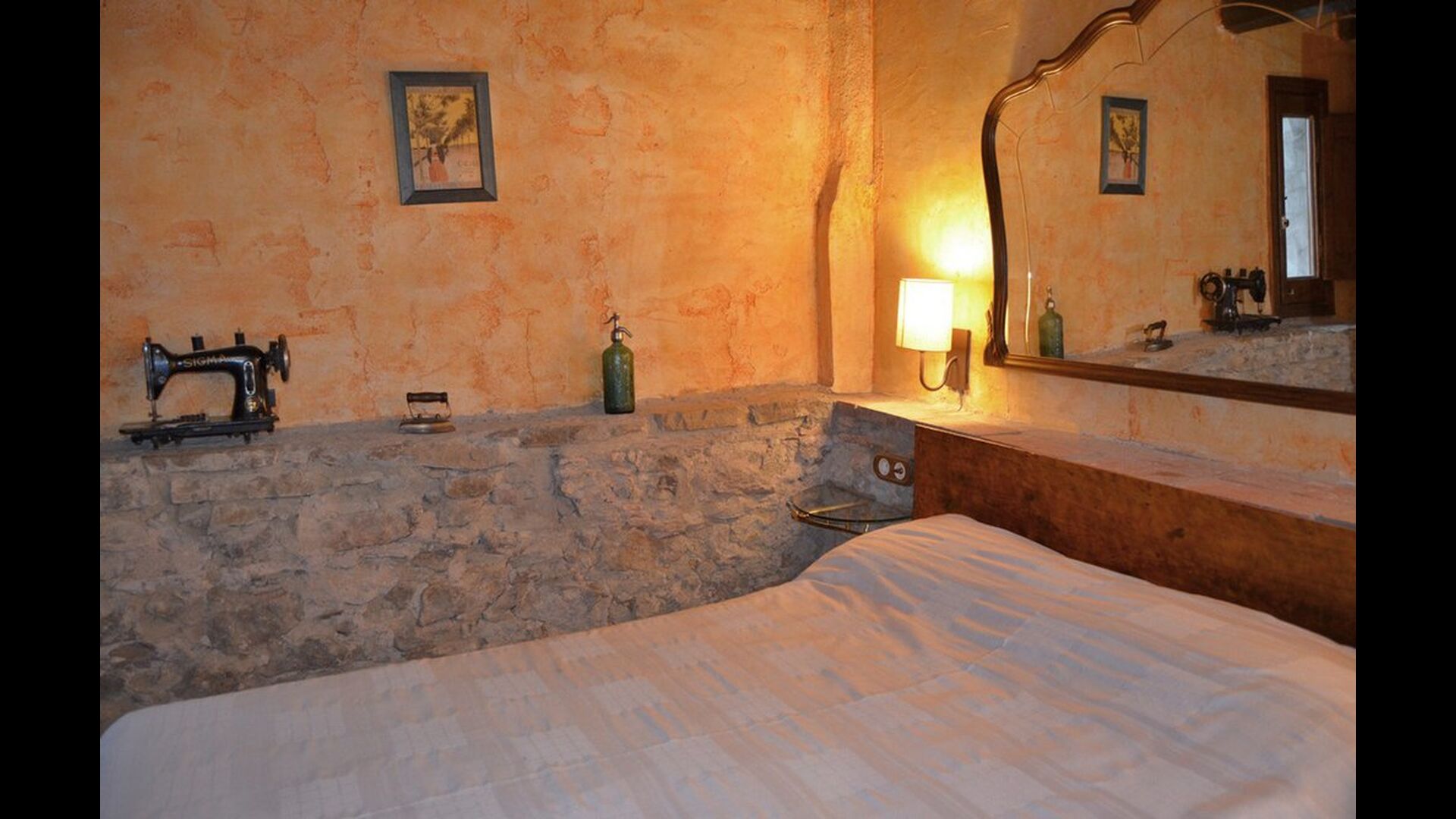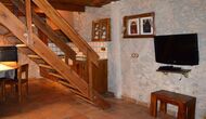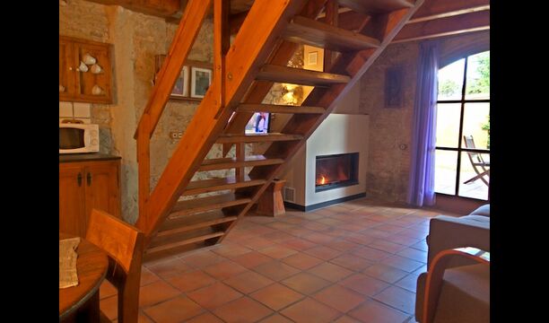 Denne lejlighed er ydermere 90 m2stor. Gennemgående for den er, at den er indrettet meget autentisk med stor respekt for de originale materialer og strukturer. Det giver, sammen med en masse landlige smådetaljer, en ægte catalansk stemning. Lejligheden har et fint køkken med ovn, komfur, opvaskemaskine og lignende redskaber. Der er også en vaskemaskine. Endvidere er der et mindre loungeområde med en blød sofa og TV. I samme rum er der en trappe, som går op til lejlighedens 2. etage, hvor to rummelige og flot dekorerede soveværelser befinder sig.