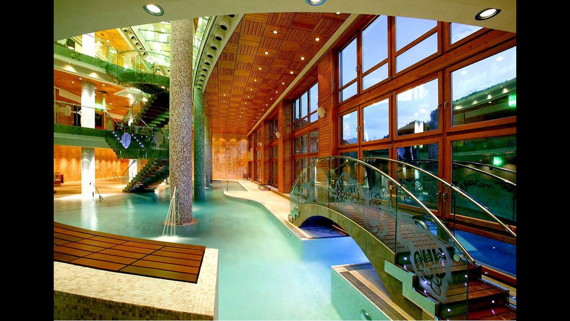 Der er to delte faciliteter, som specielt træder tydeligt frem. For det første er der den vidunderlige pool på hele 40 m2, hvorfra der er en fantastisk udsigt udover bjergene og skoven. For det andet er der et helt specielt spa/wellness-område, der indeholder følgende: