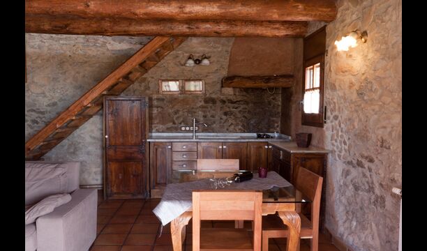 I denne lejlighed, Piso Reful, er der plads plads til to personer, hvortil der er én dobbeltseng, hvilket er et perfekt udgangspunkt for et par. Der er til dette et moderne badeværelse. Lejligheden har en størrelse på 60 m2. Generelt set er den indrettet meget autentisk og traditionelt catalansk, hvor man har haft stor respekt for de originale materialer og strukturer. Dette vil give, sammen med den fantastiske placering af huset, en god og romantisk stemning. Endvidere er der et flot køkken, hvor man har gjort meget ud af at holde det traditionelt catalansk. Her er der bl.a. komfur, opvaskemaskine og vaskemaskine. I samme rum er der en blød sofa, hvorfra man kan se TV og der er en pejs. Ovenpå er der et rummeligt soveværelse med en fin dobbeltseng. Udenfor har i en terrasse ved siden af lejligheden ved siden af. Her kan der læses en bog eller bare slappes af i skyggen, hvis det er for varmt. Dog er det bedste ved lejligheden næsten den betagende udsigt, som der er. Heroppe i bjergene er der en helt speciel ro og fred, som er helt unik for huse i bjergene.
