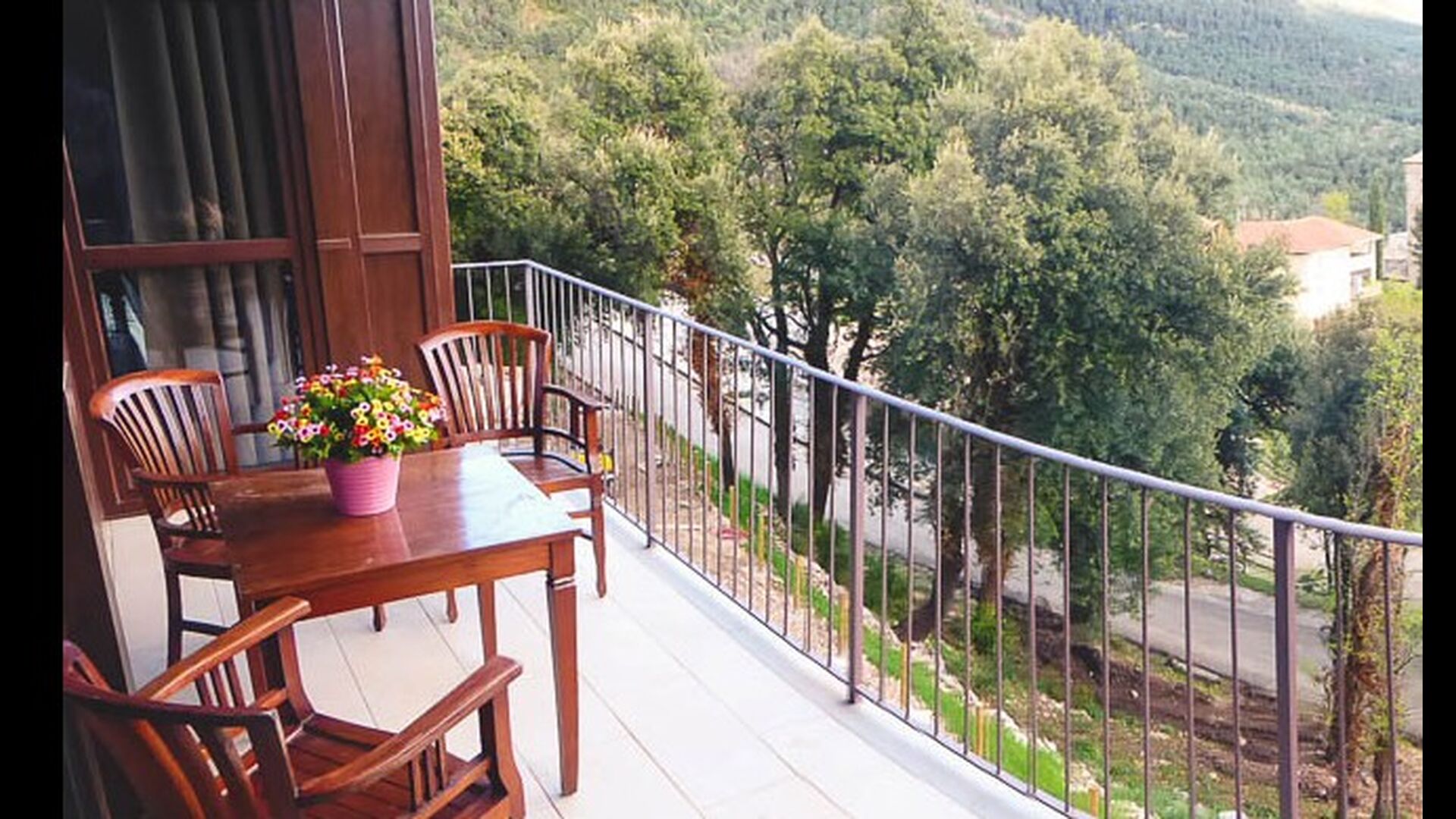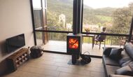 I stueetagen ligger den hyggelige stue, der har store panoramavinduer, som giver et fantastisk lys og en endnu smukkere udsigt. Køkkenet er veludstyret med bl.a. fryser, køleskab, komfur, ovn, mikroovn, vaskemaskine osv. Balconada har desuden en hyggelig terrasse med bord og stole, hvorfra man kan nyde udsigten over byen.