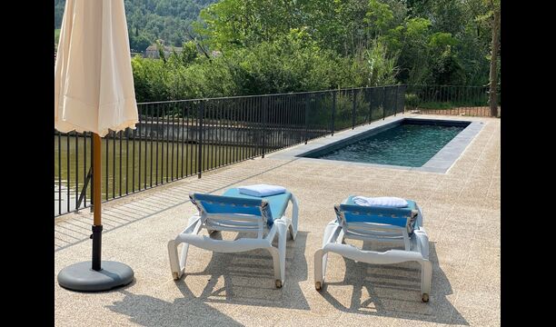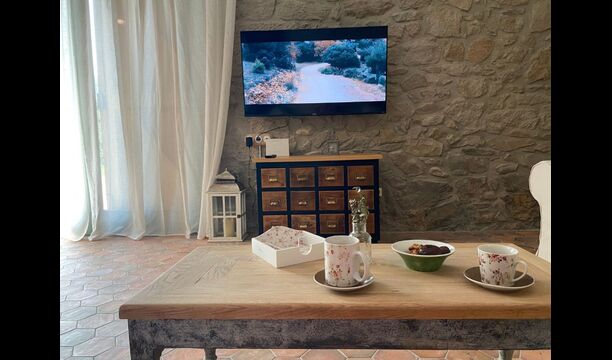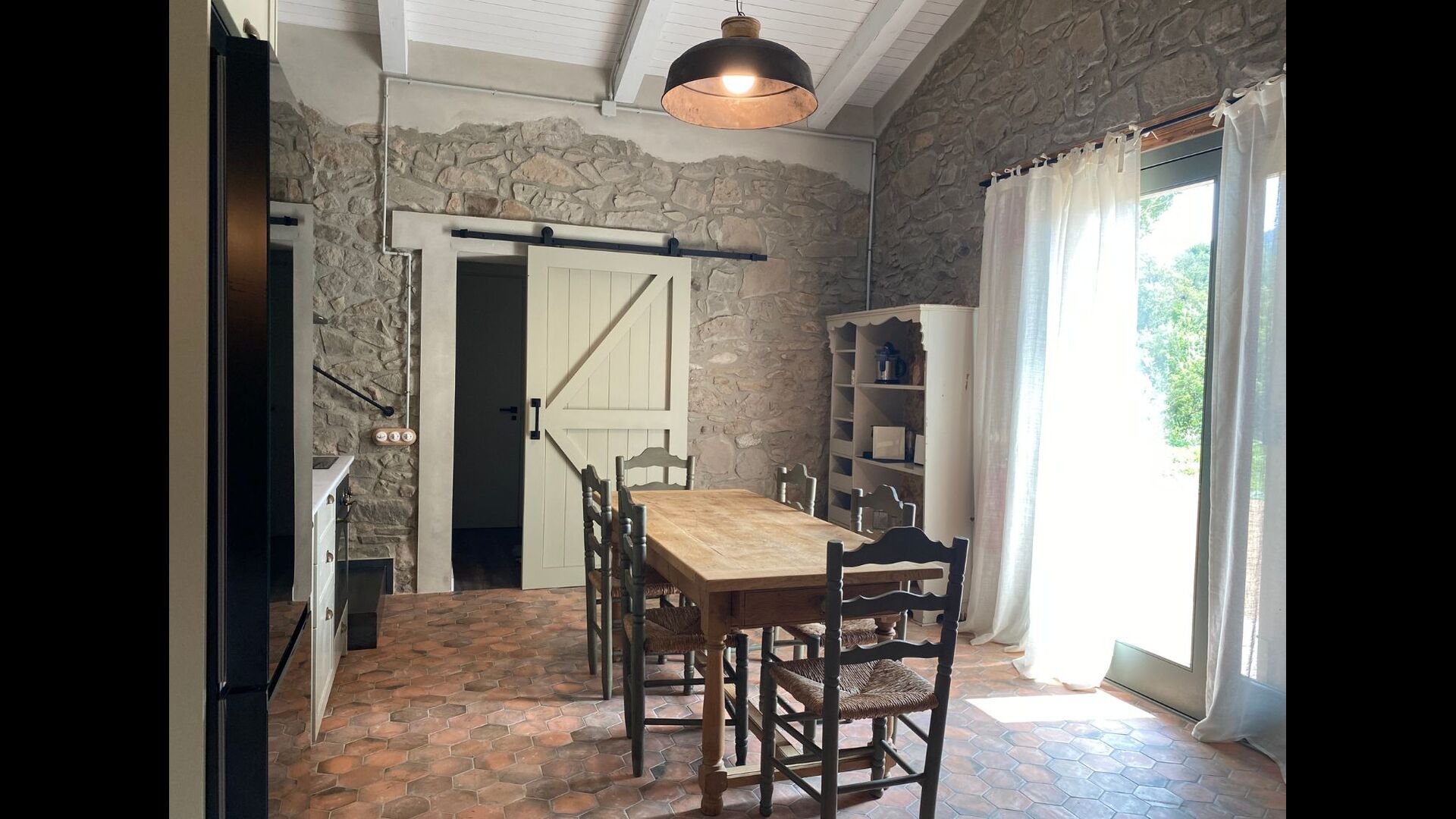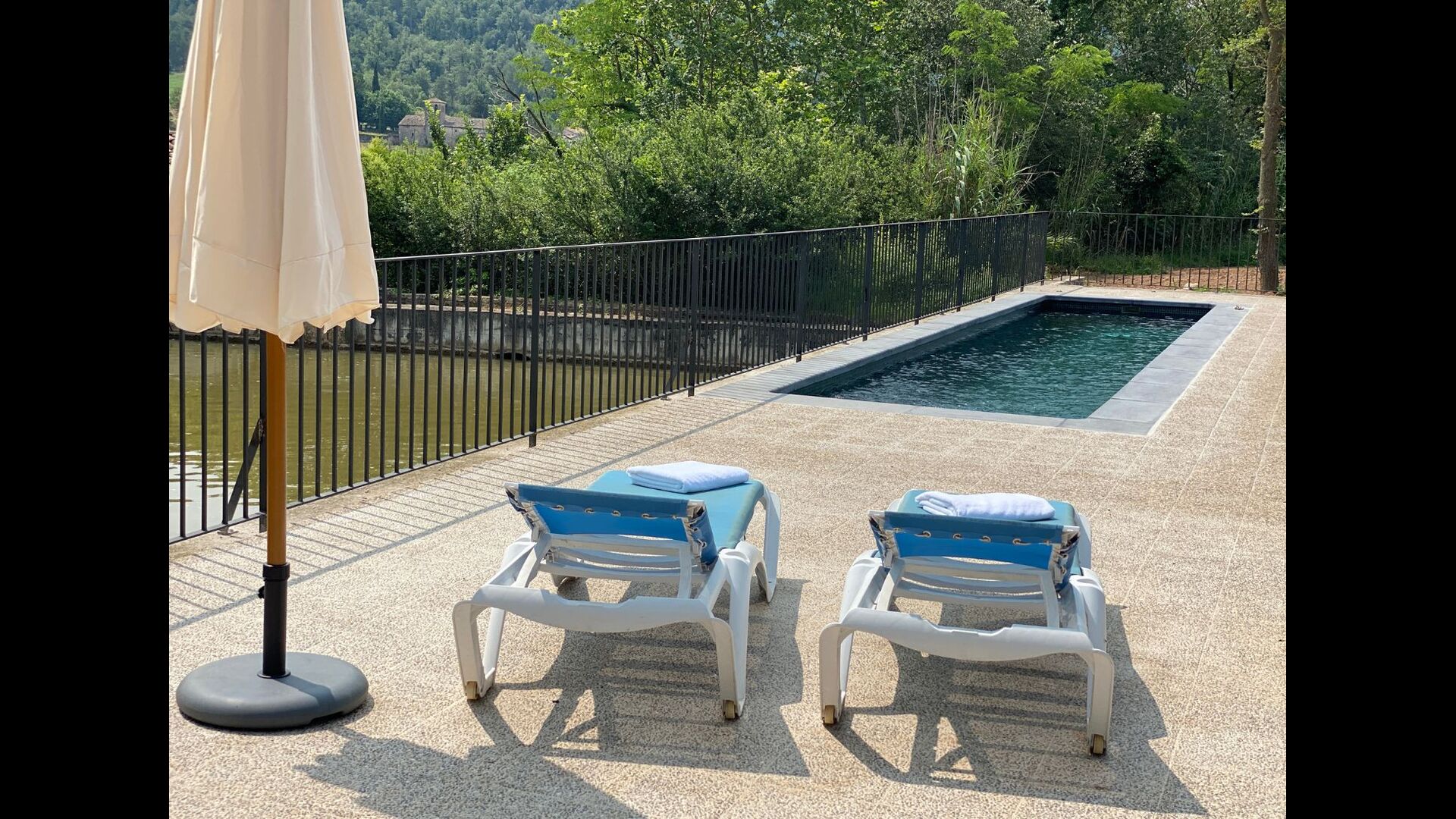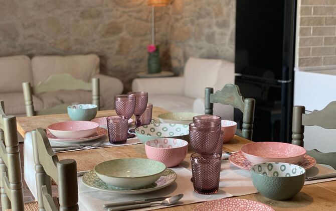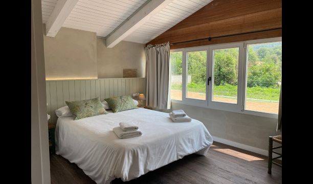Ferieboligen ligger midt i en fredelig dal. Omgivet af naturressourcer fuld af liv, såsom åen, der krydser foran haven eller den lille dam et niveau lavere end poolen, gør dette hus til et smukt sted at slappe af sammen med udsigt til vandspejlet.