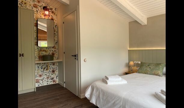 I stueetagen ligger køkken, stue med pejs og spisestue. Et soveværelse med dobbeltseng med badeværelse egnet til kørestol er også placeret i stueetagen. Huset har en første sal, hvor der er yderligere et dobbeltværelse med badeværelse.