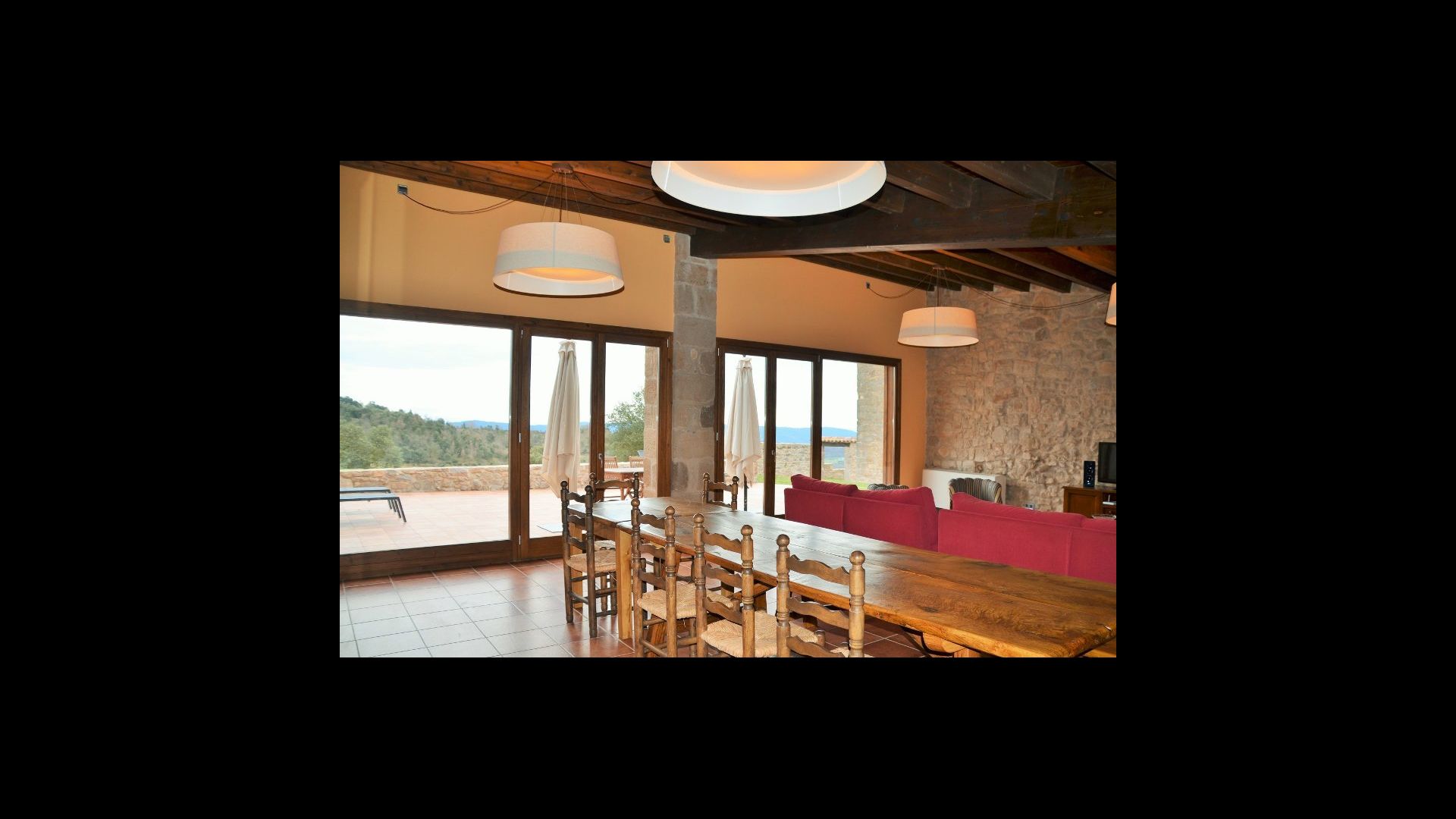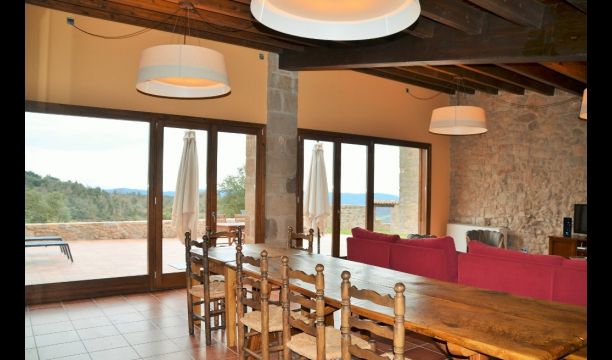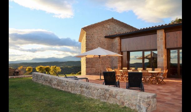 I Central Catalonien på en bakketop finder i den helt ny restaureret feriebolig Can de Mateo-Porxo, der har plads til 11+4 gæster. Huset helt store attraktion er beliggenheden. Her har man mulighed for at nyde en 360 graders udsigt over det catalanske landskab og det hele bliver rammet ind af Pre-Pyrenæerne, der rejser sig i baggrunden. Vi repræsenterer rigtig mange feriebolig i denne region, der alle har en fantastisk udsigt – Men Can de Mateo slår alt hidtil.