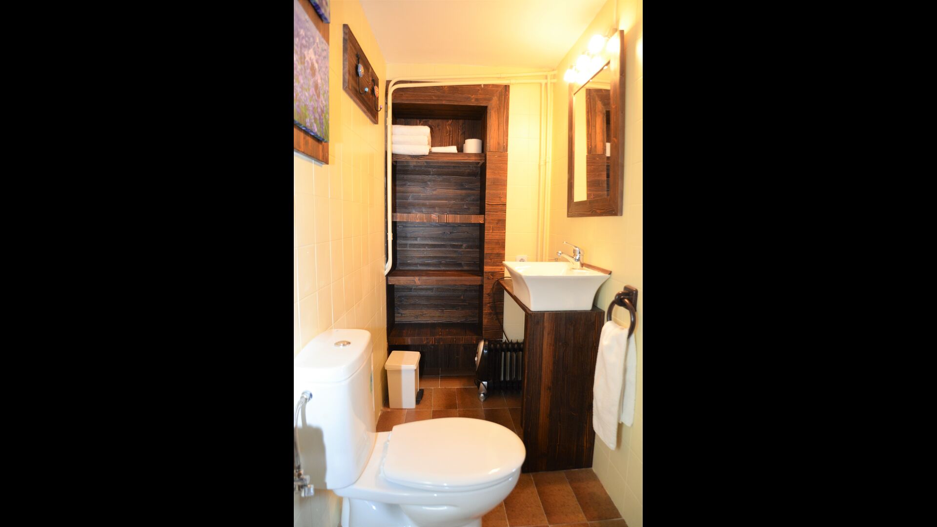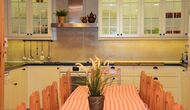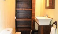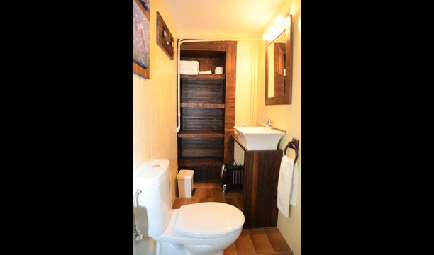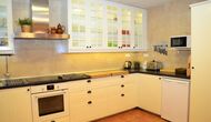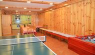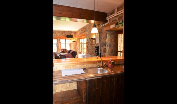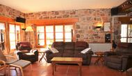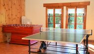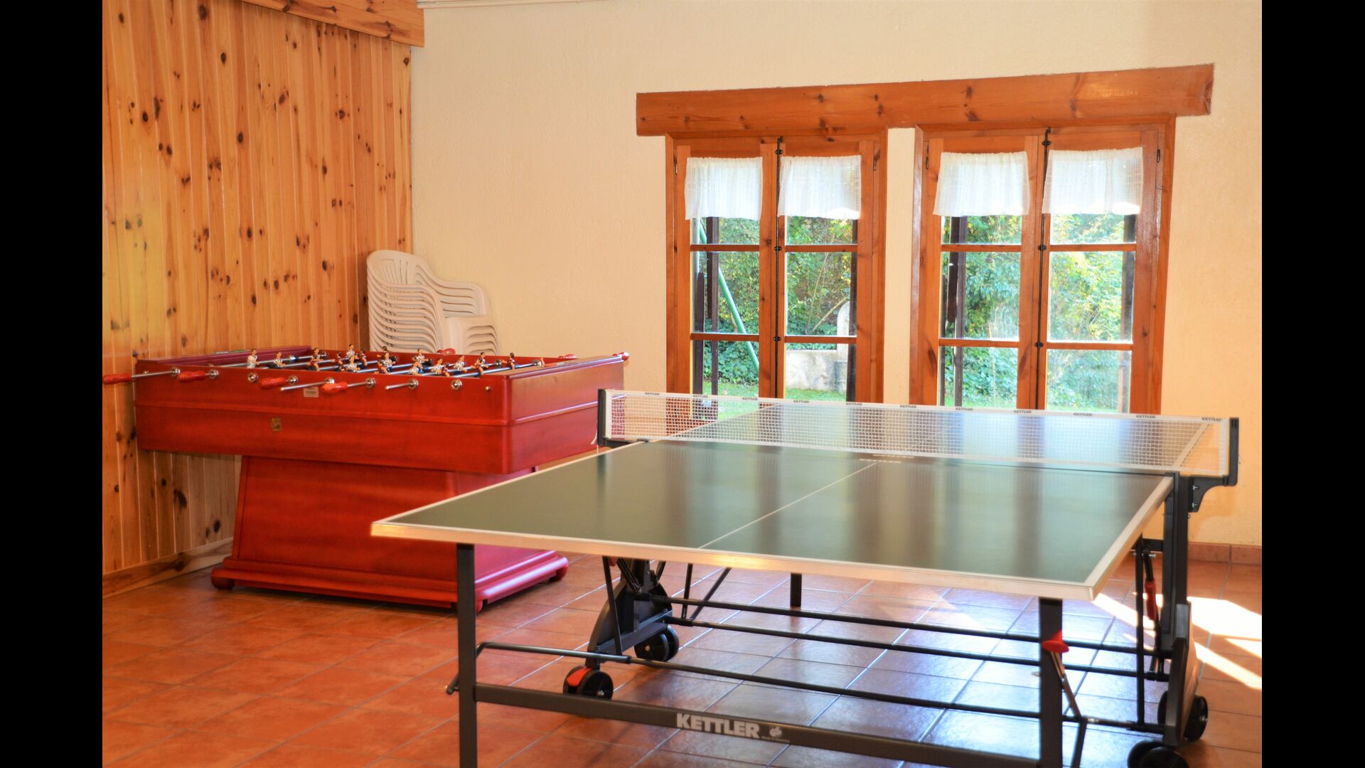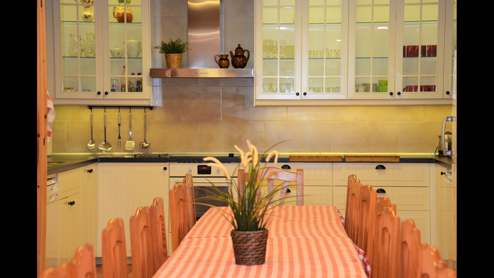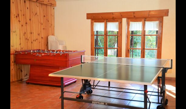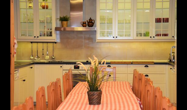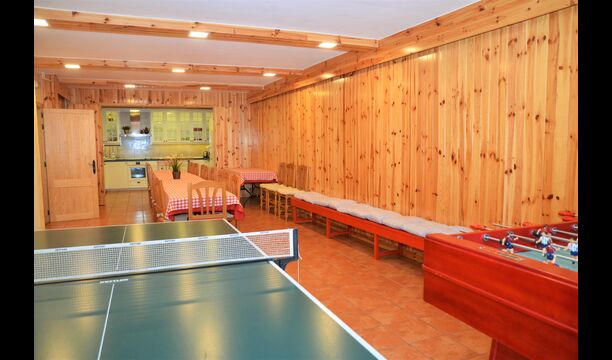 I husets stueetage ligger de hyggelige fællesrum. Det store køkken alrum er veludstyret, med alt hvad man skulle få brug for bl.a. et stort køleskab, fryser, komfur, dobbelt-brødrister, kedel, vaskemaskine og en opvaskemaskine. Der er også et stort spisebord i det åbne køkken til fælles spisning. Ved udgangen af det store køkkenalrum kan man underholdes med et spil bordtennis eller bordfodbold. I det næste rum er den store stue med komfortable sofaer og stole. Det er også udstyret med en stort fladskærm. Der er også en bar med to store køleskabe. Så der er godt med plads til mad og drikkevarer, der skal opbevares køligt. Der er også et badeværelse i stueetagen, så du ikke behøver at gå ovenpå.