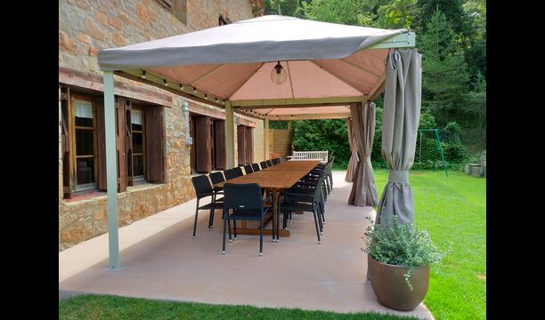 Can De Xiques mange udendørs faciliteter er utroligt luksuriøse og perfekt til de varme solrige dage i Catalonien. Den store pool er placeret nede foran huset og er indhegnet for børns sikkerhed. Der er en dyb ende og en lav ende, hvor små børn kan lege. Og med den fantastiske udsigt, som kigger over de Catalanske bjerge, forestiller vi os, at det meste af tiden vil blive tilbragt hernede. Oppe foran huset ligger en stor grøn have - også med en fabelagtig udsigt. Flere små borde med stole er placeret i haven. Der er også et stort bord (ikke vist på billederne), hvor udendørs måltider kan nydes i løbet af dagen. Den fantastiske udsigt, den smukke natur og den autentiske feriebolig skaber en idyllisk, smuk og aflappende atmosfære. De venlige ejere af huset bor bag ferieboligen. De vil sikre, at I har 100% privatliv også på de udendørs arealer. Men hvis du skulle have behov for noget, vil de meget gerne hjælpe.