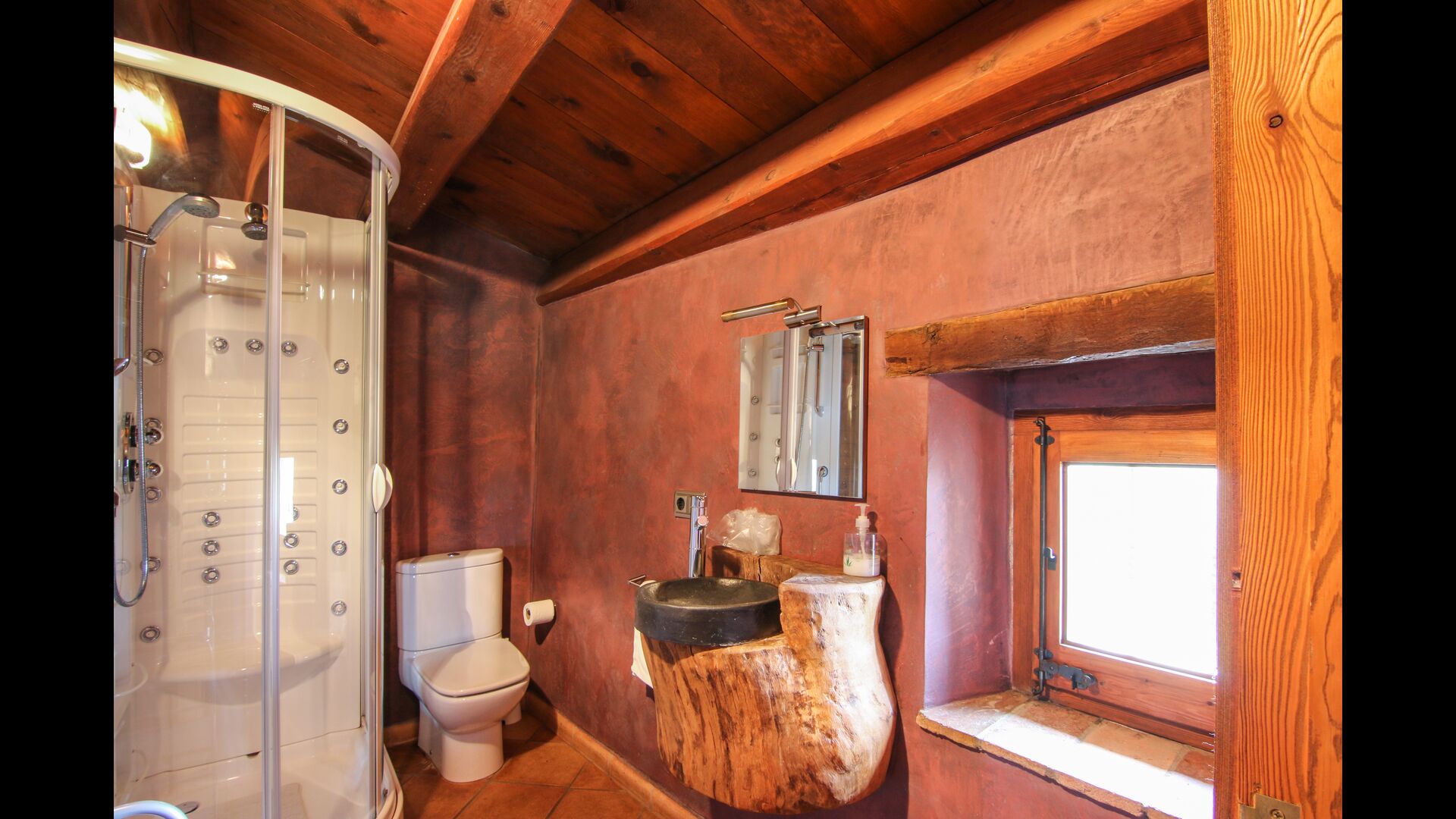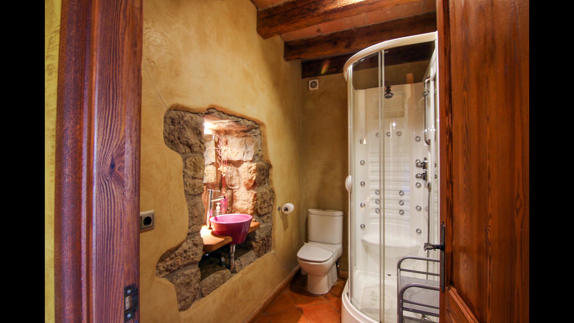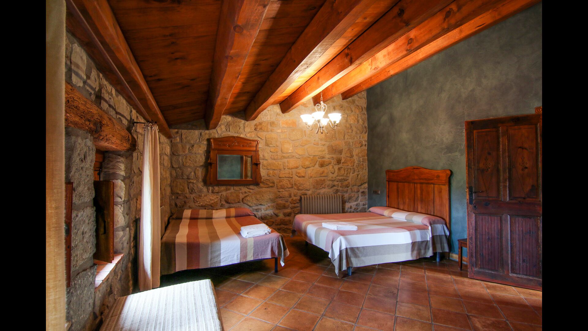 Casa Alberdas helt store plus er dets kvaliteter indendørs. Der er 7 soveværelser fordelt på et 1 enkeltværelse, 4 dobbeltværelser og 2 tripleværelser. Til alle soveværelserne er der en suite badeværelser, som alle har såkaldte hydro massage kabiner. Badeværelserne er ligesom soveværelserne rummeligt og stilfuldt indrettet med et twist af catalansk landstil. Endvidere er alle håndvaskene i huset lavet i hånden.