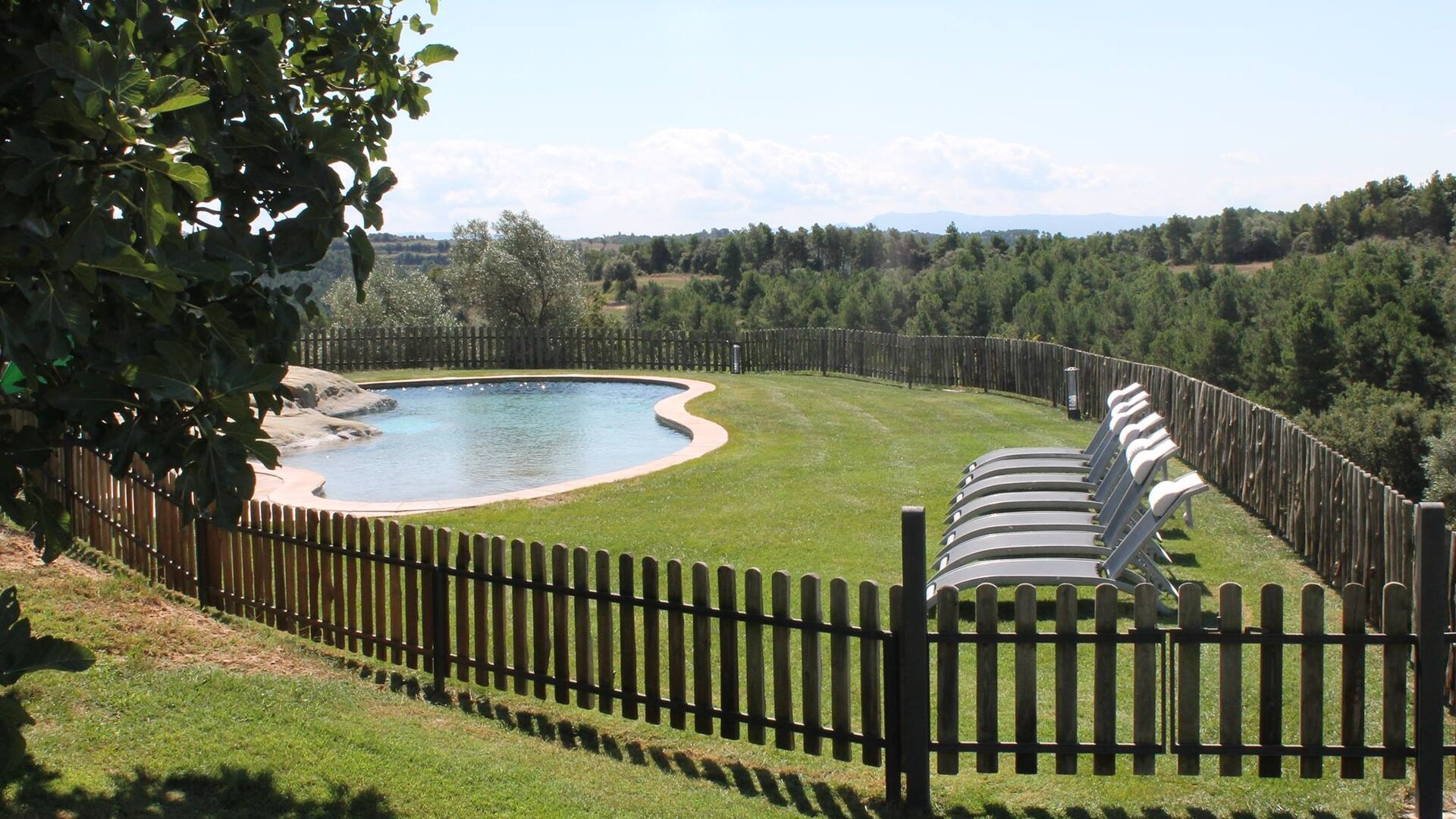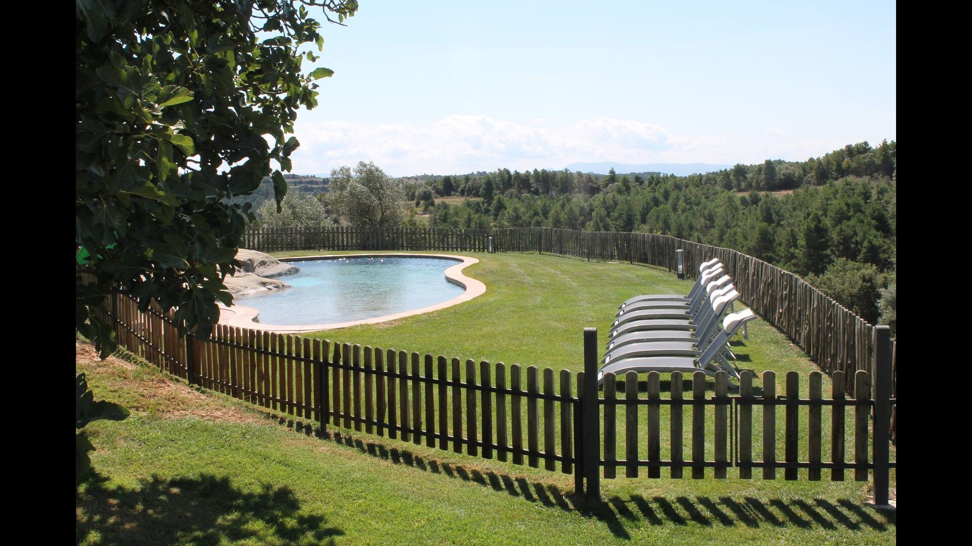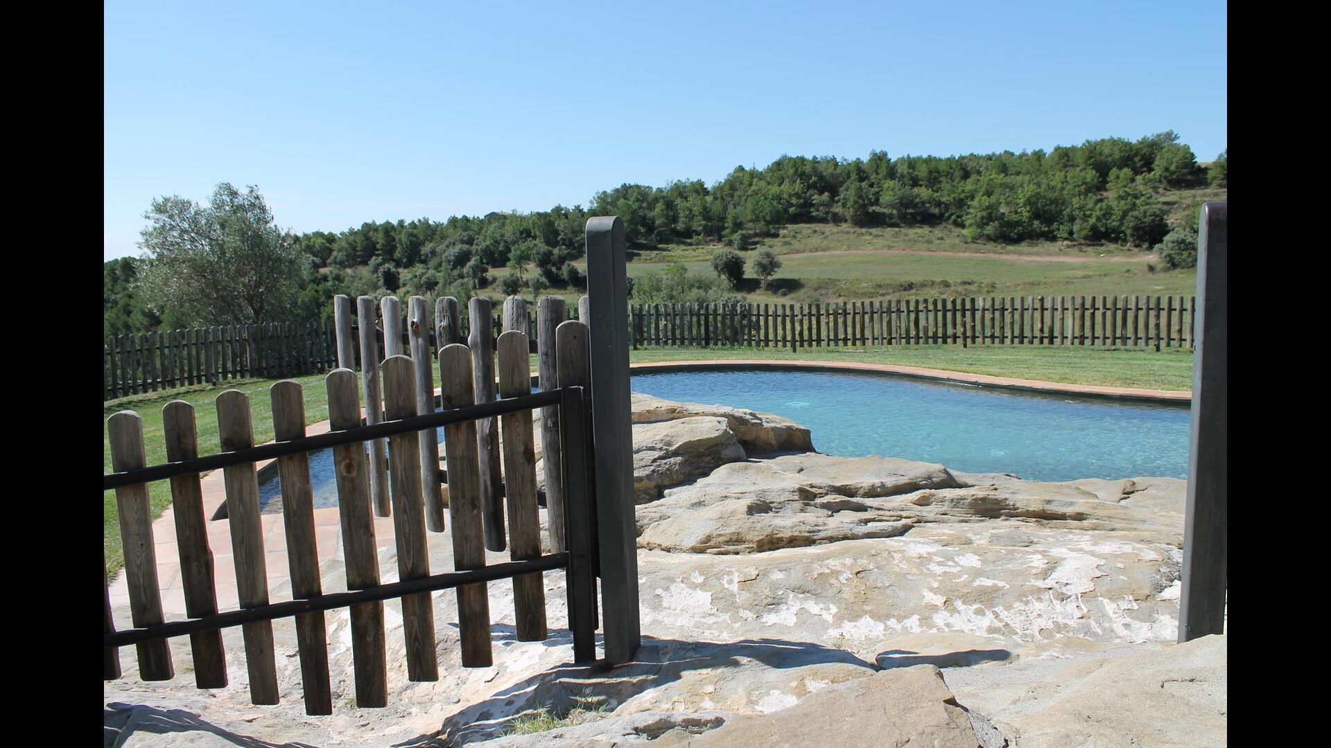 Den store og meget velplejede have rummer mange forskellige aktiviteter. Noget, som der med garanti vil blive et stort hit blandt børnene, er den 48 m2 store swimmingpool. I stedet for den normale firkantede form, er kanterne bølgede. Det helt unikke er den sten, som poolen er bygget op om, og som rager ind i poolen: Her er der i midten et lille spa-område. Ved siden af denne unikke pool er der liggestole, hvorfra den catalanske varme kan nydes for fuld udblæsning. Og når det bliver for varmt, tager det kun få sekunder at hoppe ned i det afkølende vand. Poolområdet er indhegnet.