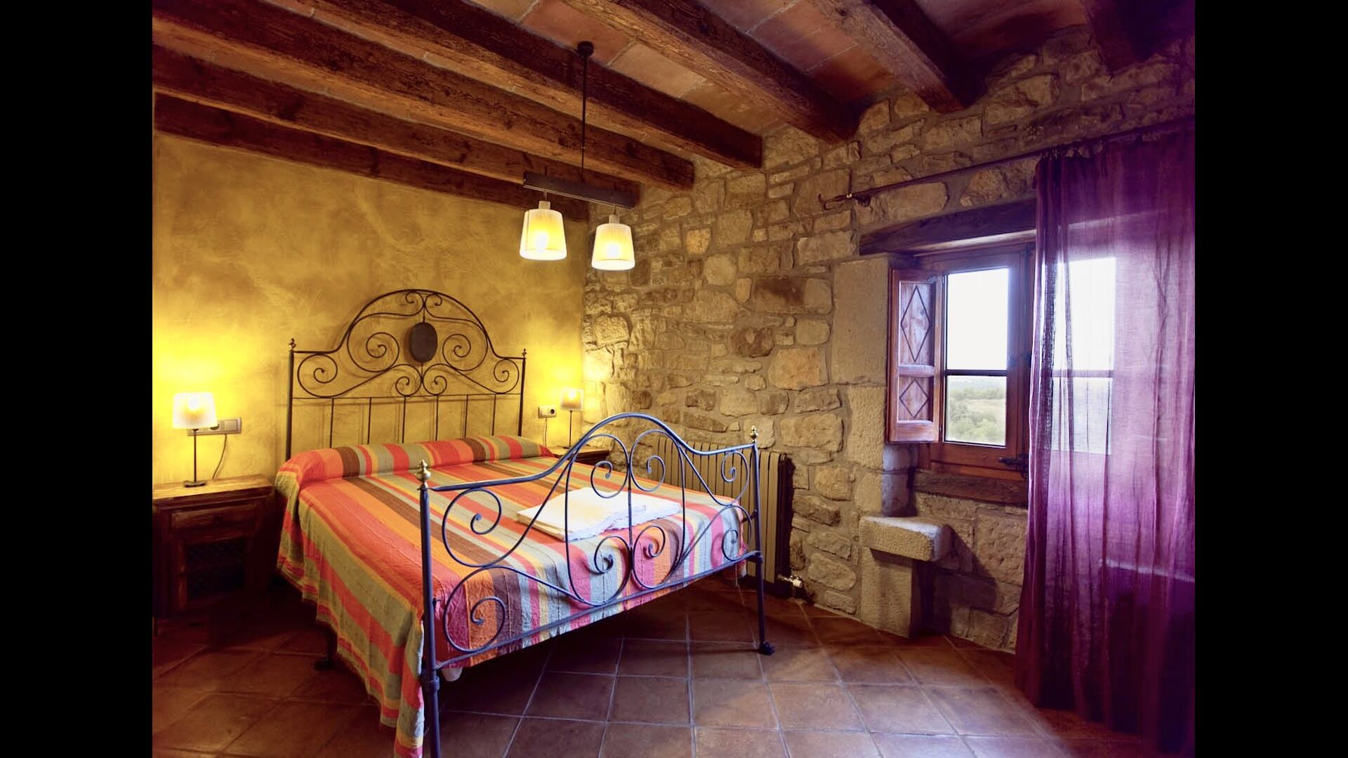 Midt i det bakkede landskab i Catalonien ligger der en betagende ferieperle: Casa Alberda Et ægte catalansk landhus af ualmindelig høj standard. Det passer perfekt til flere familier, da der er plads til hele 15 personer - fordelt på 7 rummelige og flotte værelser, som alle har en suite badeværelse med hydro-massage kabiner. Endvidere er der swimmingpool med spa, tennisbane og mange andre lækre faciliteter.