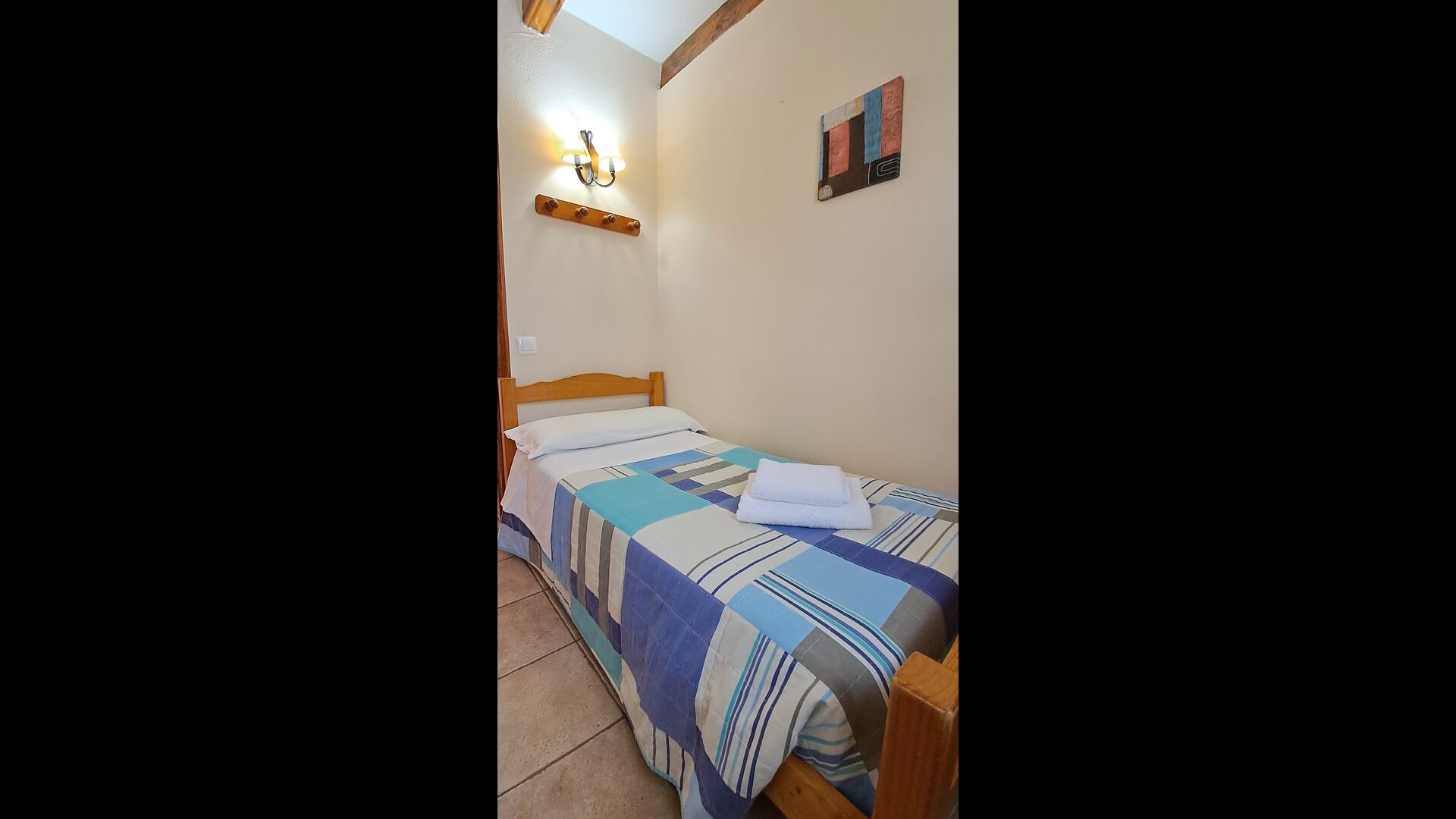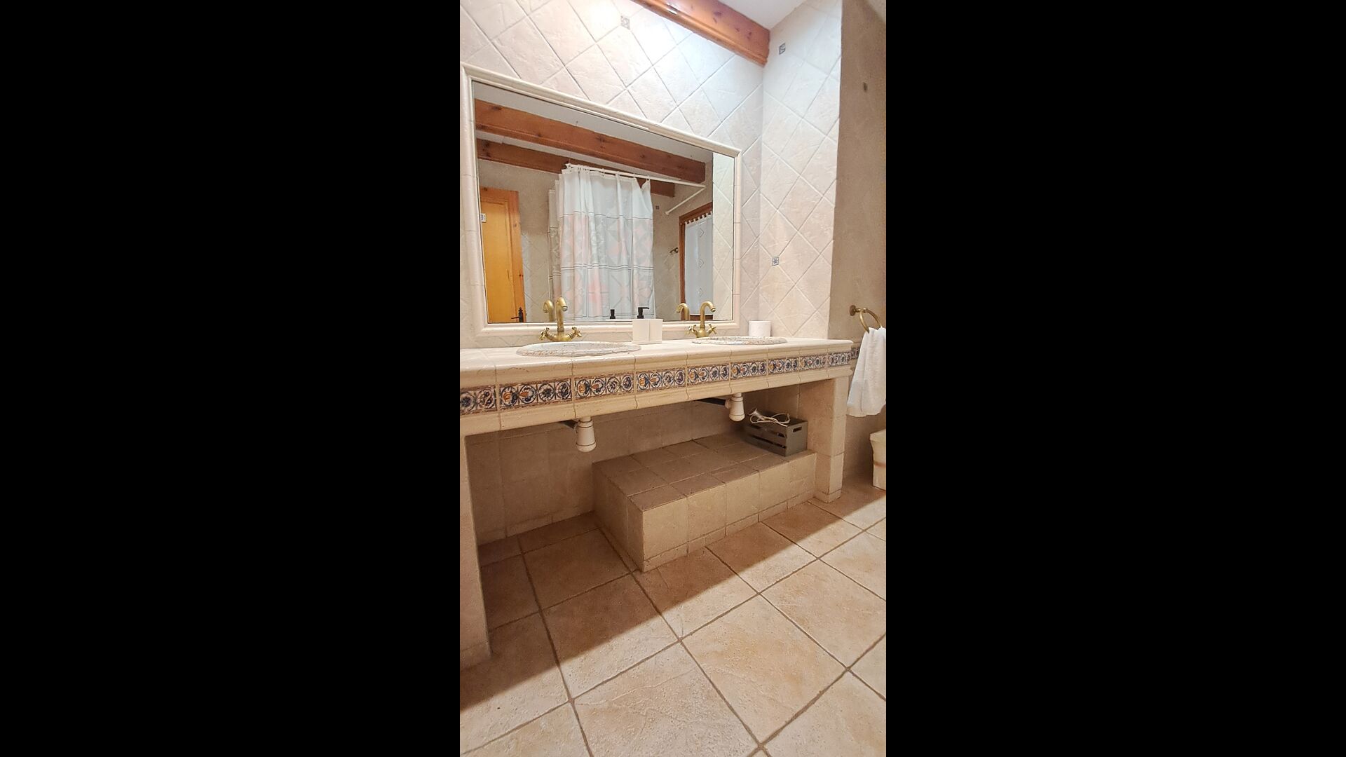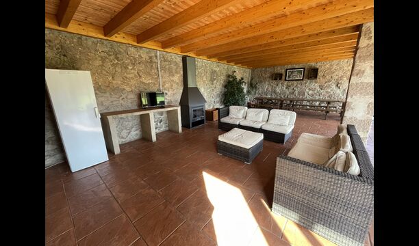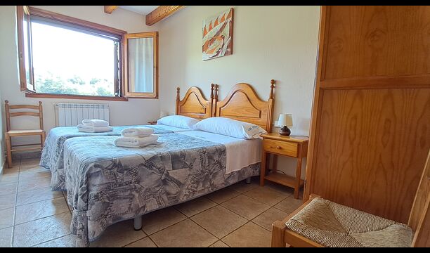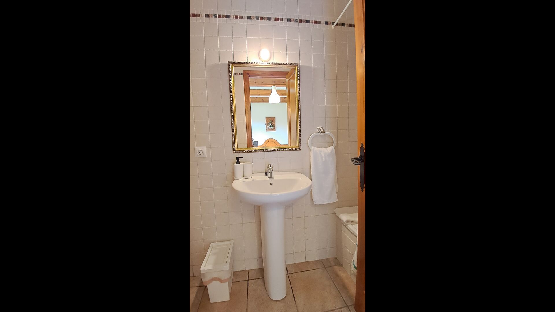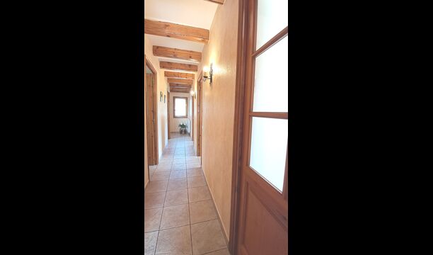 Når man træder ind af den meget flotte indgang af træ, mødes man af et stort rummeligt alrum. Her er der et hyggeligt hjørne med bløde sofaer, og bagved er der et stort og bredt spisebord, hvor i kan nyde jeres måltider. Ved siden af alrummet ligger det autentiske køkken, hvor i har alle nødvendige remedier - blandt andet er der opvaskemaskine, vaskemaskine, mikroovn og mange andre ting. Køkkenet er super hyggeligt, og ejeren har lagt stort arbejde i det. Fra det førnævnte alrum går der en trappe op til første sal, hvor husets soveværelser ligger: Der er i alt 7 værelser, hvoraf 1 er et enkeltværelse og 6 er dobbeltværelser. Flere af sengene kan rykkes fra hinanden, så i selv kan tilpasse værelserne. Alle værelserne er af høj kvalitet og er meget rummelige. To af soveværelserne har en kæmpe fælles balkon med stole, hvor solnedgangen kan nydes om aftenen. Fra det ene soveværelse kan man faktisk se solnedgangen direkte fra sengen. Der er endeligt 4 badeværelser i alt, hvoraf et er en suite. De er alle moderne og smukt dekorerede.