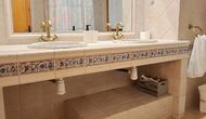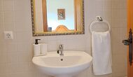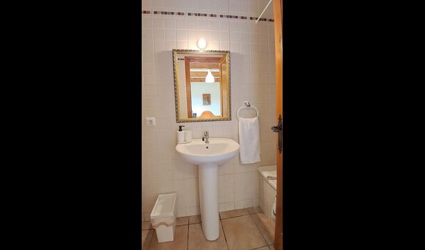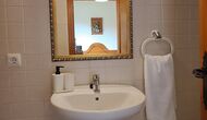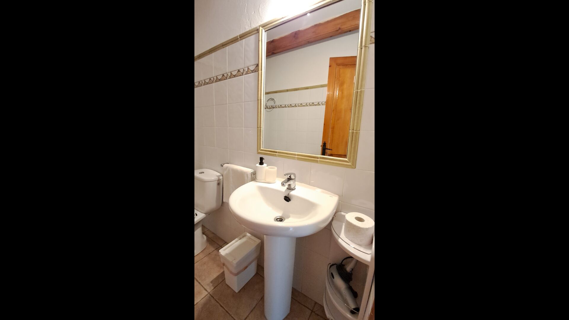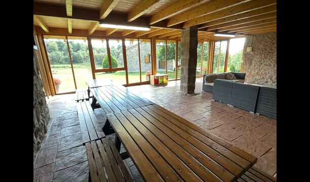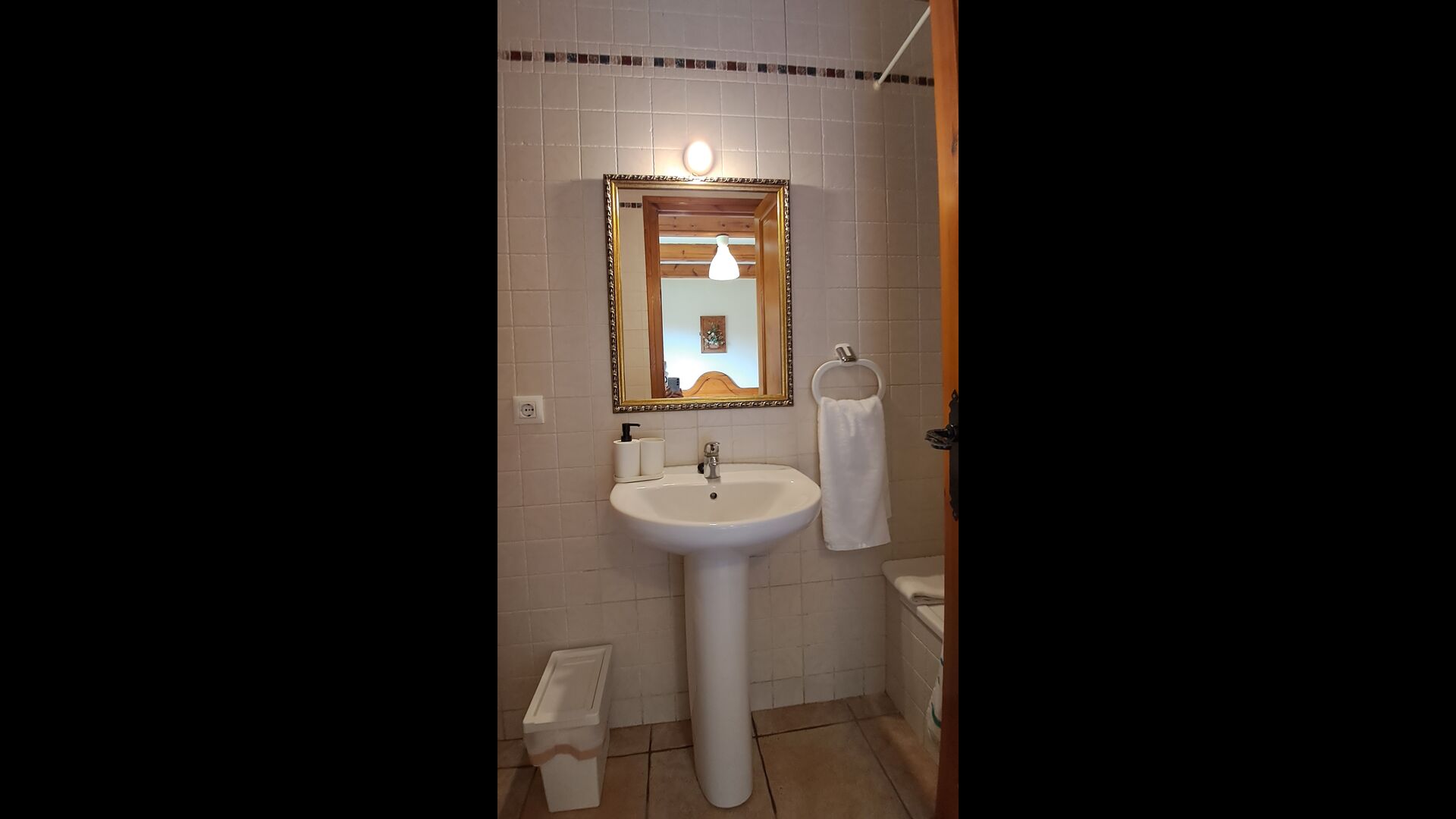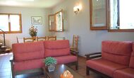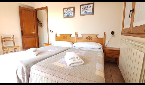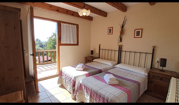 Når man træder ind af den meget flotte indgang af træ, mødes man af et stort rummeligt alrum. Her er der et hyggeligt hjørne med bløde sofaer, og bagved er der et stort og bredt spisebord, hvor i kan nyde jeres måltider. Ved siden af alrummet ligger det autentiske køkken, hvor i har alle nødvendige remedier - blandt andet er der opvaskemaskine, vaskemaskine, mikroovn og mange andre ting. Køkkenet er super hyggeligt, og ejeren har lagt stort arbejde i det. Fra det førnævnte alrum går der en trappe op til første sal, hvor husets soveværelser ligger: Der er i alt 7 værelser, hvoraf 1 er et enkeltværelse og 6 er dobbeltværelser. Flere af sengene kan rykkes fra hinanden, så i selv kan tilpasse værelserne. Alle værelserne er af høj kvalitet og er meget rummelige. To af soveværelserne har en kæmpe fælles balkon med stole, hvor solnedgangen kan nydes om aftenen. Fra det ene soveværelse kan man faktisk se solnedgangen direkte fra sengen. Der er endeligt 4 badeværelser i alt, hvoraf et er en suite. De er alle moderne og smukt dekorerede.