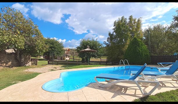 Husets højdepunkt, og et stensikkert hit blandt børnene, er swimmingpoolen. Med en størrelse på 32 m2 og med liggestole til alle gæster i huset omkring, er dette det perfekte sted til ultimativ afslapning. Her kan i nyde den catalanske sol for fuld udblæsning, og hvis det bliver for varmt, kan man tage en tur i det afkølende vand. Poolen ligger på toppen af en skrænt, og der er af sikkerhedsmæssige årsager placeret et hegn rundt om. Der er endvidere fra poolen en betagende udsigt over det catalanske landskab.