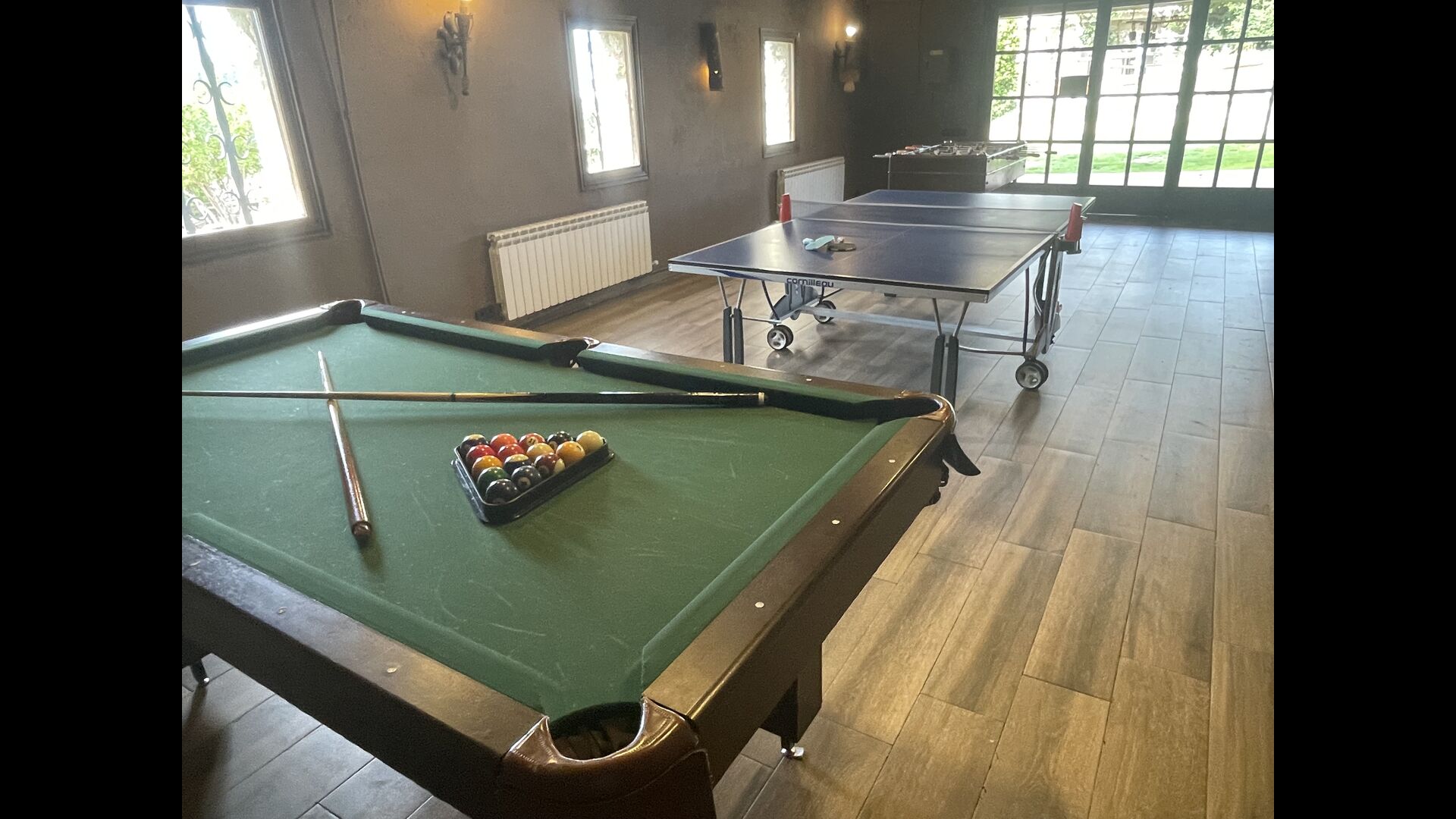 Ejendommen er et paradis for børn. Huset har enindhegnet swimmingpool, en indhegnet fodboldbane og en bygning med bordfodbold, billard og bordtennis. På første sal i denne bygning er der også en projektor og dvd, så du kan se film.