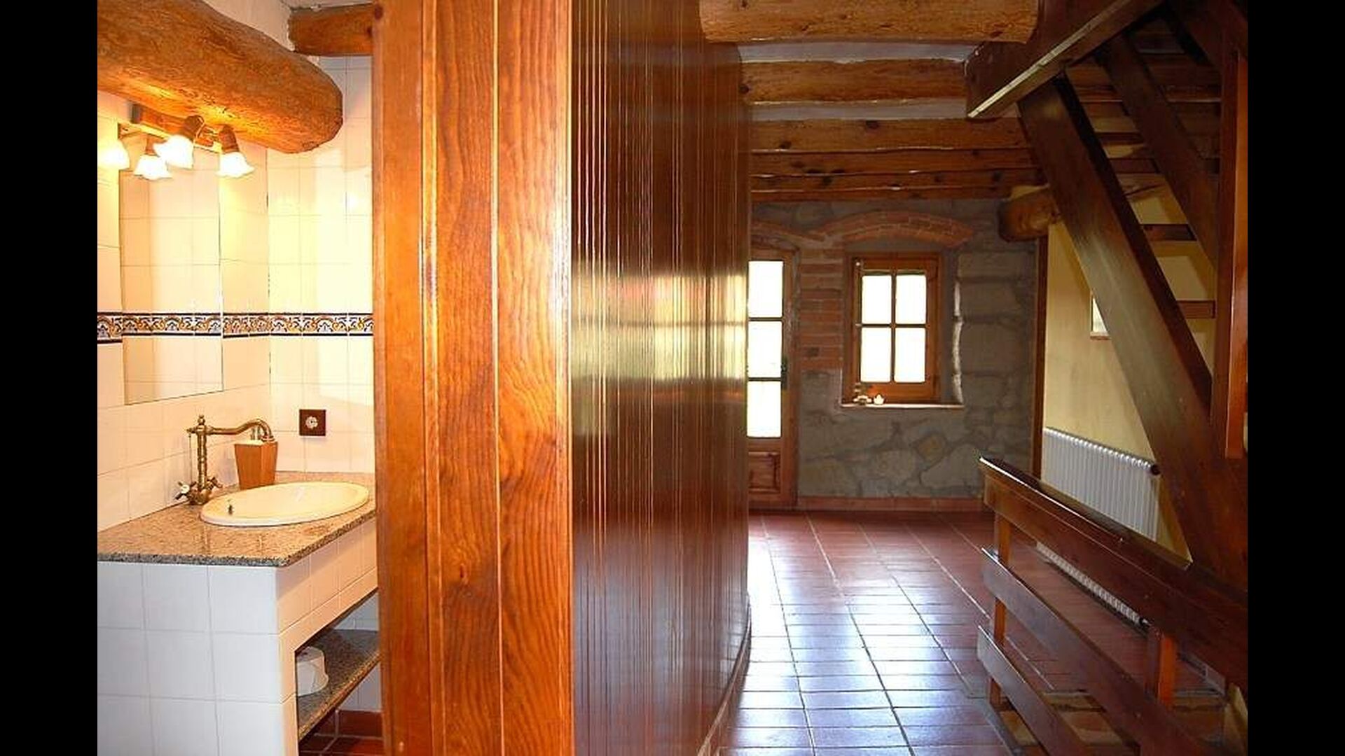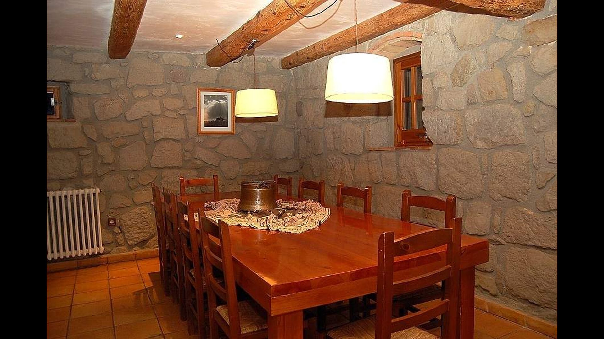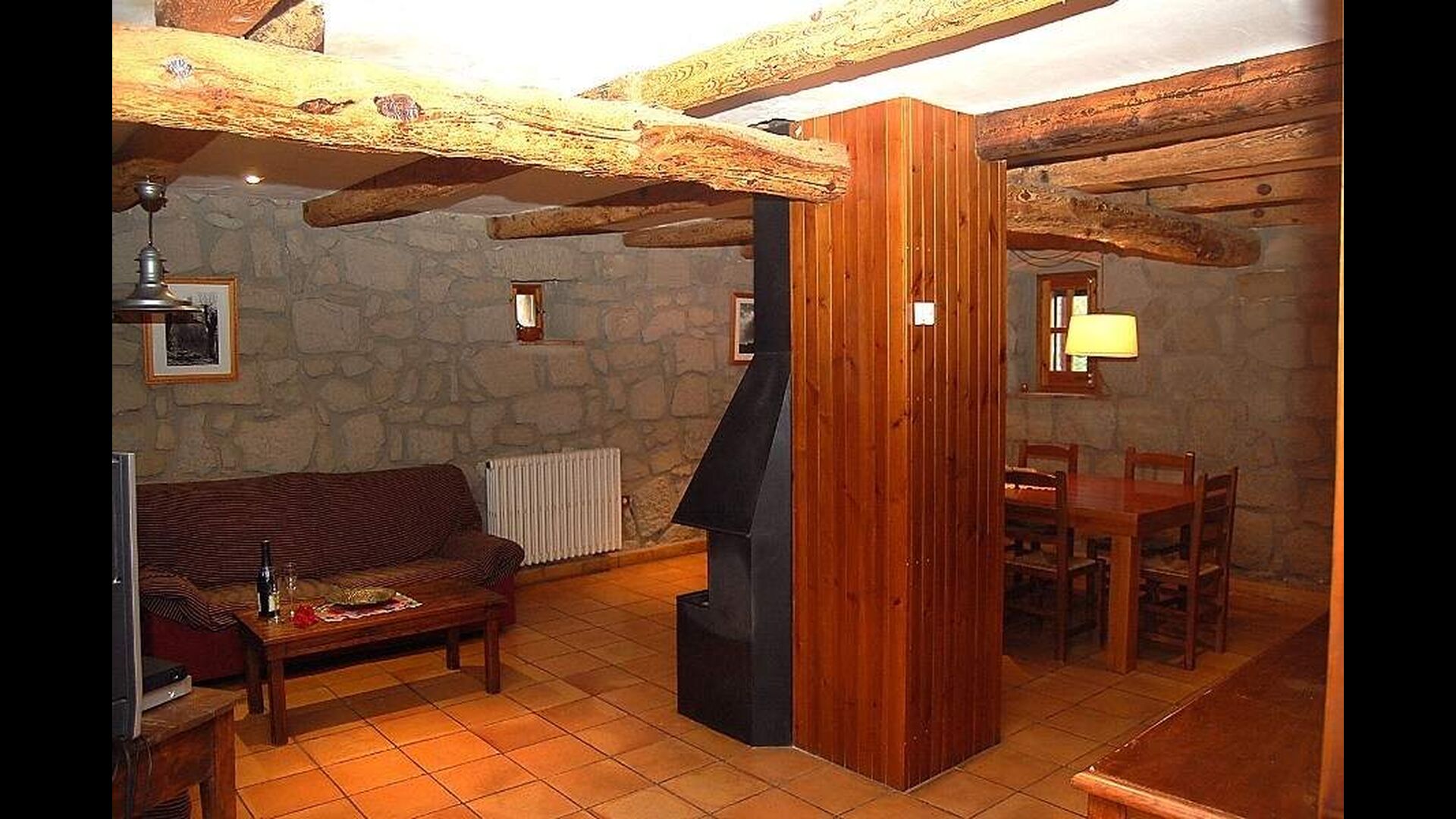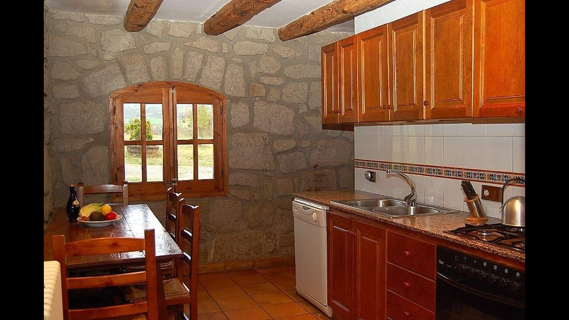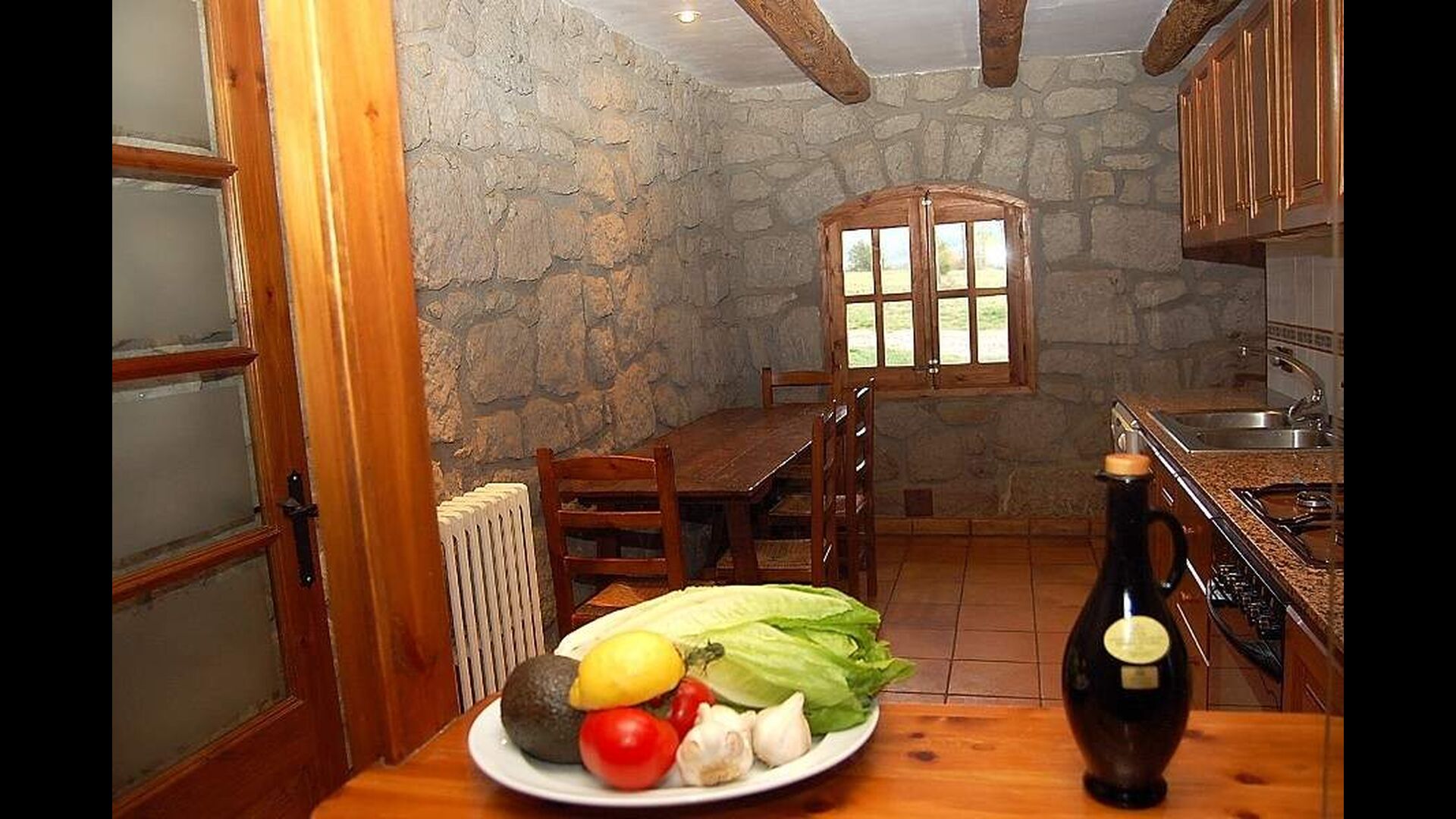 Noget af det bedste og mest fascinerende ved Casa Setas er dets autentiske stil - her er der virkelig kræset om detaljerne. Gennemgående for huset er dets oprindelige stenvægge og bjælker, der bærer huset. Bl.a. spisebordet er lavet rustikt træ. Huset har to etager: Stueetagen har et køkken med bl.a. opvaskemaskine, vaskemaskine, ovn og andre nødvendige redskaber. Der er endvidere en stor og rummelige stue med pejs, TV, spisebord og sofahjørne. Denne stue er meget unik i det den har en søjle af træ i midten - et levn fra den originale bygning. Der er også direkte udgang til terrassen.