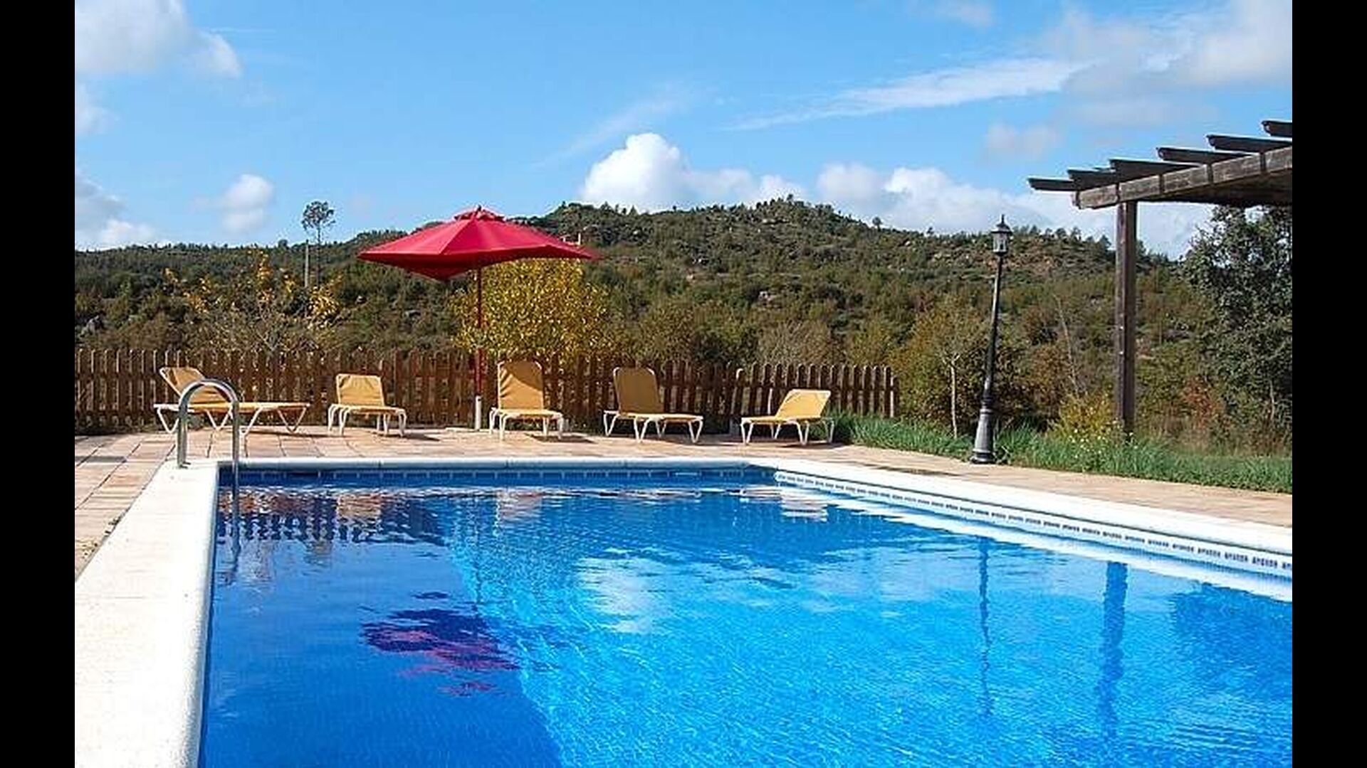 Villaen ligger omgivet af træklædte bakker og indhyller området i fred. Her kan i opleve en autentisk catalansk atmosfære, hvor afslapning bliver meget let. Der ligger kun få andre huse i nærheden. Dog er den nærmeste restaurant kun 5 km væk. Endvidere er der en fantastisk udsigt over bakkerne, som især kan nydes fra poolområdets liggestole.