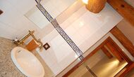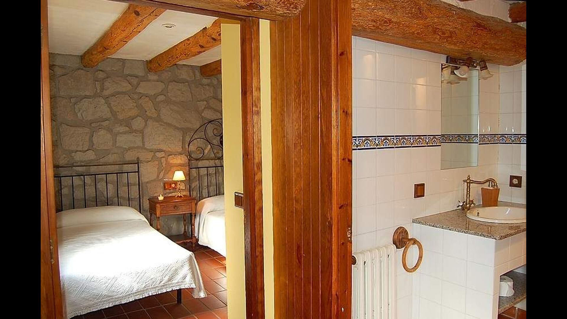 Hvis man går op ad trappen til første sal, bliver man mødt af 4 dobbeltværelser og 2 badeværelser. Værelserne er generelt meget rummelige og flot dekorerede. Der er i alt 4 enkeltsenge og 2 dobbeltværelser. Et af værelserne har en smuk lille balkon, hvorfra den fantastiske udsigt kan nydes. Specielt badeværelserne et smukt og klassisk indrettet.