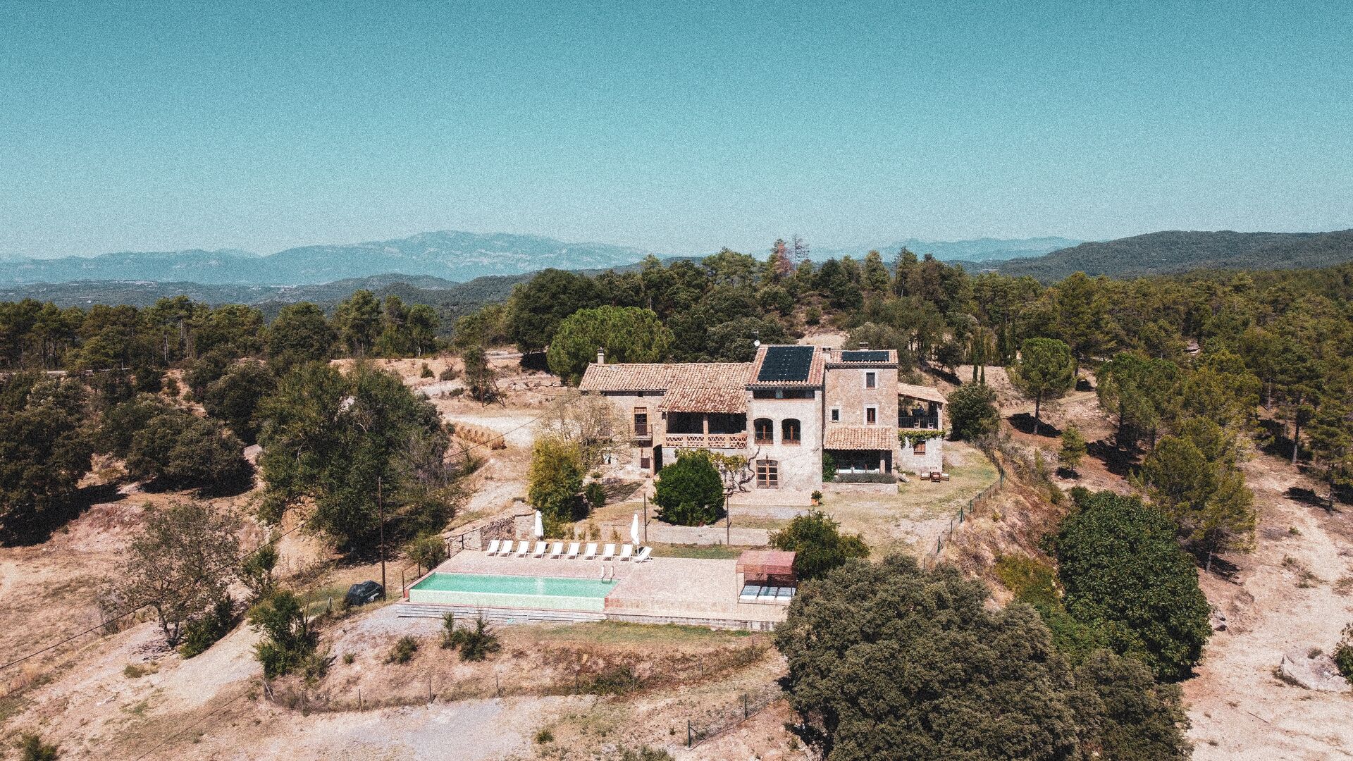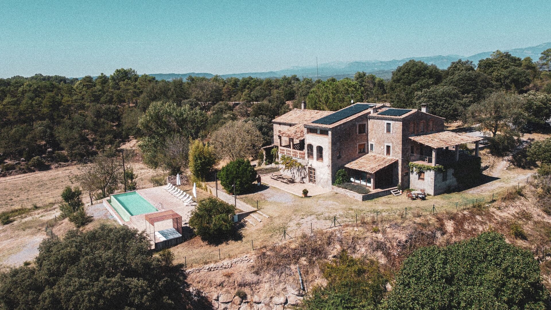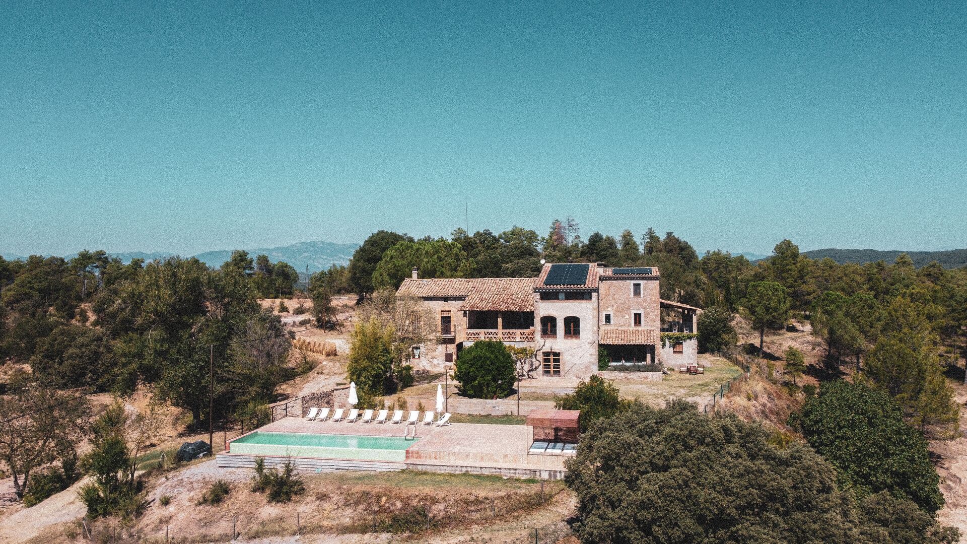 Det fantastiske poolområde med en 4 x 11 meter swimmingpool og behagelige liggestole, ligger foran huset. Poolområdet har en fantastisk udsigt over de berømte catalanske bjerge Montserrat (nogle hævder, at det er det uofficielle symbol på Catalonien). Vi kan forsikre dig om, at udsigten ved solnedgang, vil være et særligt smukt syn! I den store have er der også en fodboldbane og legeplads for de yngre børn.