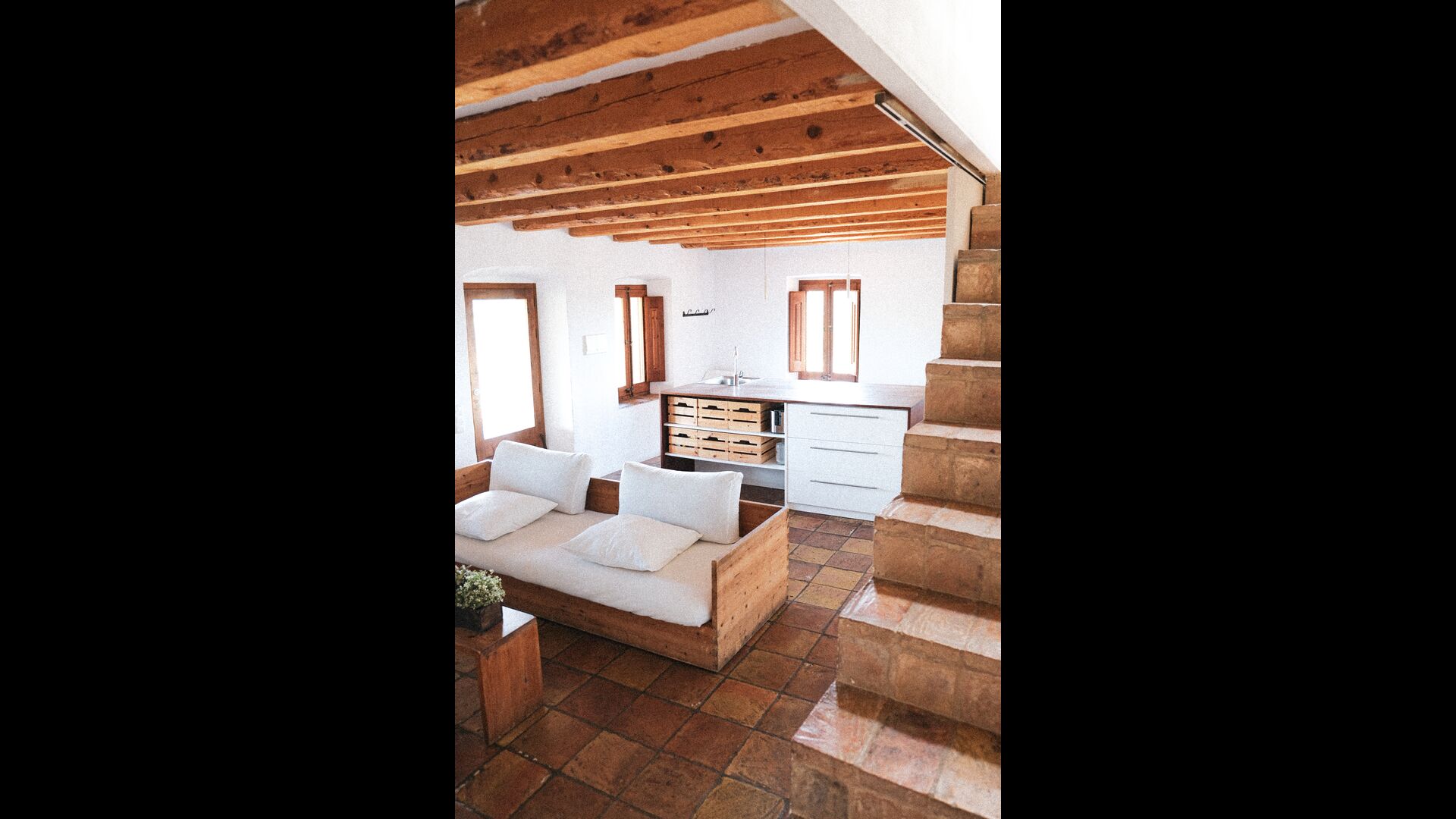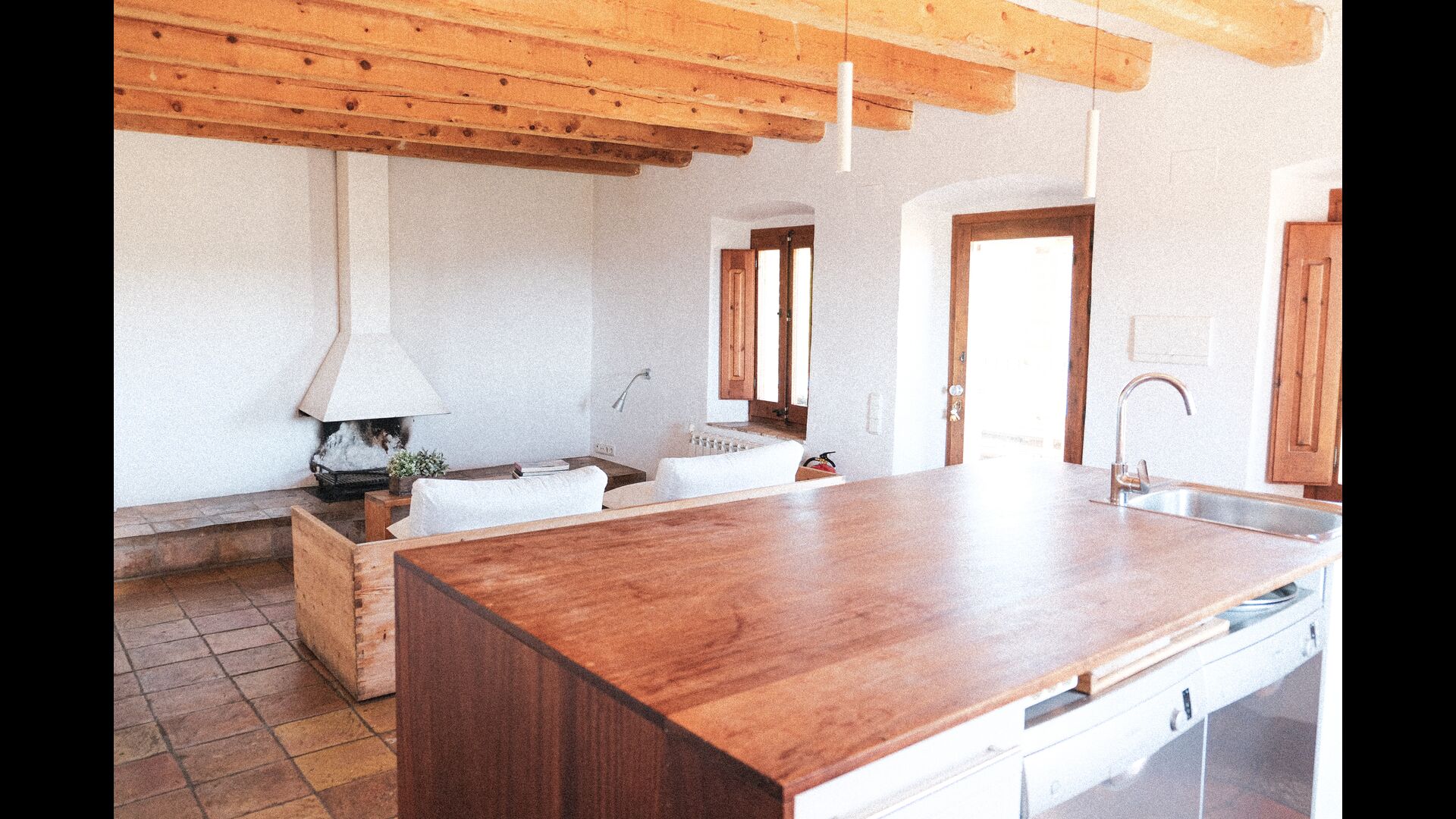 Casa Visal er et stort hus med tre etager. Hver etage har en fælles opholdsstue, alle moderne indrettet med lyse farver og med lyst træ. Huset har i al 8 badeværelser, hvoraf 5 er ensuite. Der er også to køkkener, hvoraf det ene ligger ved siden af den meget store tagterrasse med grill - meget praktisk til tilberedning af de udendørs måltider. Der er også to indendørs spisepladser; en af dem er stor nok til, at hele gruppen kan spise sammen. Begge køkkener er fuldt udstyrede og har mikrobølgeovn, opvaskemaskine og vaskemaskine. Der er også en kølig kælder til opbevaring af lækker vin og mad.