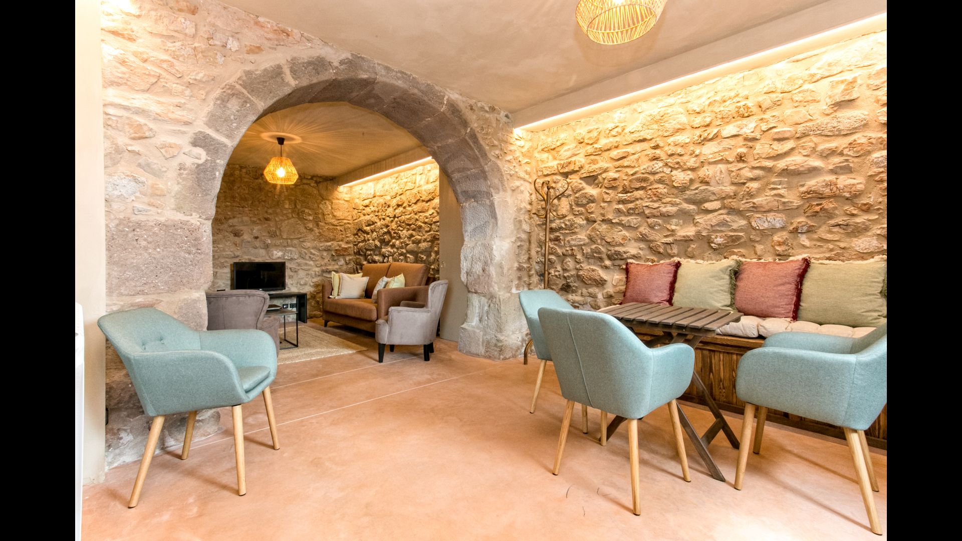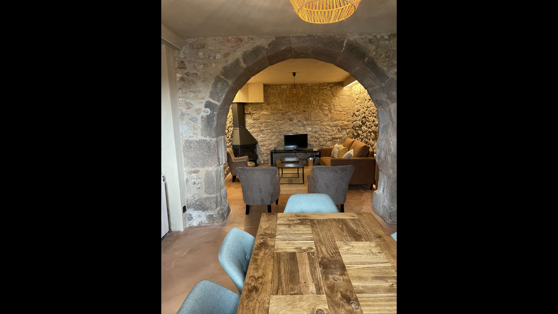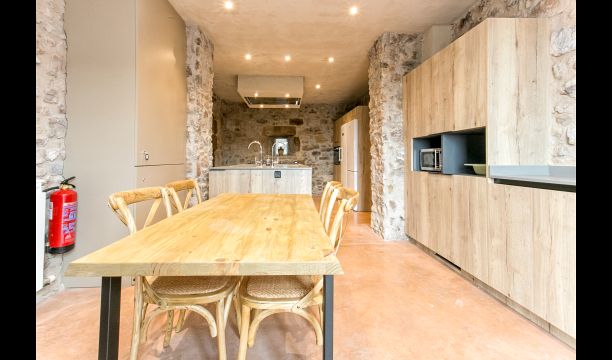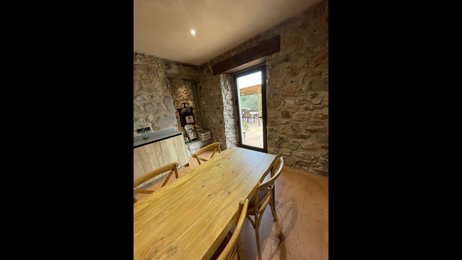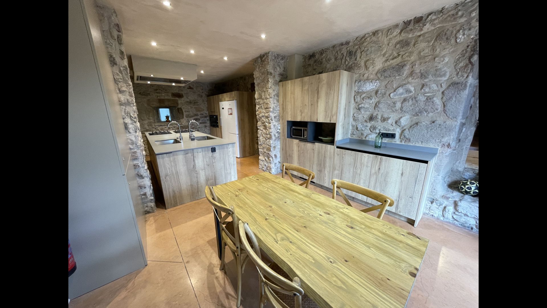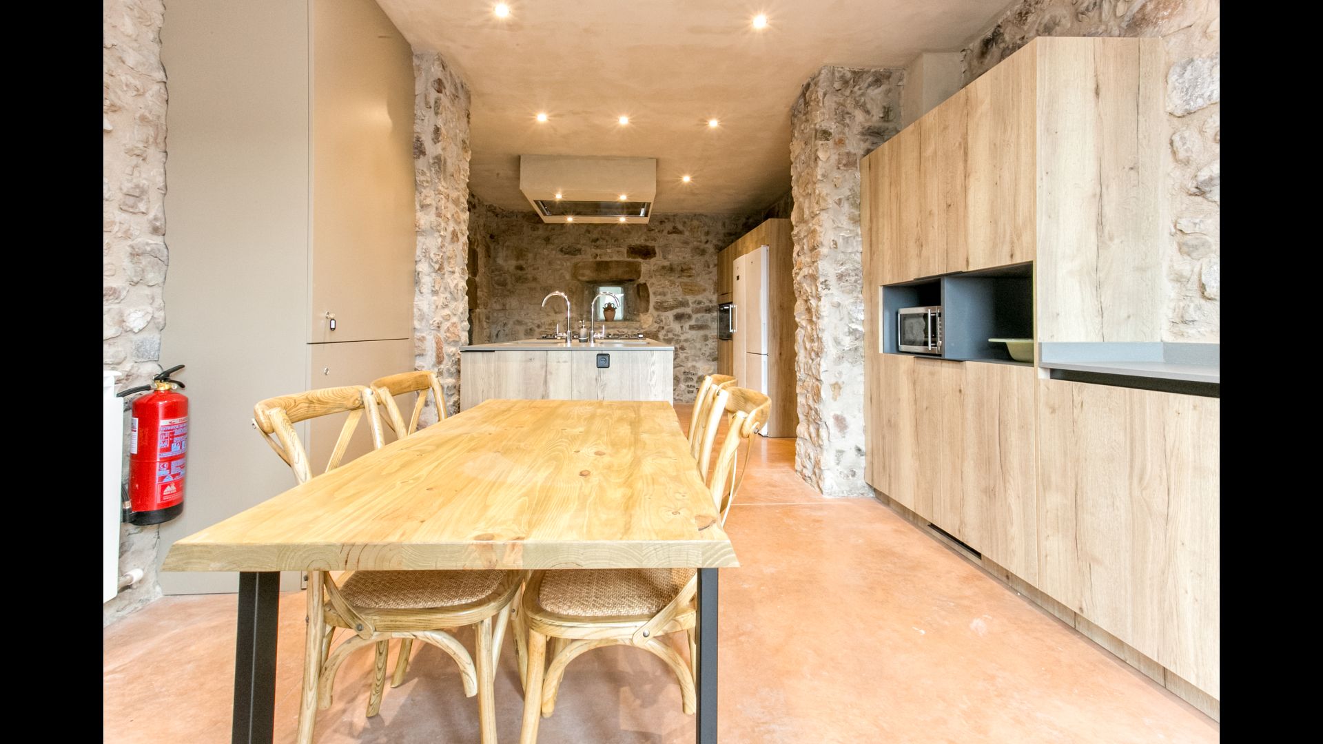 From the outdoor terrace, with a barbecue, a space to eat and loungers to relax, we enter directly into the Mas's large dining room. This acts as the heart of the house, connecting the two small living rooms on the ground floor with the large kitchen. The kitchen is fully equipped with 2 gas hobs, 2 dishwashers, 2 refrigerators with freezer, oven, microwave and coffee maker, as well as a small breakfast table.
