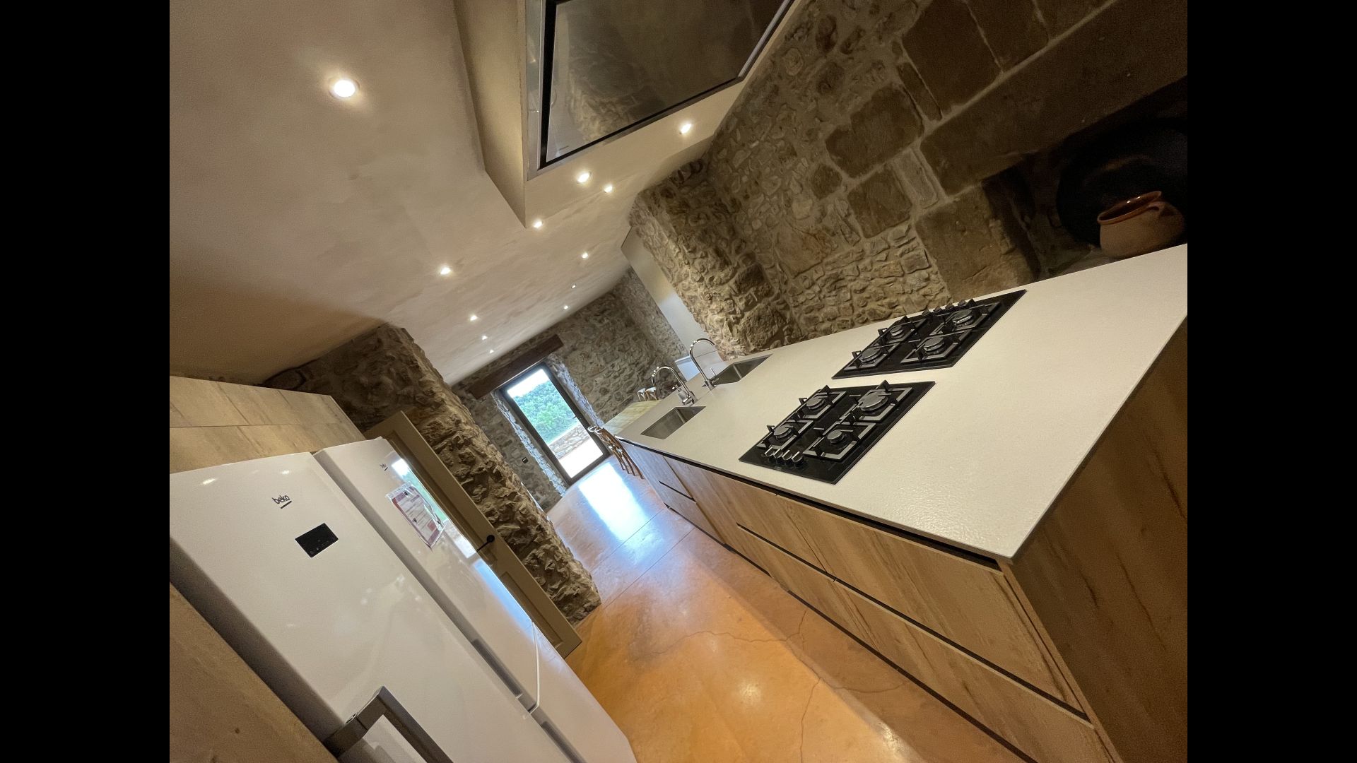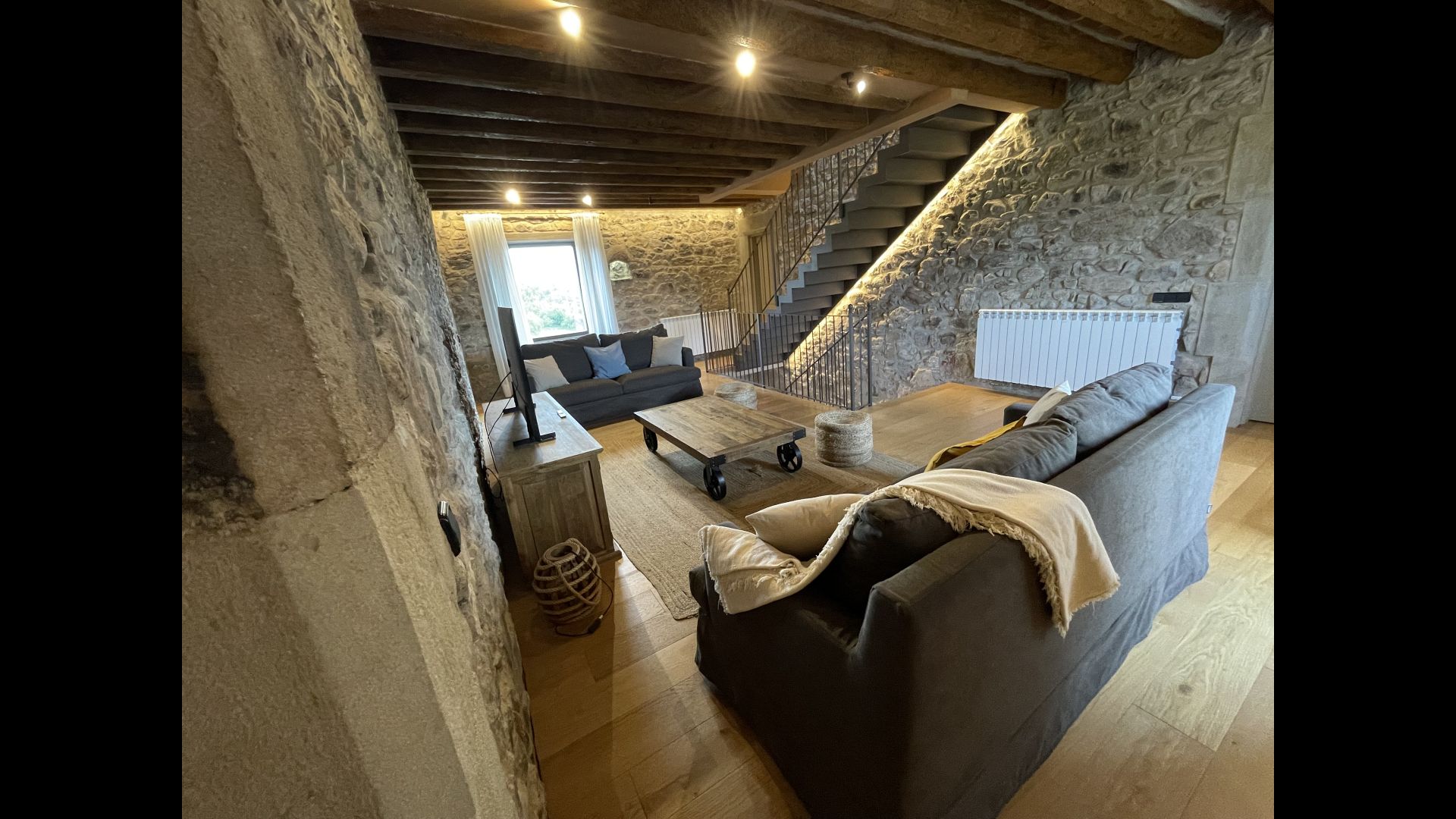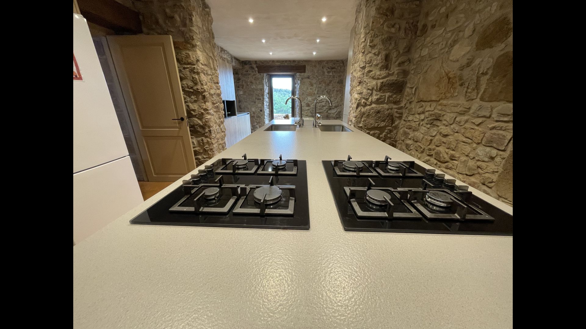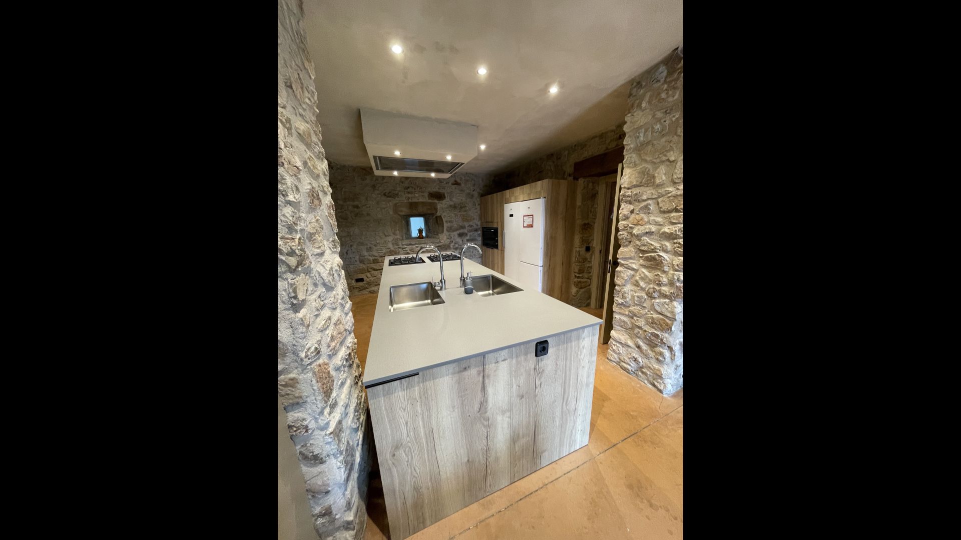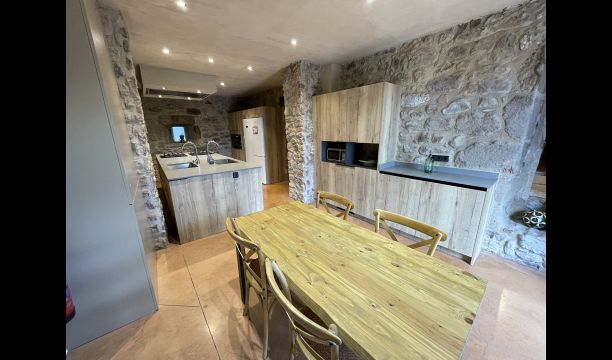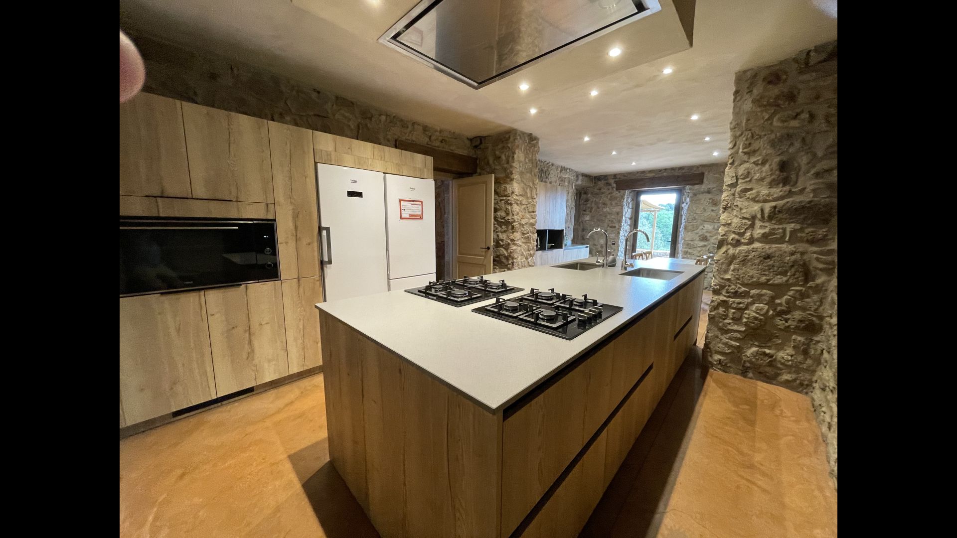From the outdoor terrace, with a barbecue, a space to eat and loungers to relax, we enter directly into the Mas's large dining room. This acts as the heart of the house, connecting the two small living rooms on the ground floor with the large kitchen. The kitchen is fully equipped with 2 gas hobs, 2 dishwashers, 2 refrigerators with freezer, oven, microwave and coffee maker, as well as a small breakfast table.