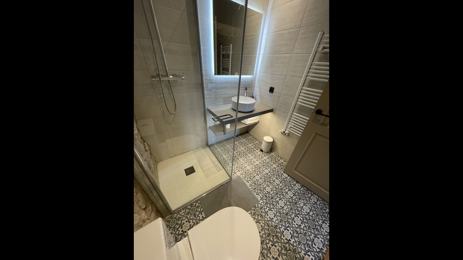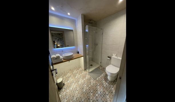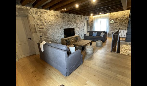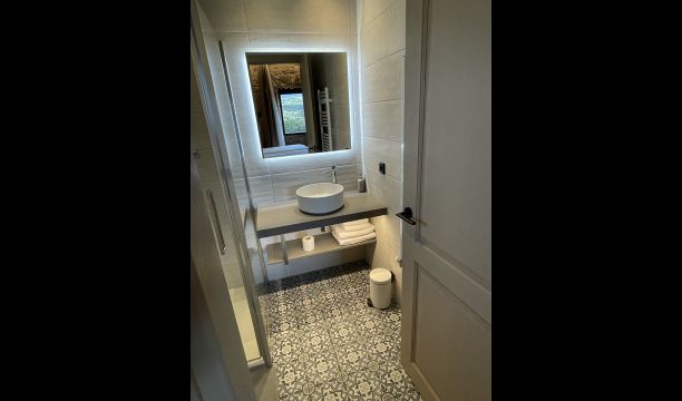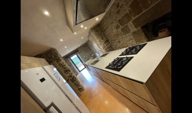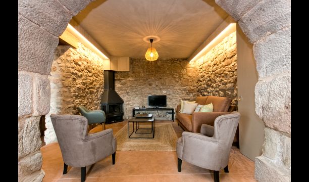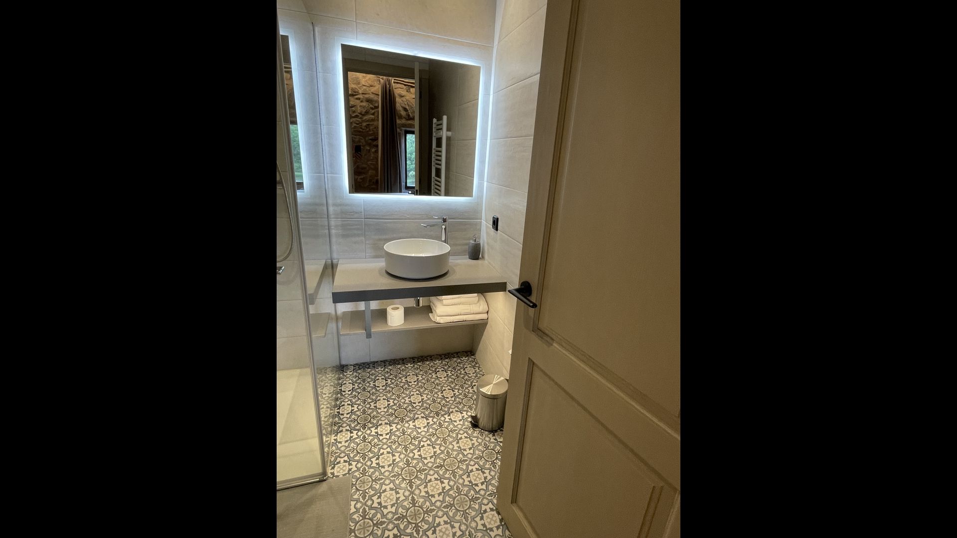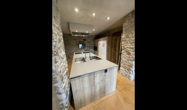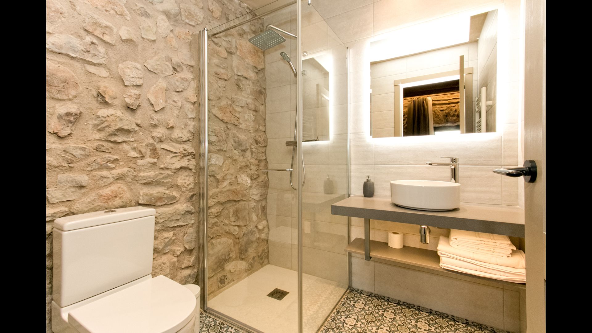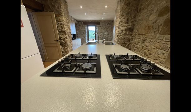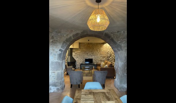 From the outdoor terrace, with a barbecue, a space to eat and loungers to relax, we enter directly into the Mas's large dining room. This acts as the heart of the house, connecting the two small living rooms on the ground floor with the large kitchen. The kitchen is fully equipped with 2 gas hobs, 2 dishwashers, 2 refrigerators with freezer, oven, microwave and coffee maker, as well as a small breakfast table.