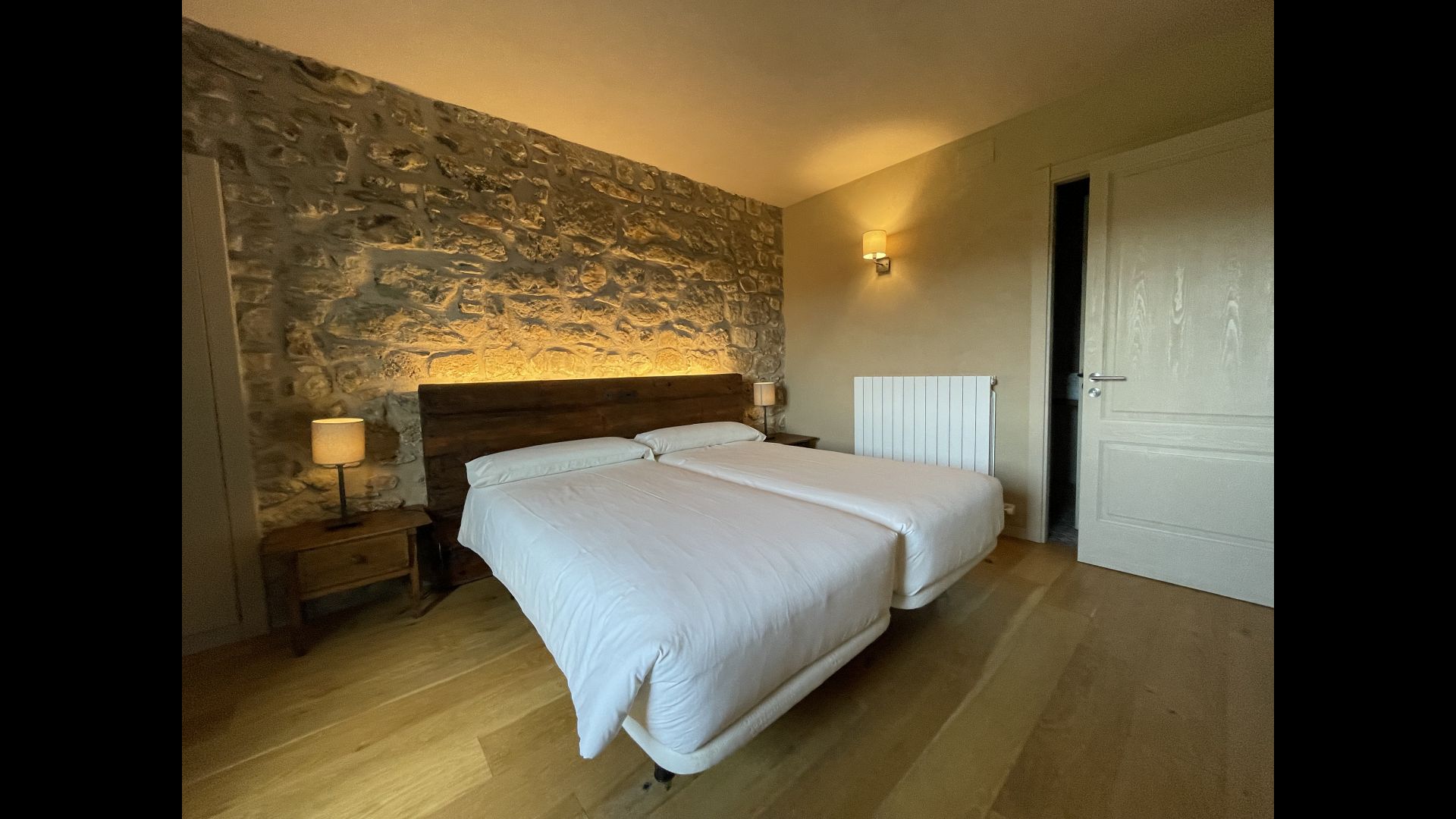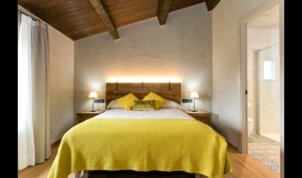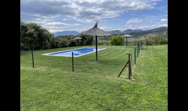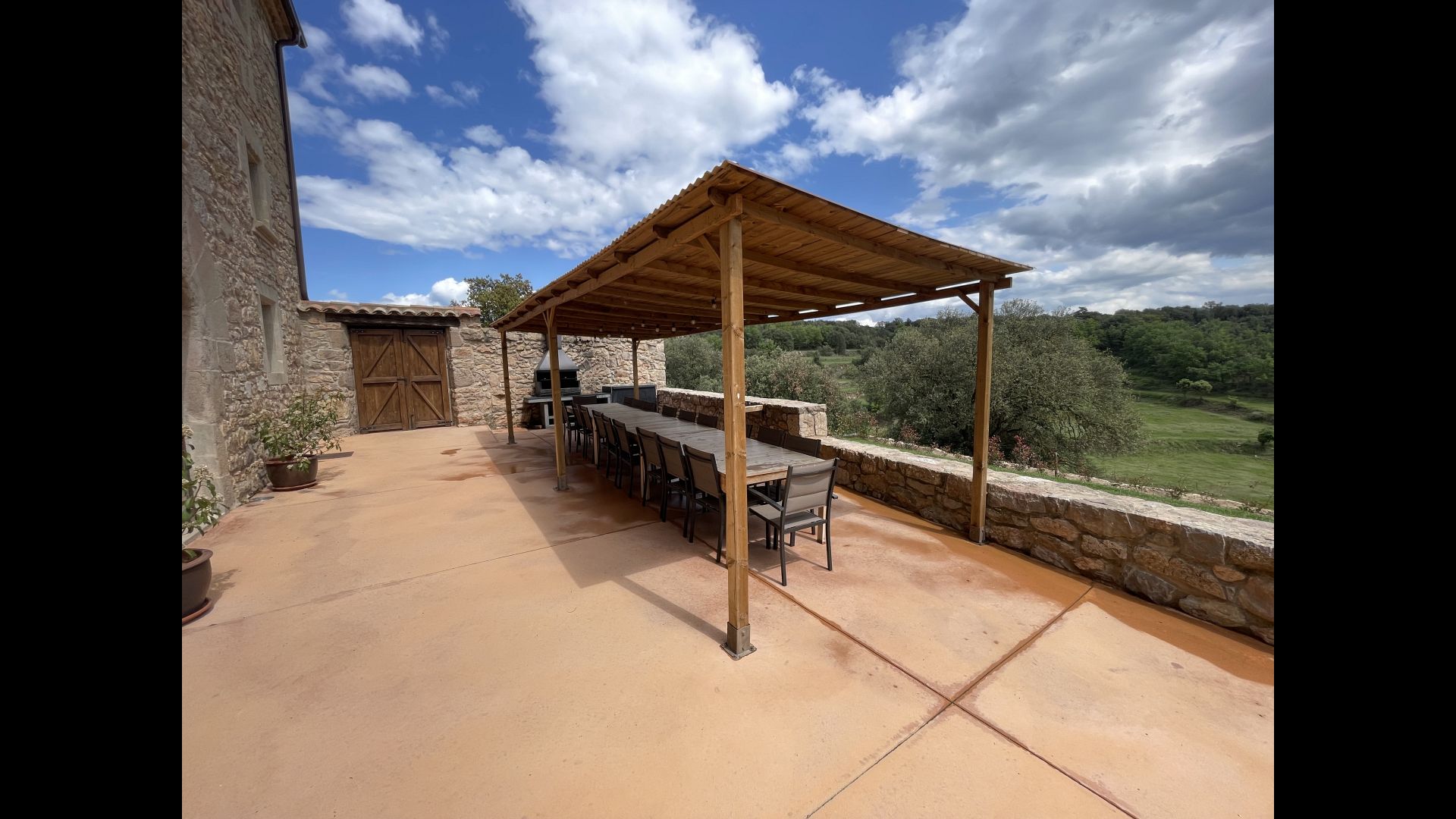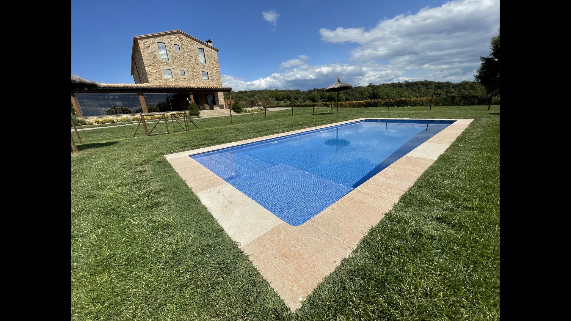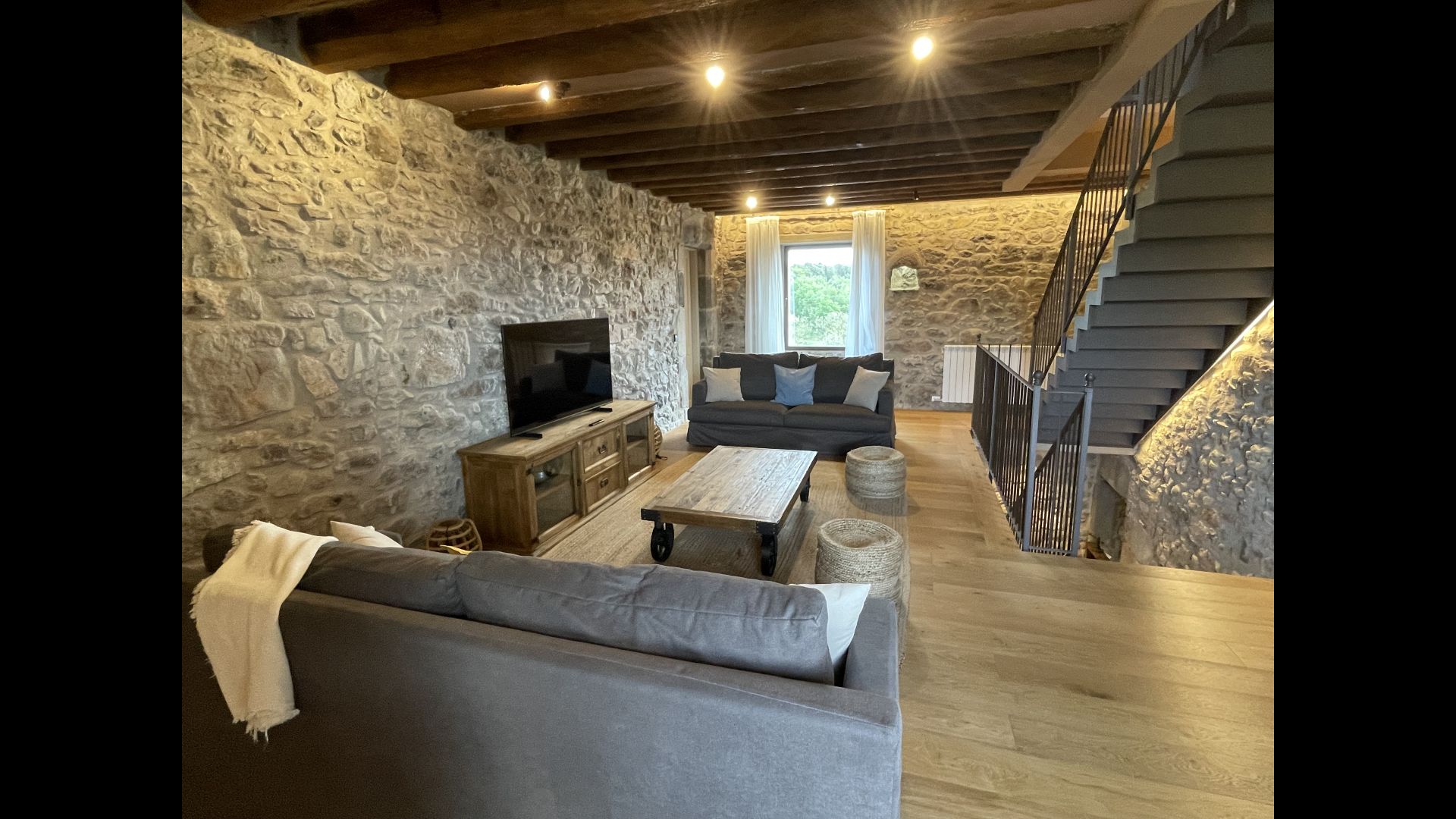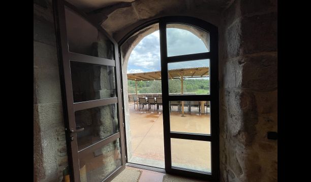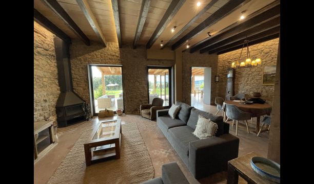 A spectacular house designed for large groups who want to enjoy a luxurious vacation, full of details from the original construction, framed in wooden furniture and warm fabrics. It has great views over the mountains of the Pre-pyrenees. It is located a little over 1 hour from Barcelona and Girona. On the 185-hectare land, 2 nearby houses are rented, totally separate and independent. Each with their own terrace and adjacent land. The pool, football field and volleyball field are shared by the 3 houses.