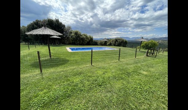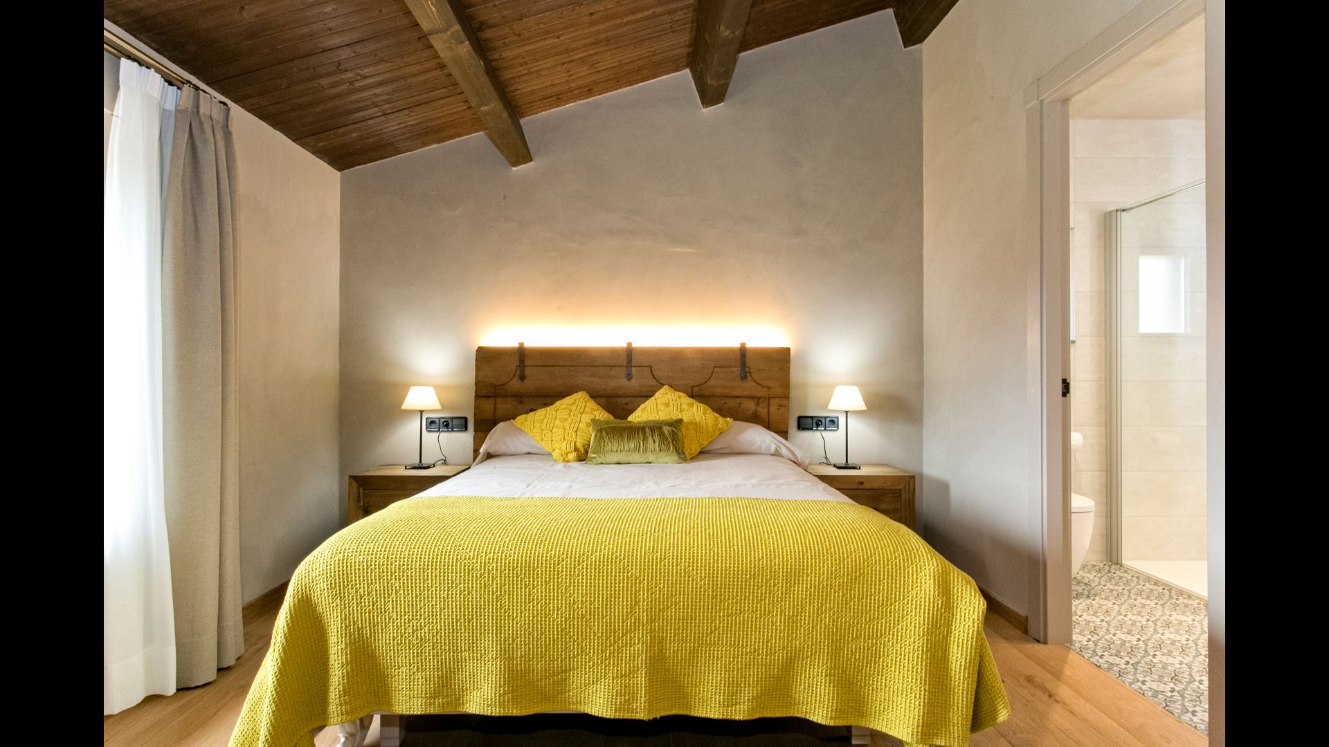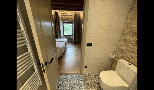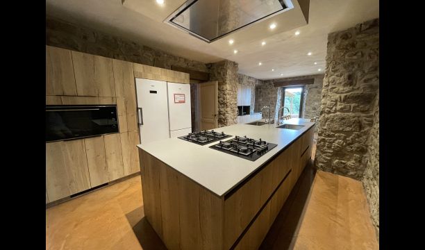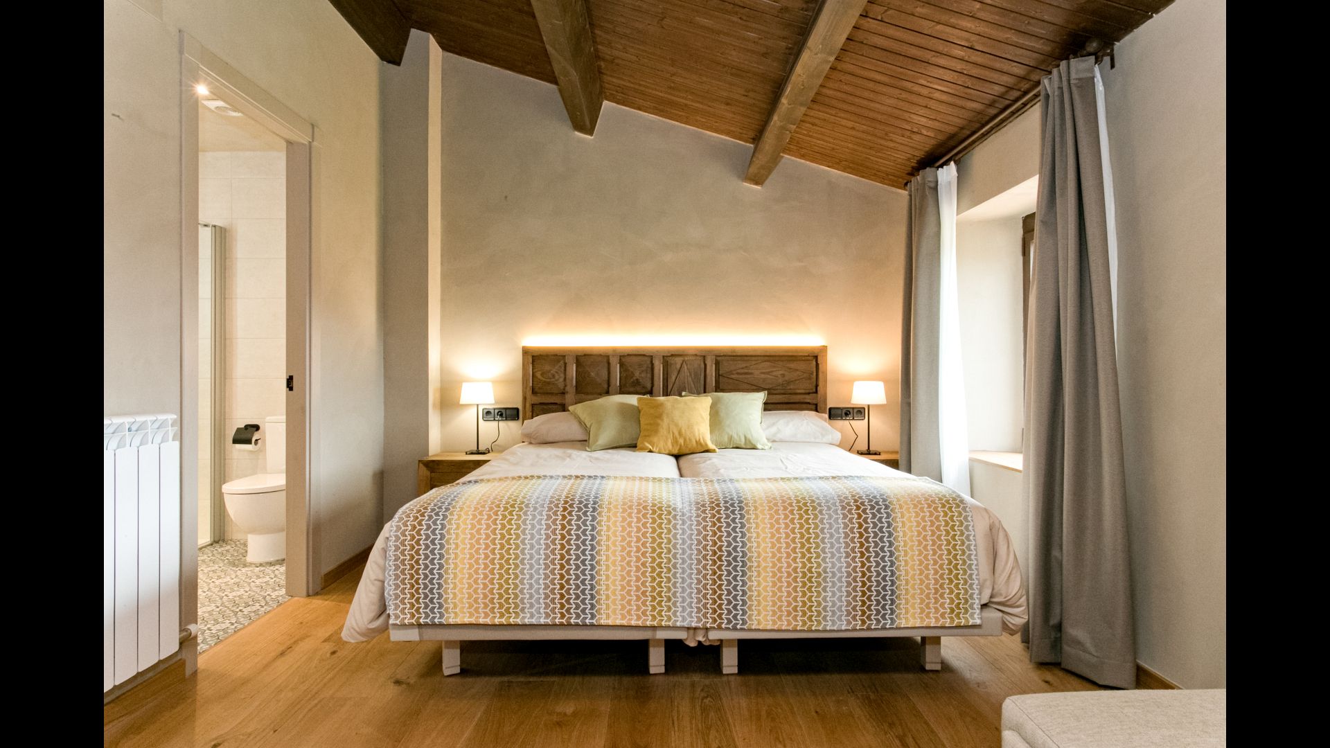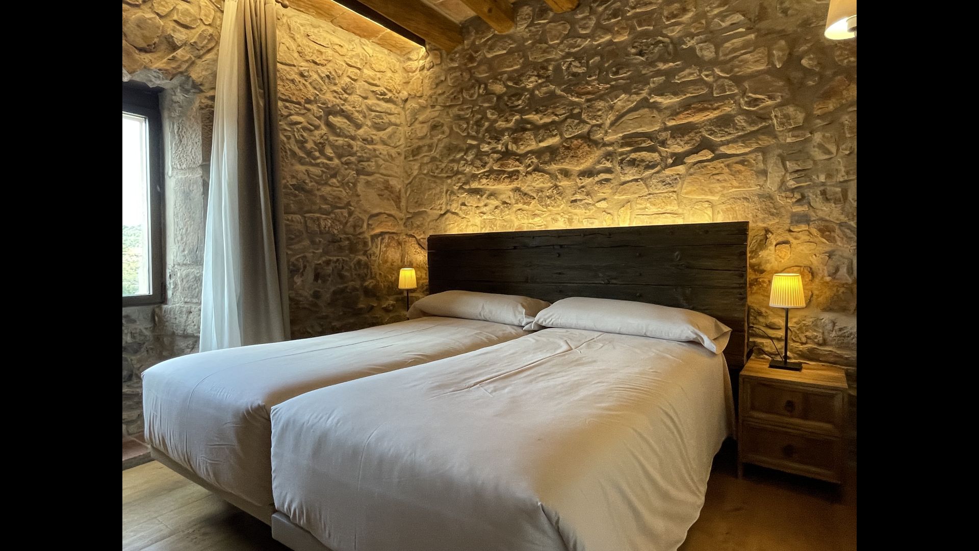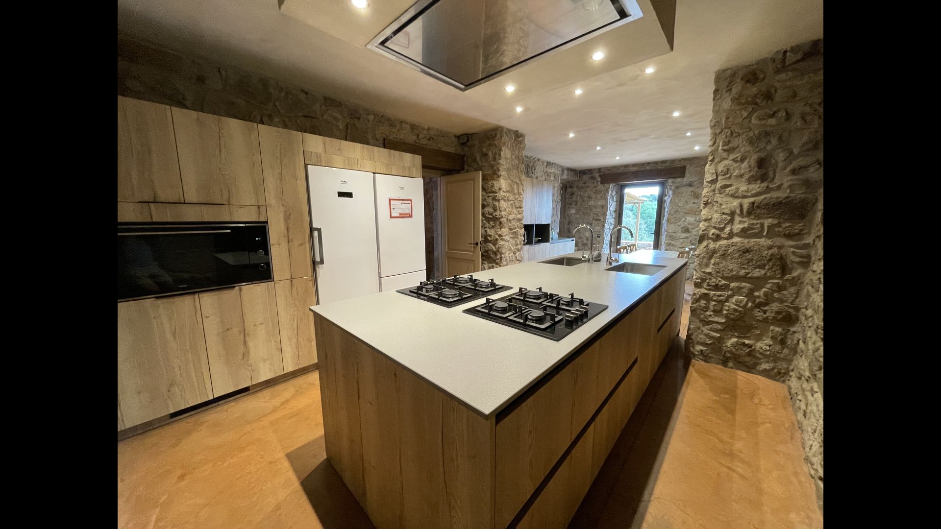 A spectacular house designed for large groups who want to enjoy a luxurious vacation, full of details from the original construction, framed in wooden furniture and warm fabrics. It has great views over the mountains of the Pre-pyrenees. It is located a little over 1 hour from Barcelona and Girona. On the 185-hectare land, 2 nearby houses are rented, totally separate and independent. Each with their own terrace and adjacent land. The pool, football field and volleyball field are shared by the 3 houses.