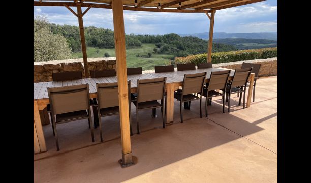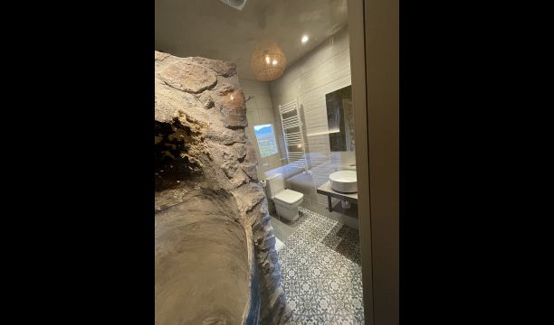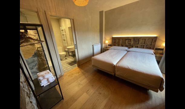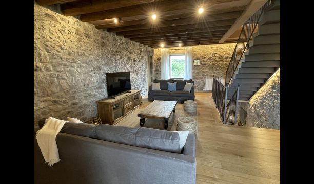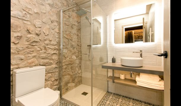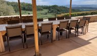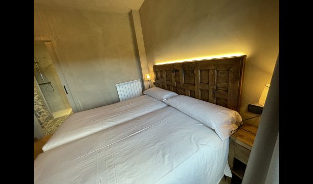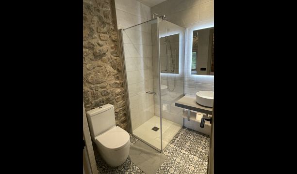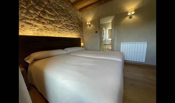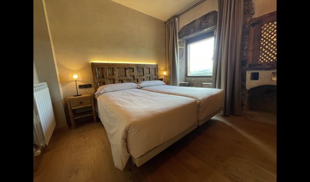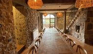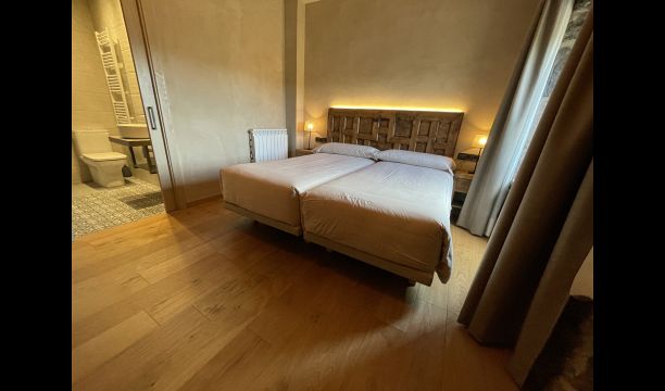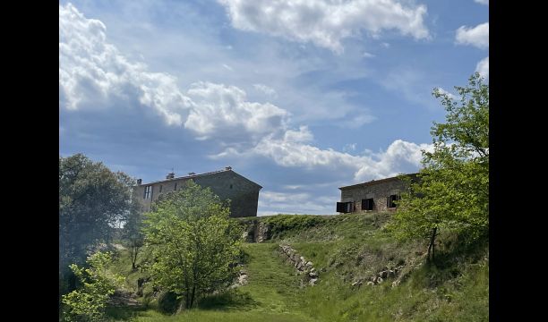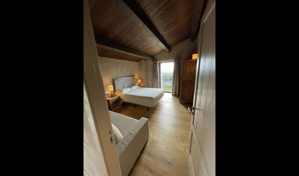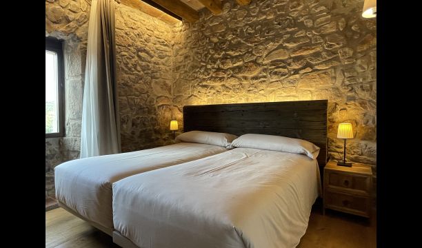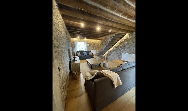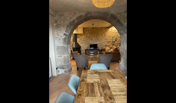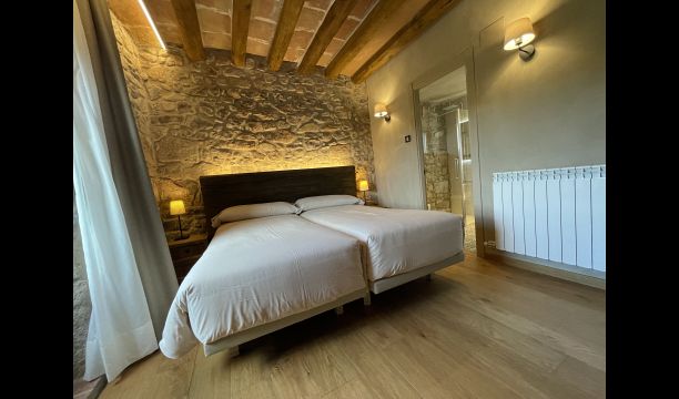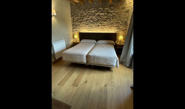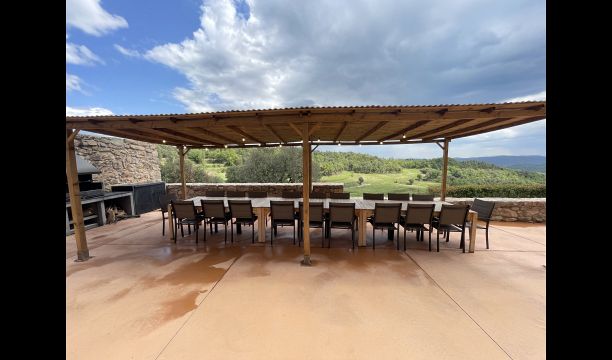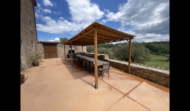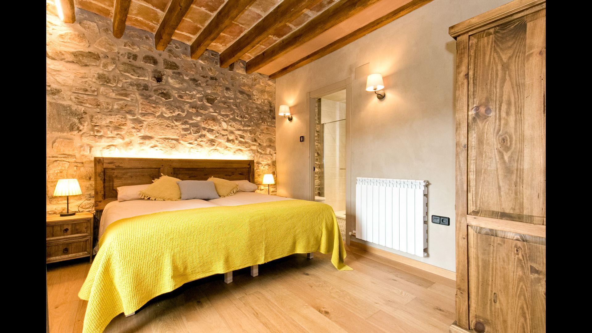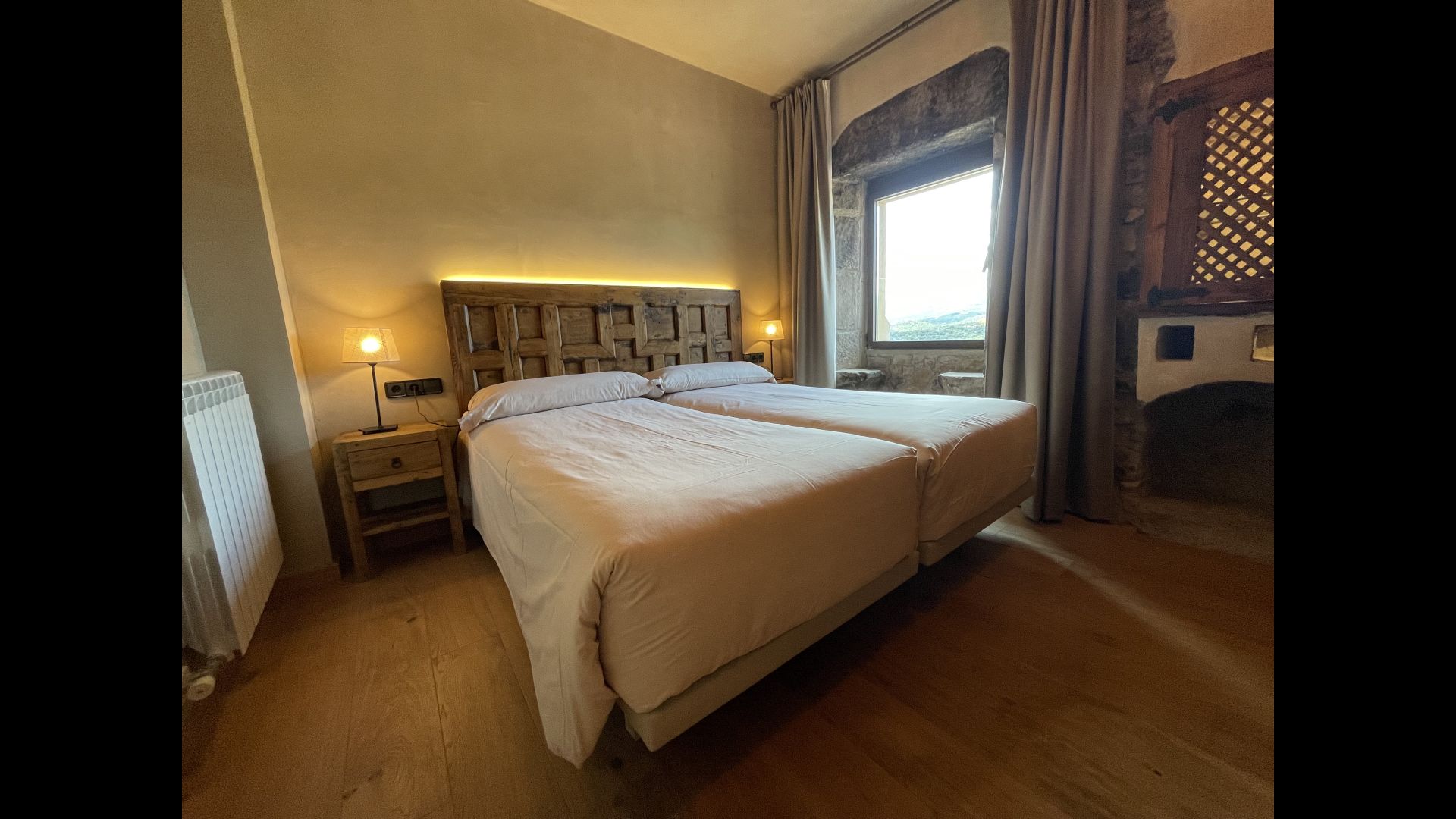 A spectacular house designed for large groups who want to enjoy a luxurious vacation, full of details from the original construction, framed in wooden furniture and warm fabrics. It has great views over the mountains of the Pre-pyrenees. It is located a little over 1 hour from Barcelona and Girona. On the 185-hectare land, 2 nearby houses are rented, totally separate and independent. Each with their own terrace and adjacent land. The pool, football field and volleyball field are shared by the 3 houses.